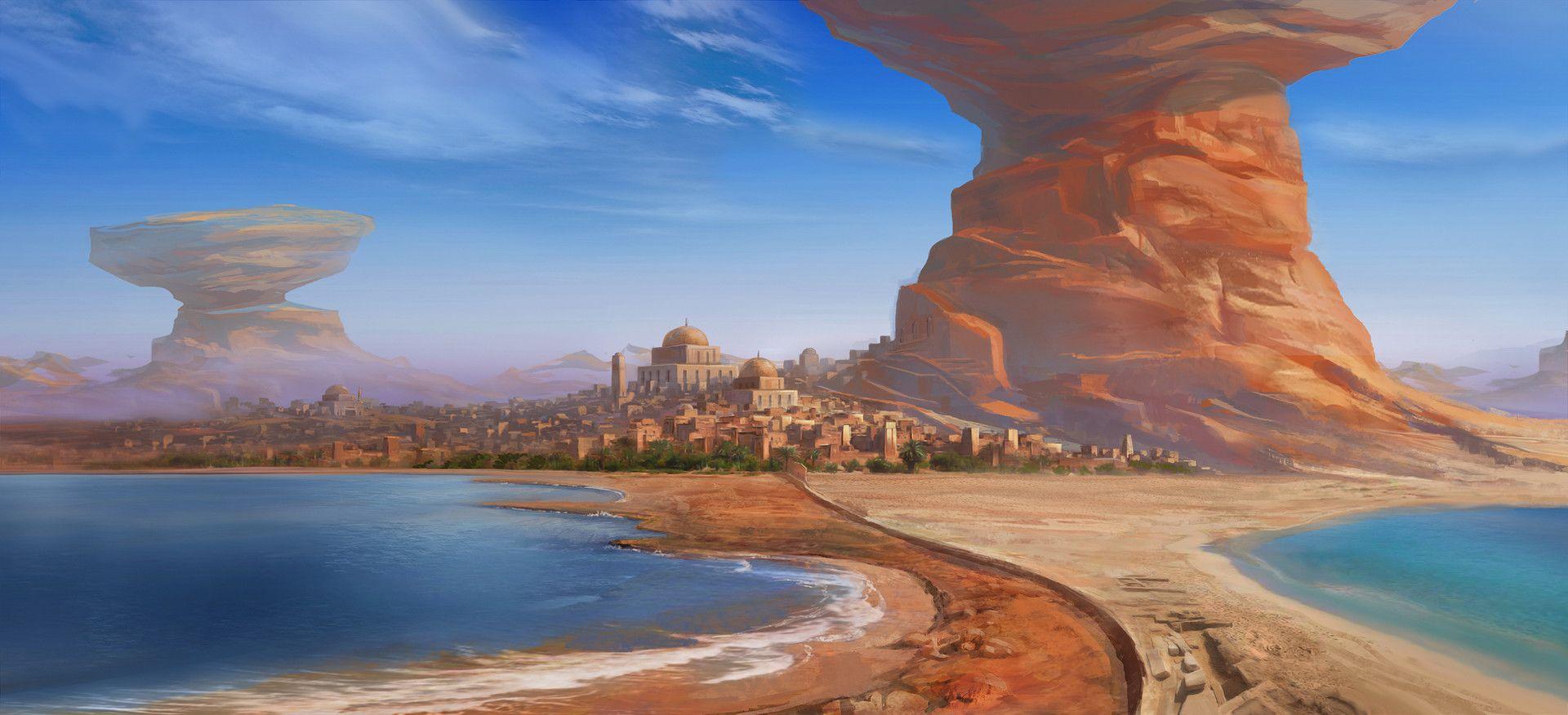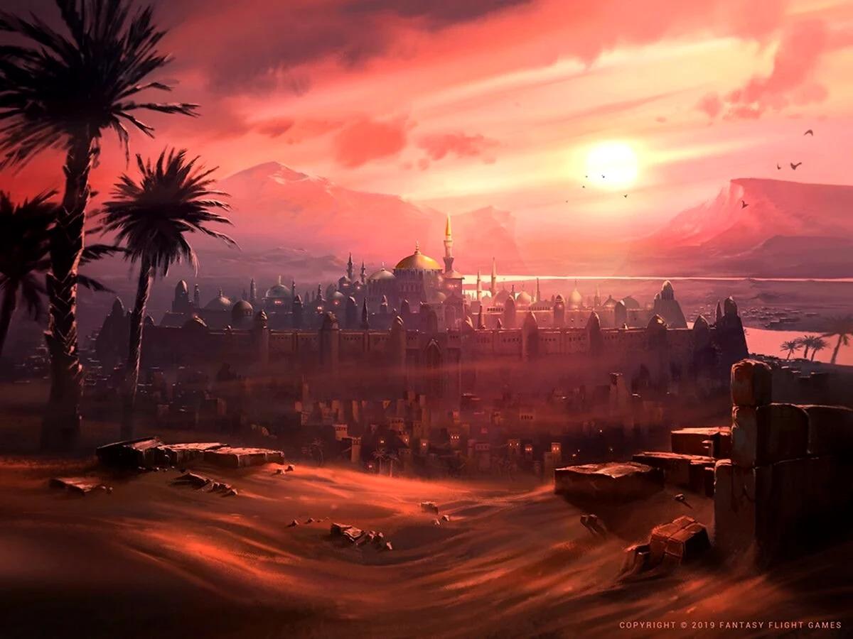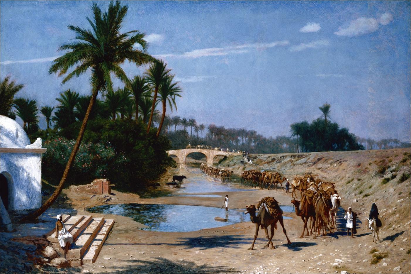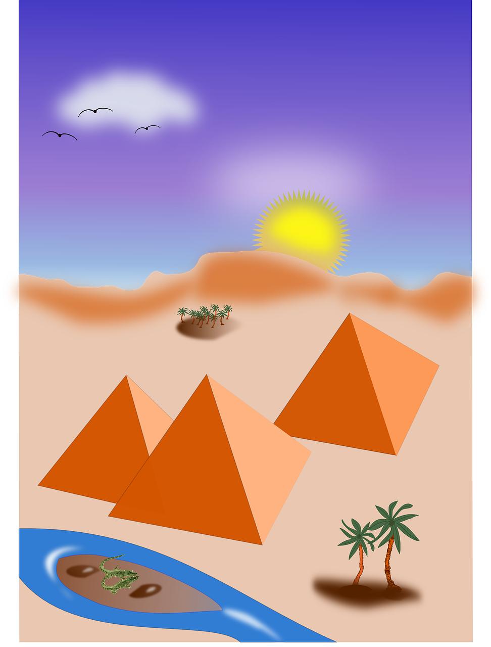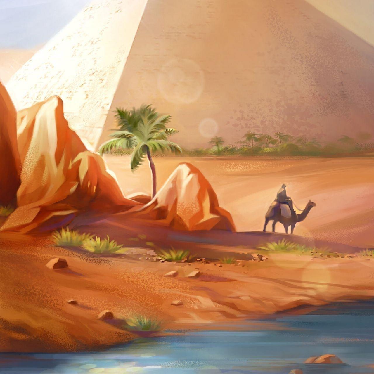Оазисы всегда были оазисами жизни в безжизненной пустыне, местами, где вода и зелень создают райские уголки. Этот египетский оазис на иллюстрации демонстрирует гармонию природы и контраст песков с буйной растительностью. Композиция напоминает о силе жизни в самых суровых условиях.