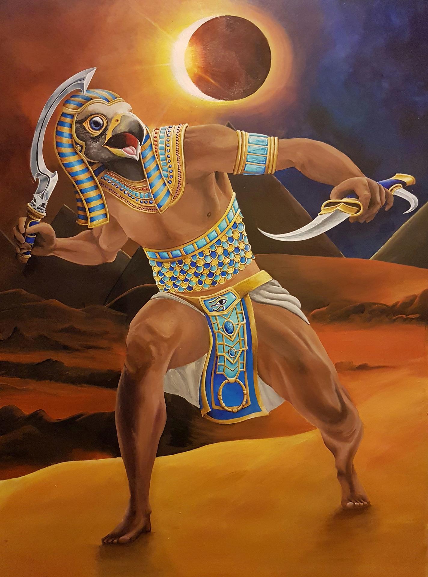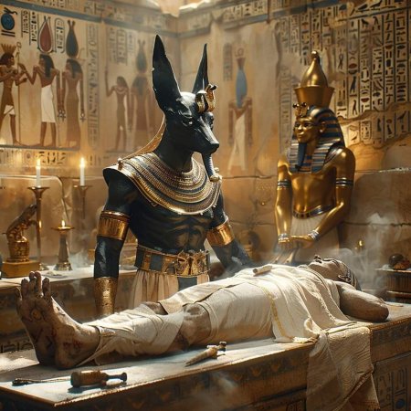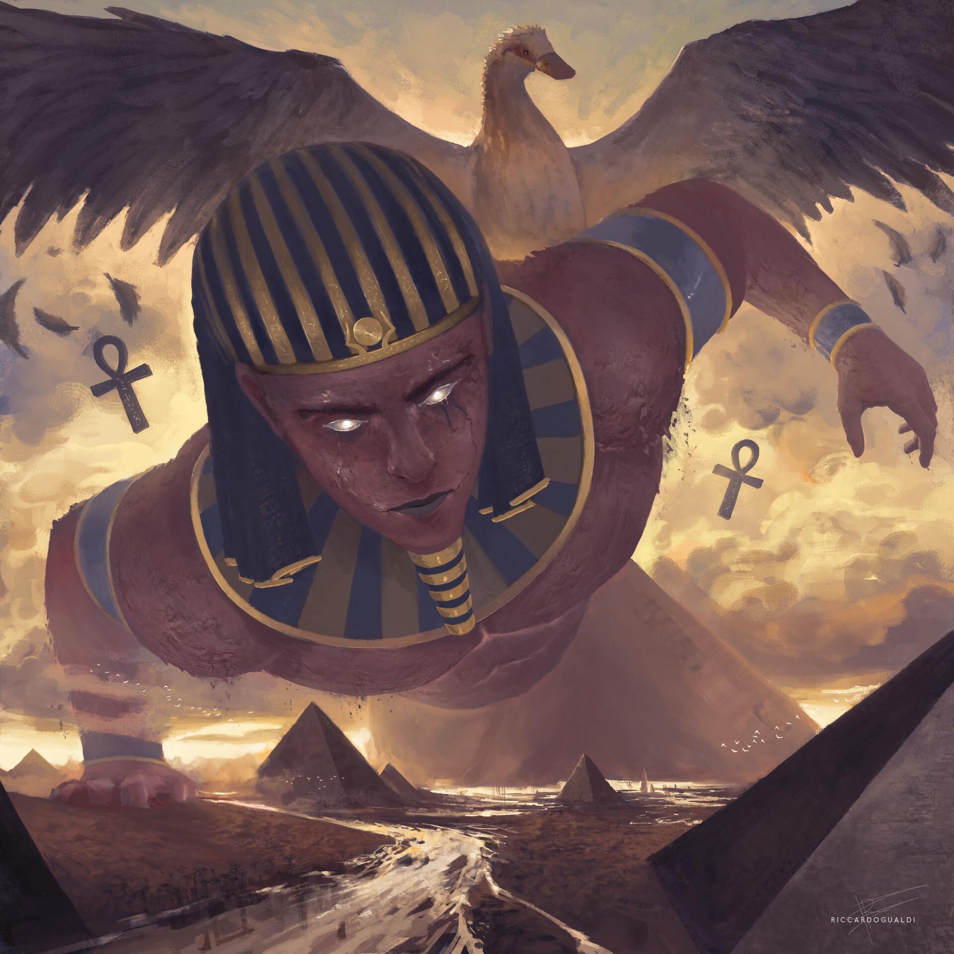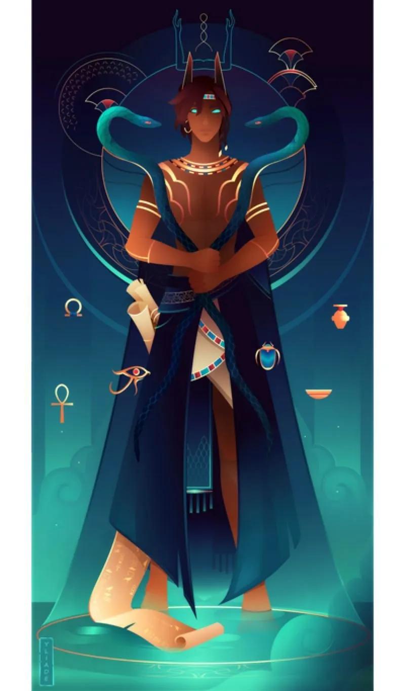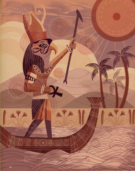 Древний Египет оставил после себя богатейшее наследие мифов и легенд, где каждый бог имел свое предназначение и символику. На этой иллюстрации мы видим атмосферу той эпохи, полной тайн и величия. Художник передал атмосферу Нильской долины и величия фараонов. Композиция напоминает о величии древних цивилизаций и их вкладе в человеческую культуру.