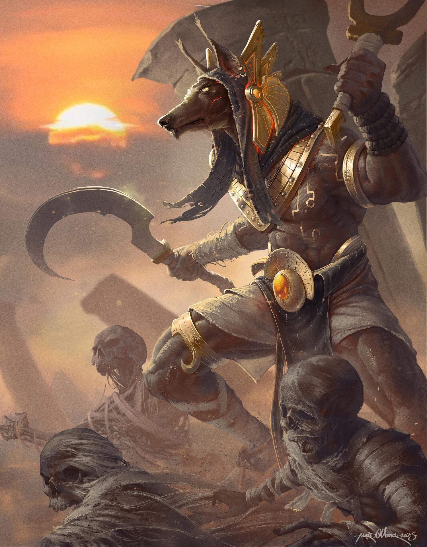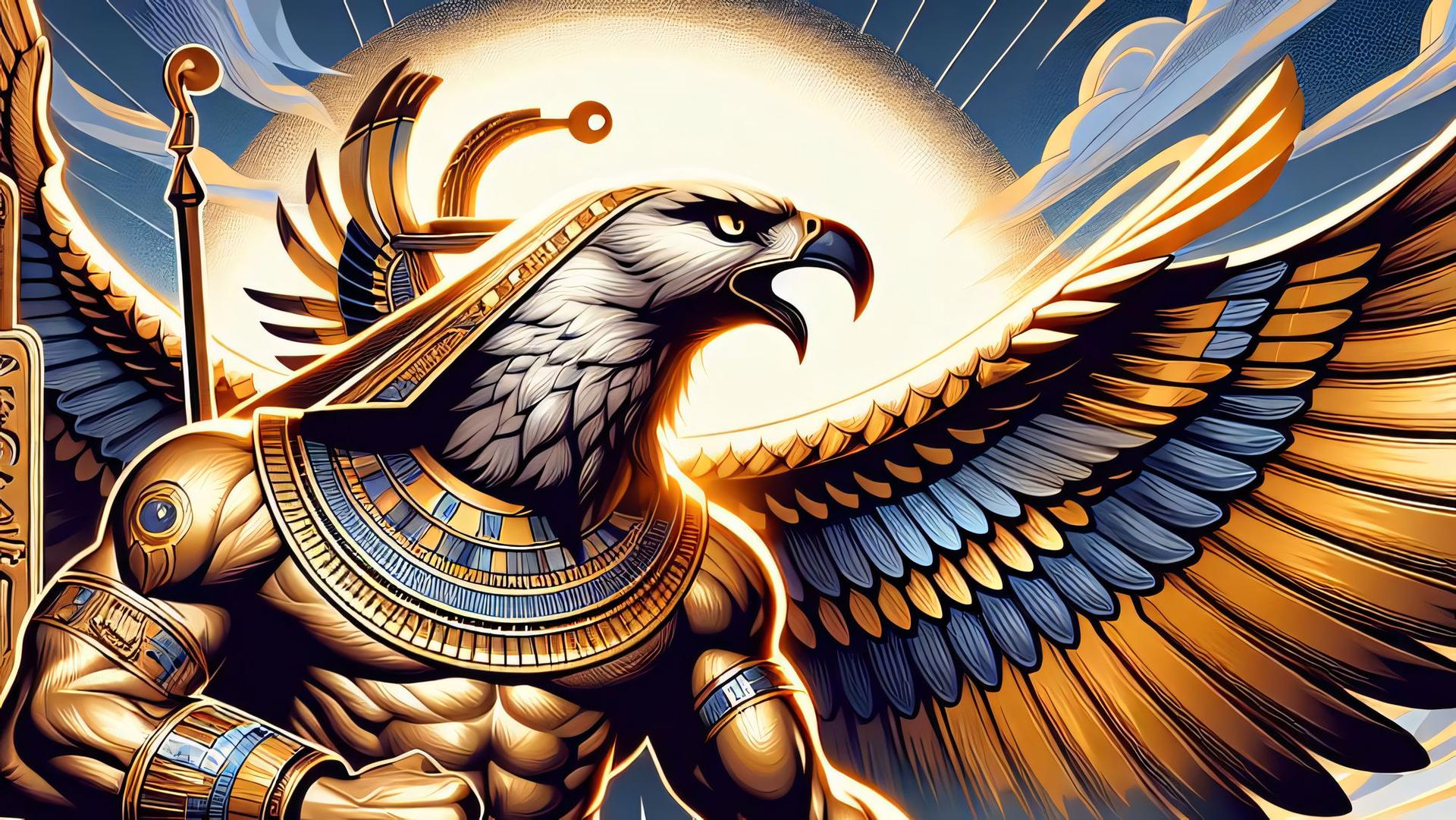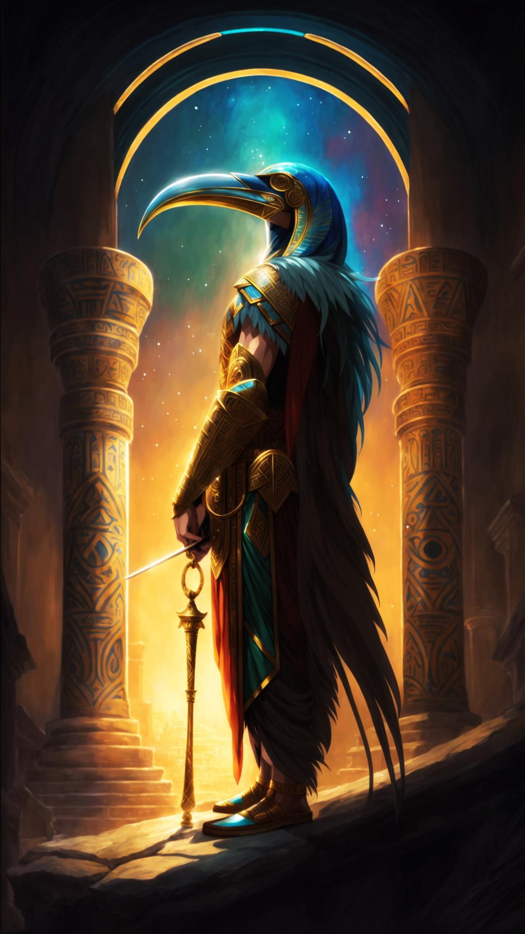 Древний Египет оставил после себя богатейшее наследие мифов и легенд, где каждый бог имел свое предназначение и символику. На этой иллюстрации мы видим атмосферу той эпохи, полной тайн и величия. Художник передал атмосферу Нильской долины и величия фараонов. Композиция напоминает о величии древних цивилизаций и их вкладе в человеческую культуру.