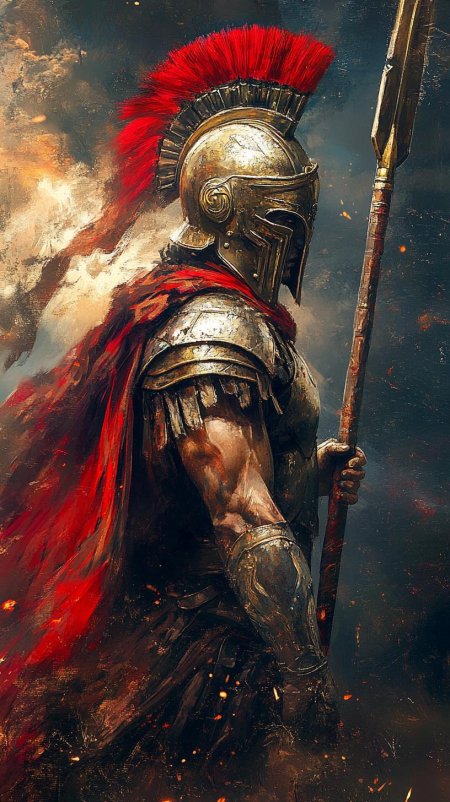 Спартанский гоплит был не просто солдатом, а воплощением гражданского долга и боевого мастерства. На этой иллюстрации мы видим его в полном боевом облачении, готового защищать свою родину. Художник акцентировал внимание на доспехах и выражении лица, полном решимости. Композиция напоминает о том, как дисциплина и преданность формировали великие цивилизации и создавали примеры для будущих поколений.