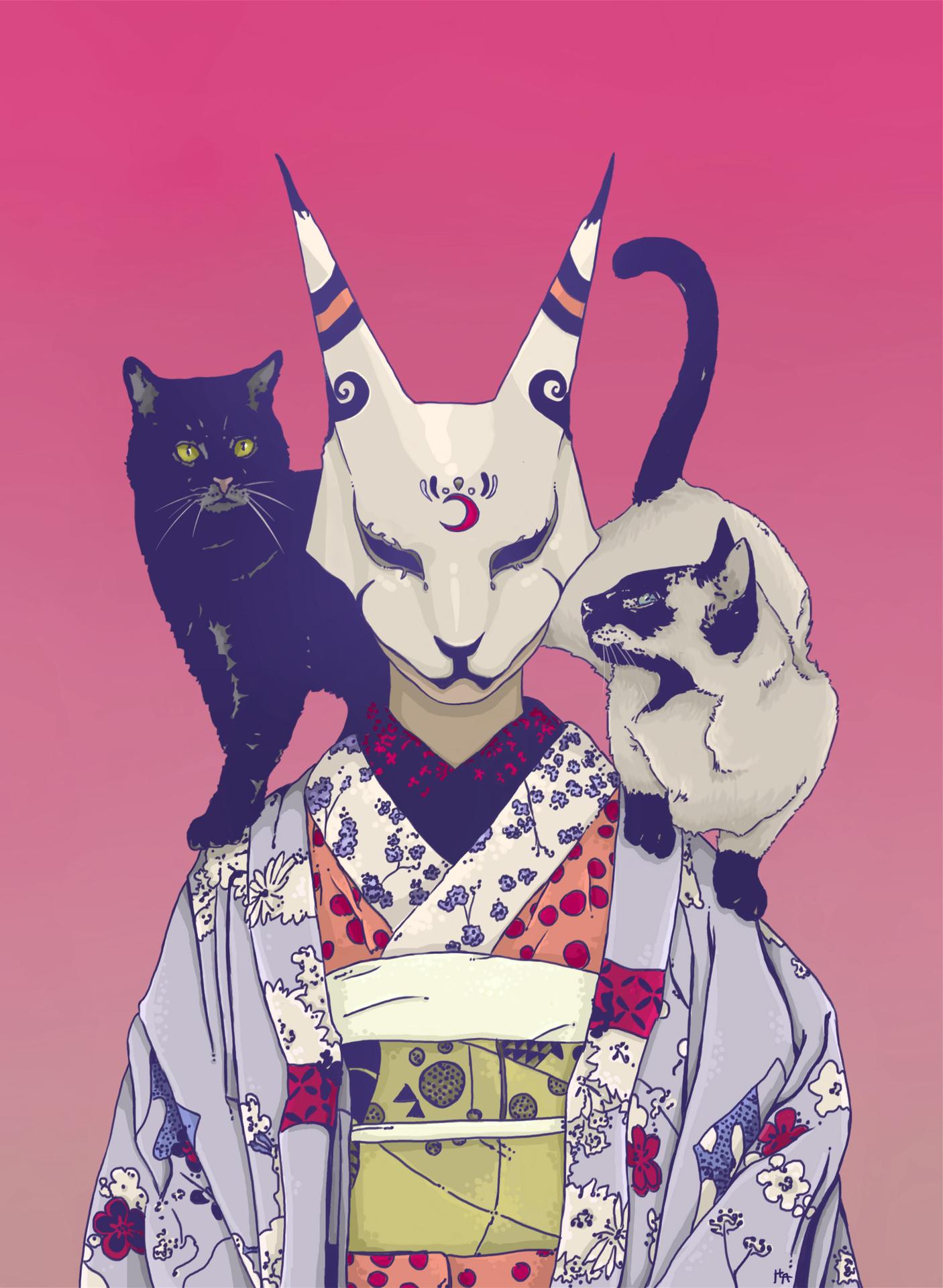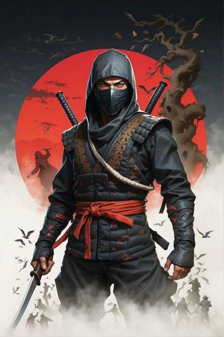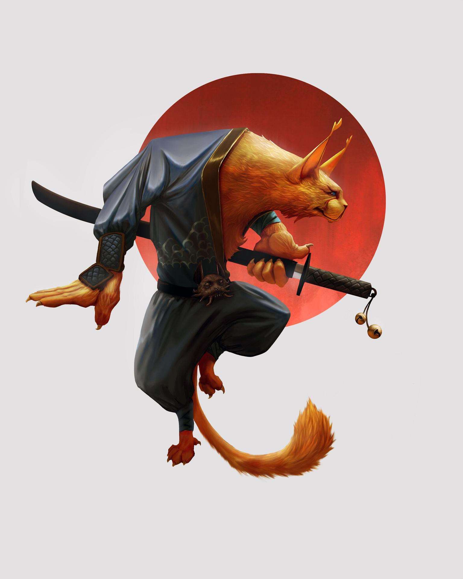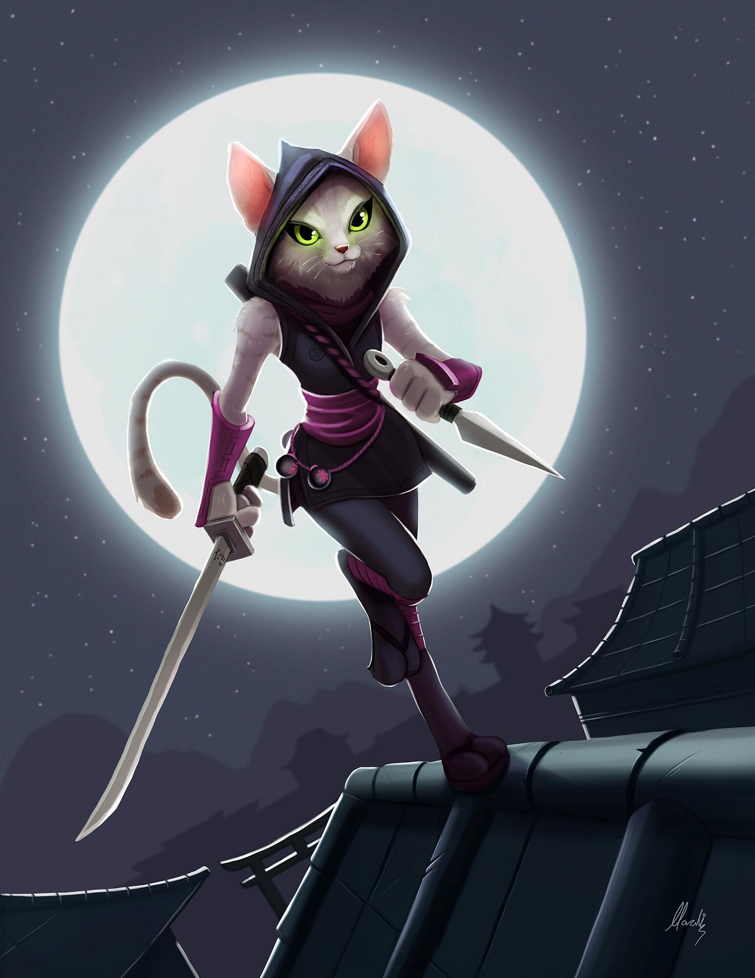 Представьте себе ниндзя, которые вместо того, чтобы скрываться в тени, оставляют за собой след из шерсти и мяукают во время миссий. Эти кошачьи воины на иллюстрации сочетают грацию хищников с непосредственностью домашних любимцев. Художник передал атмосферу ночных приключений, где серьезные боевые искусства смешиваются с кошачьим любопытством и игривостью. Композиция показывает, что даже в самых серьезных ситуациях можно найти повод для улыбки.