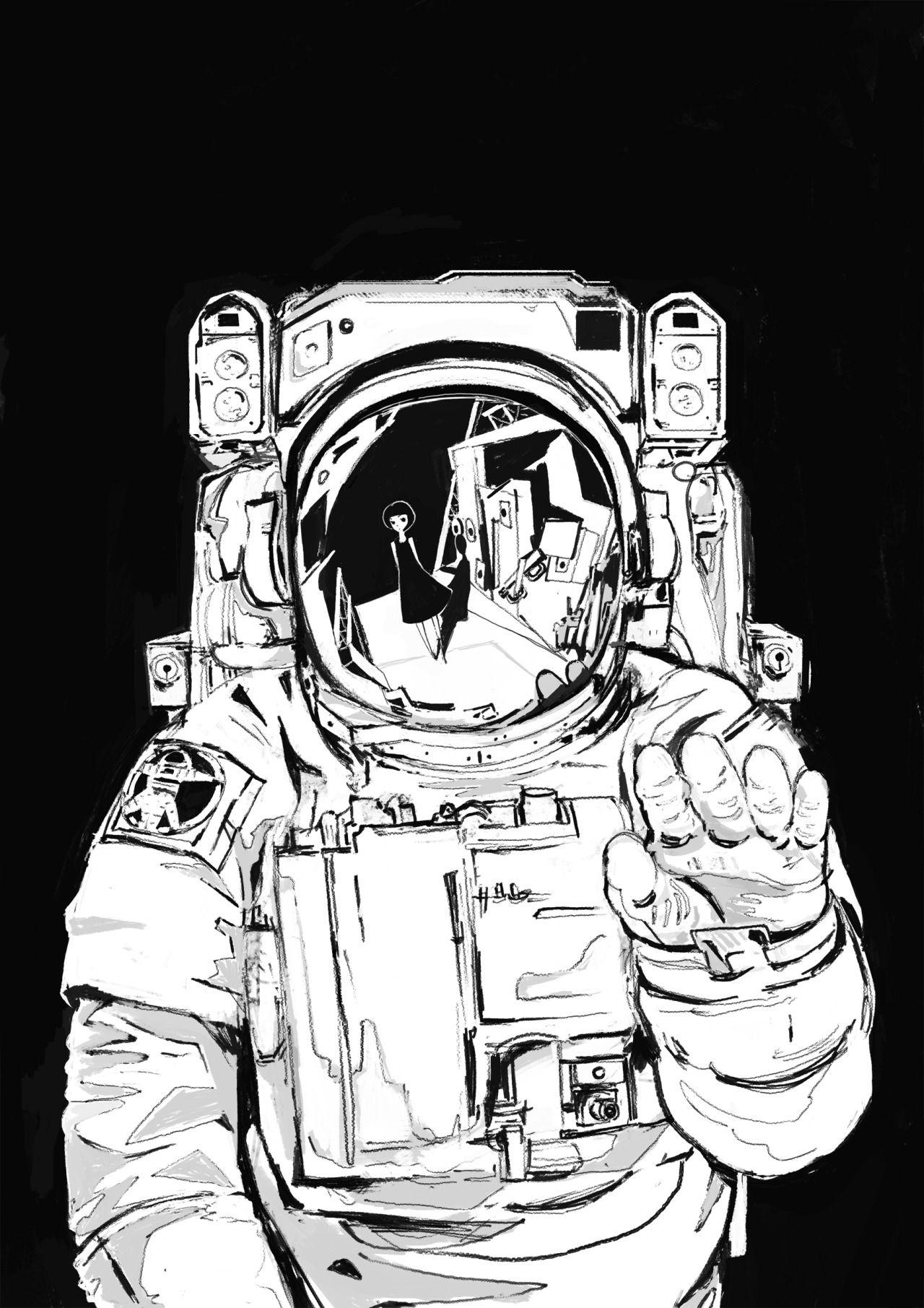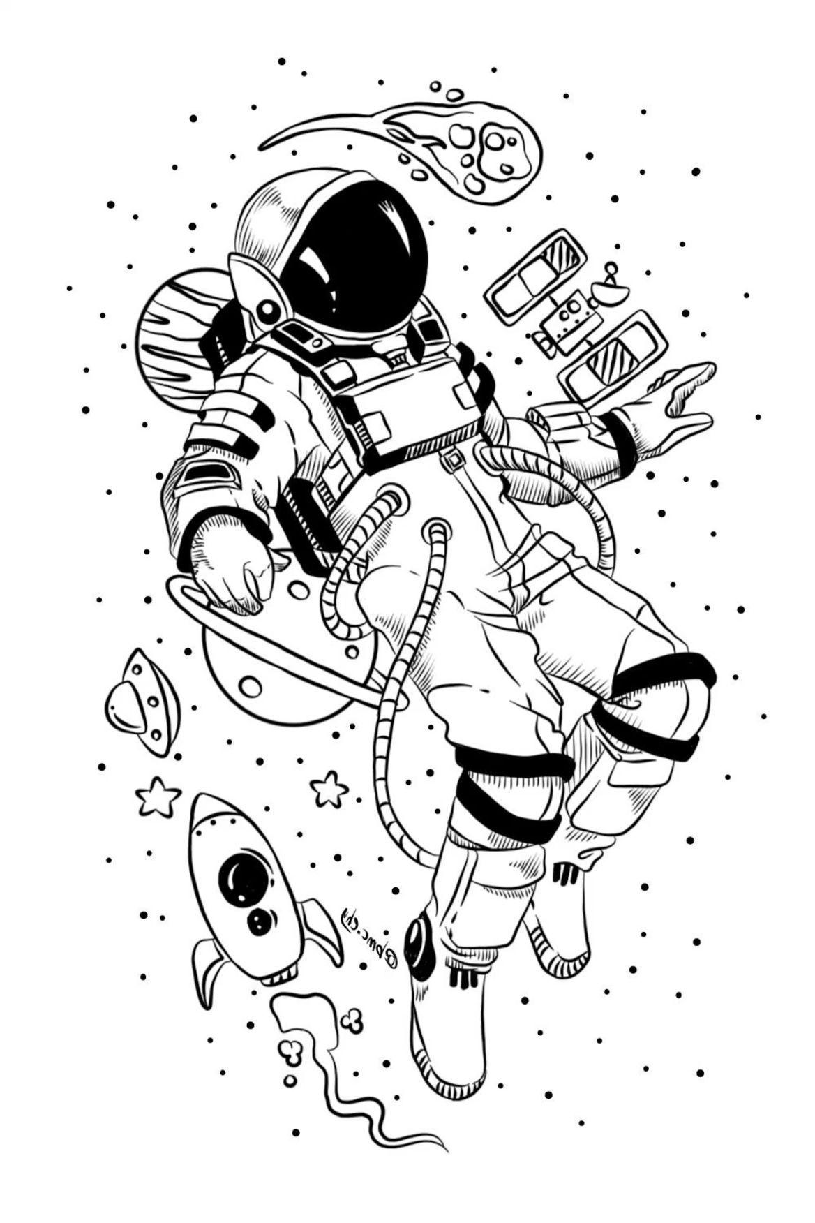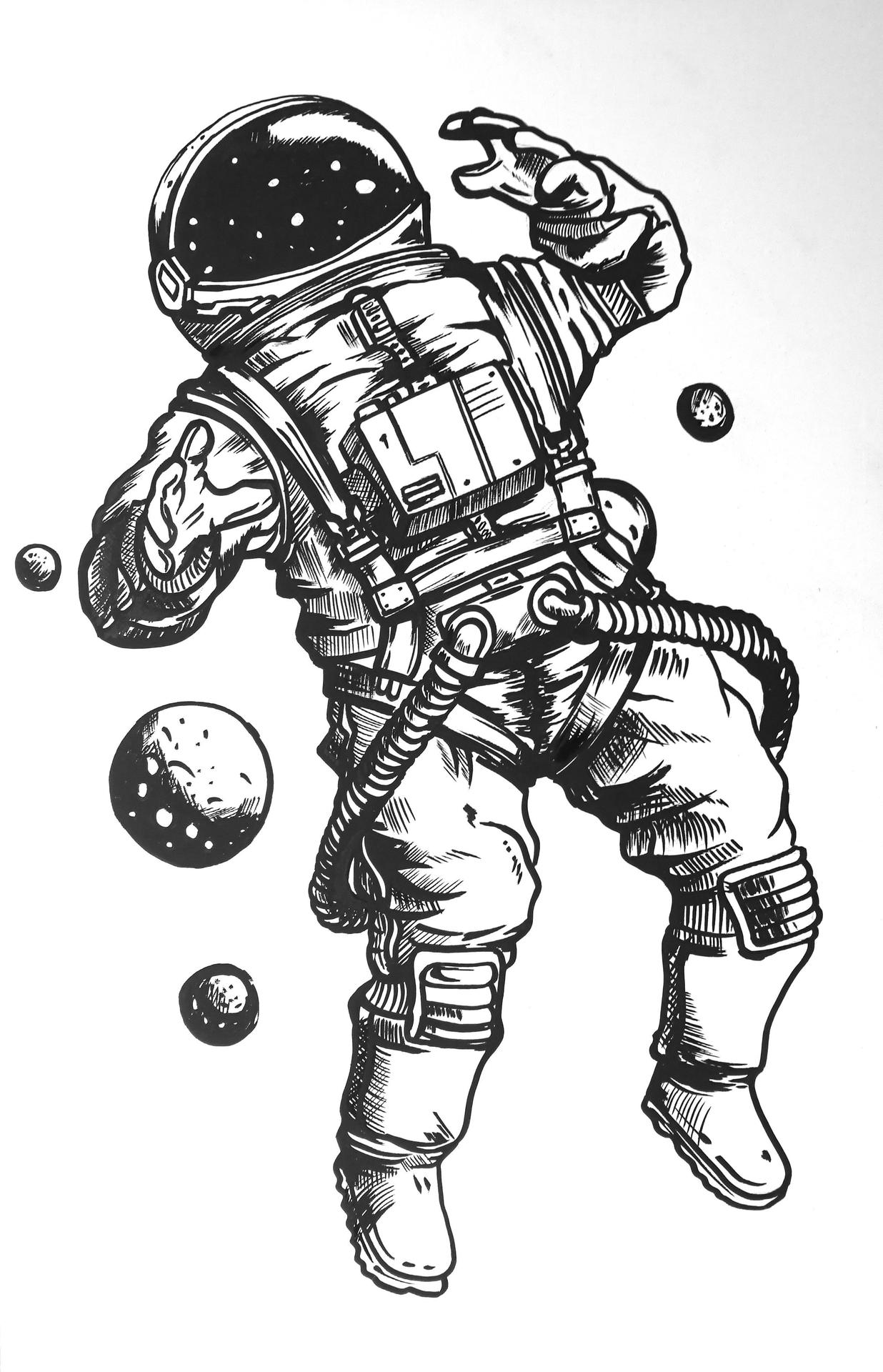 Космонавт черно белый
