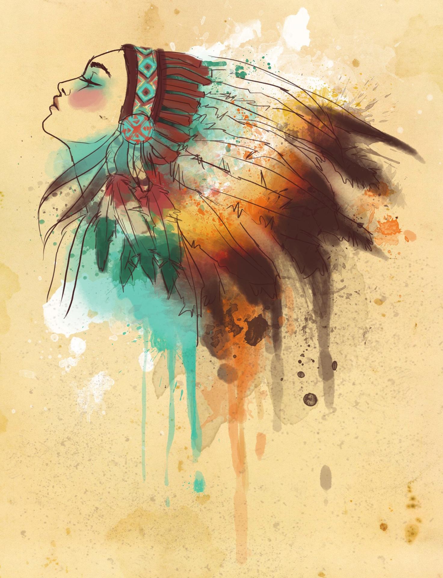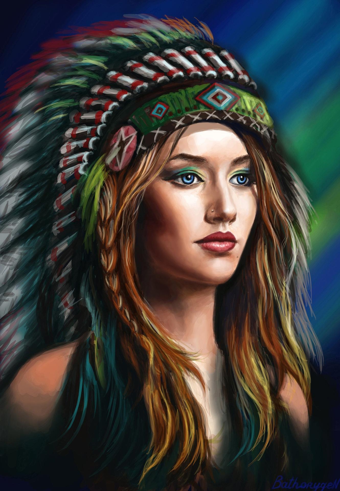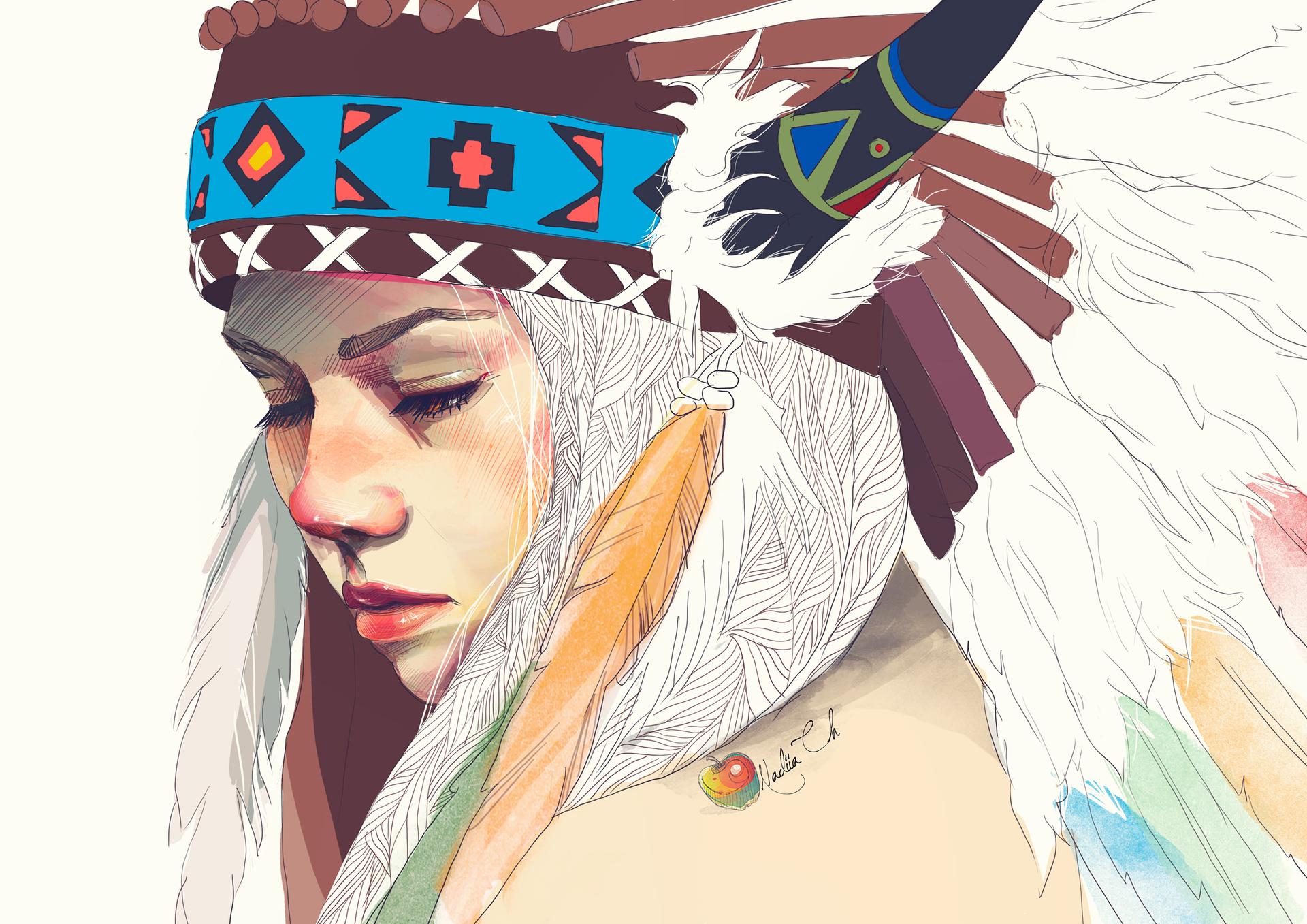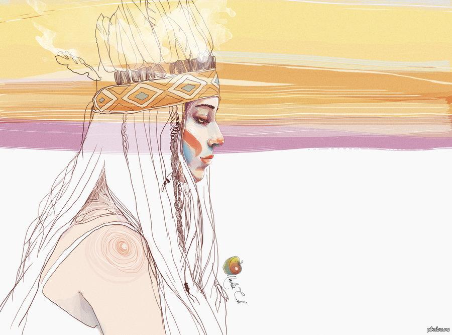 Девушка индеец арт