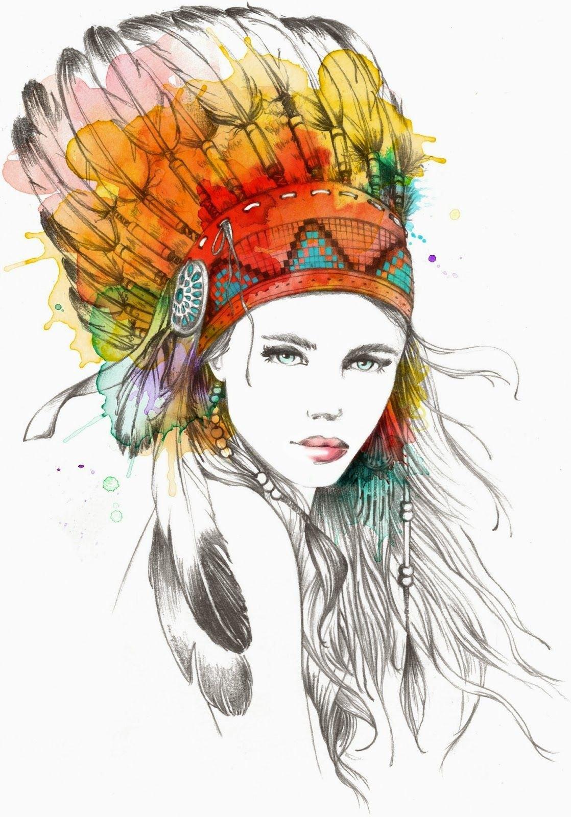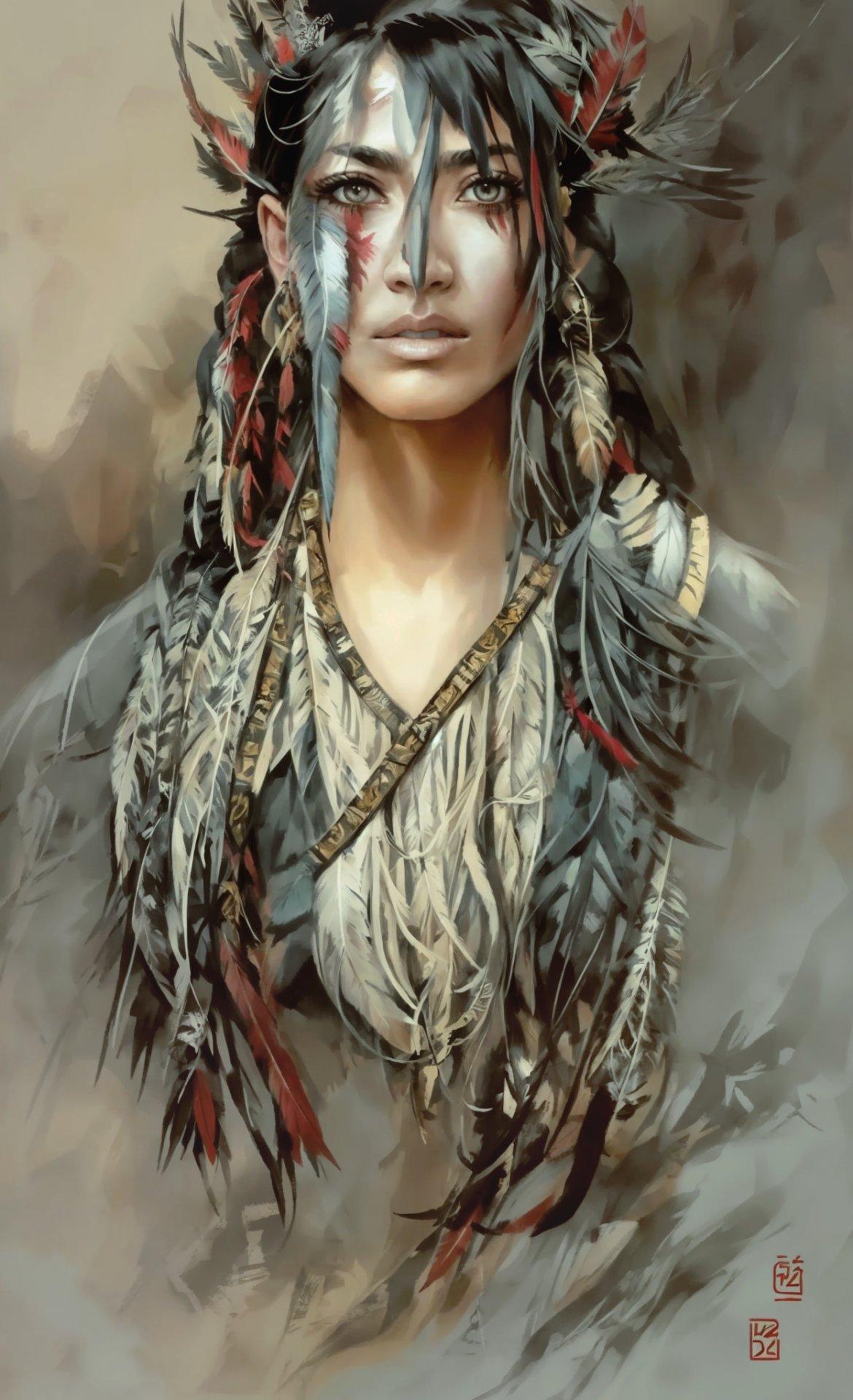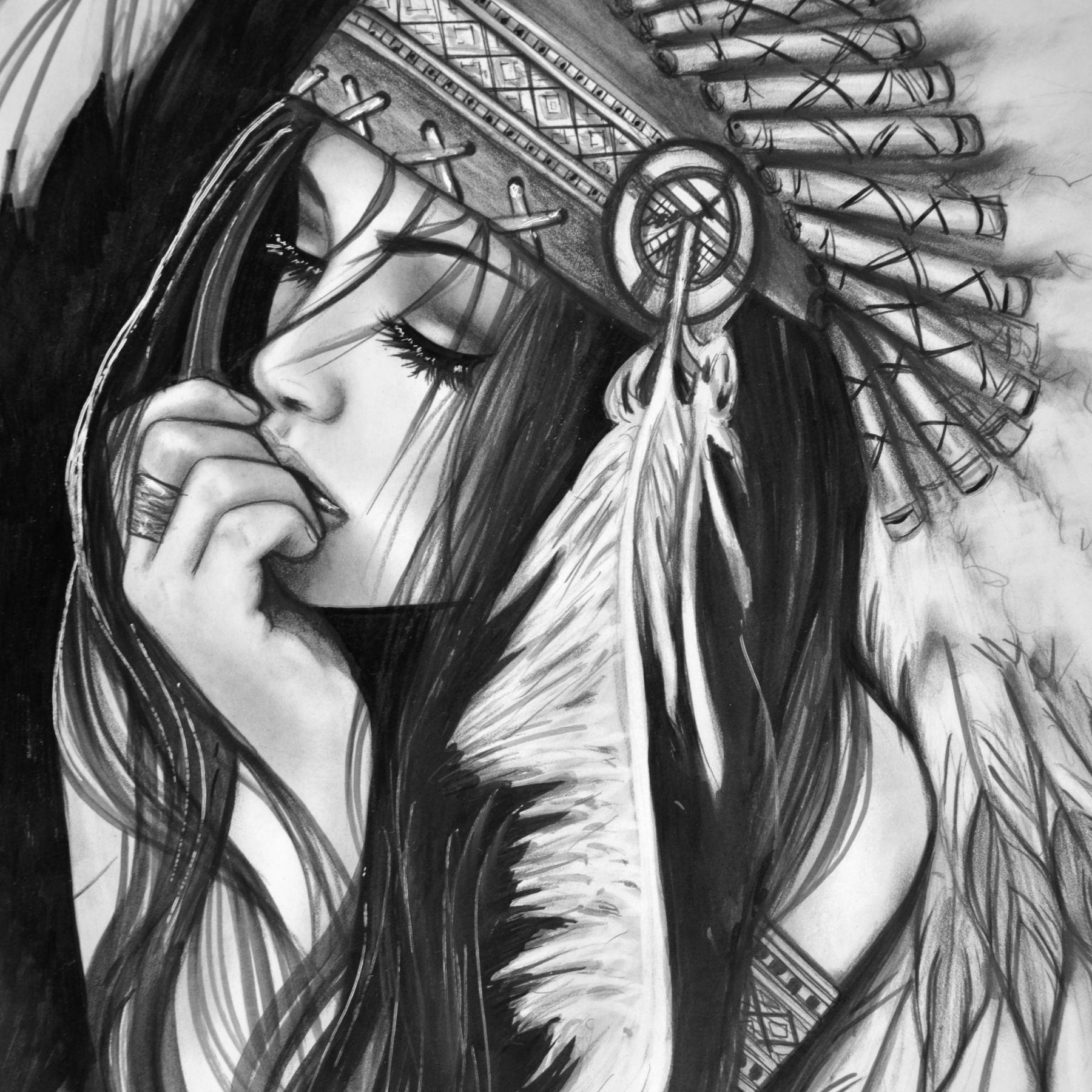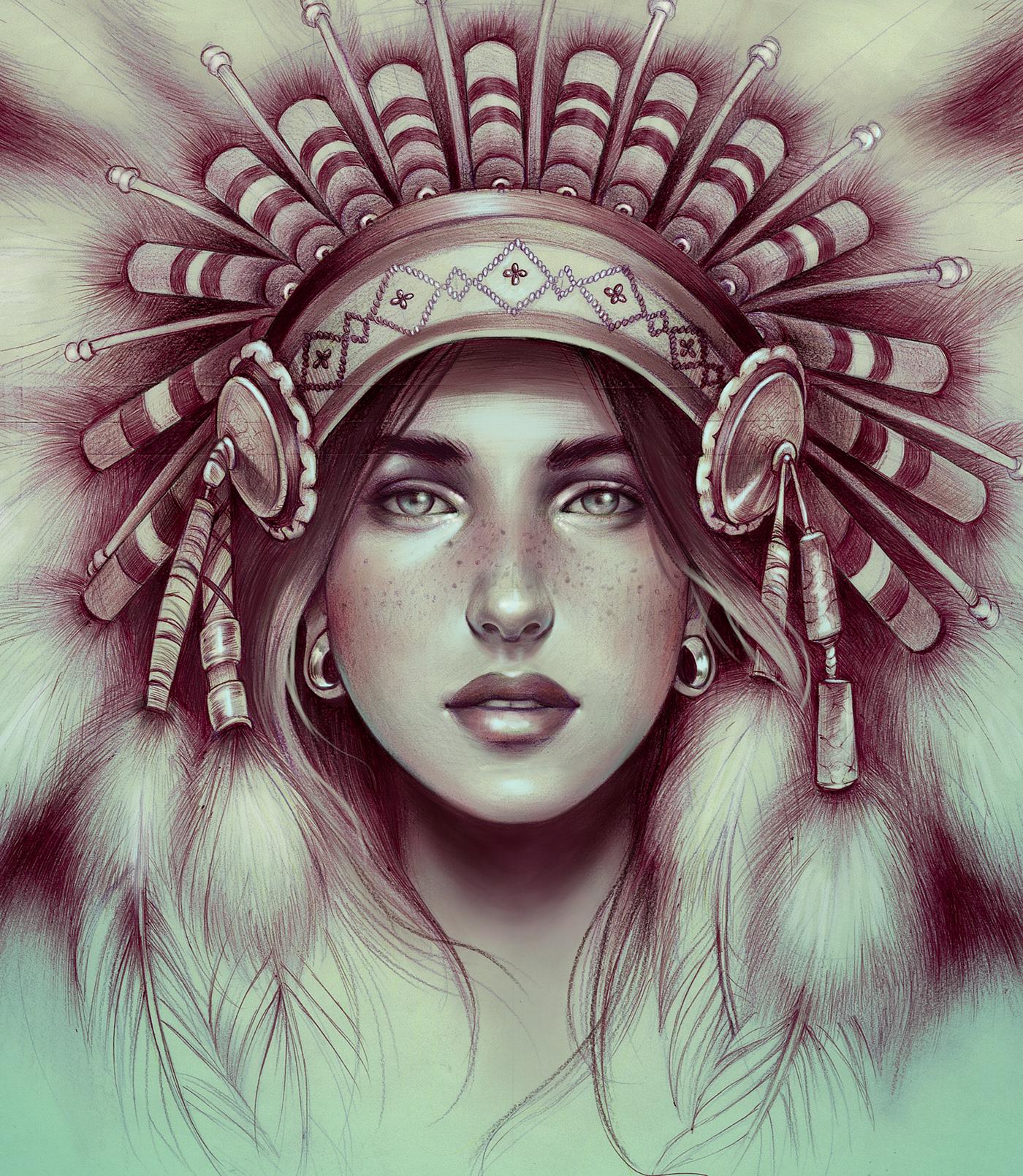 Девушка индеец арт