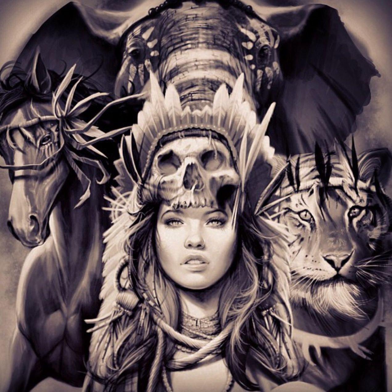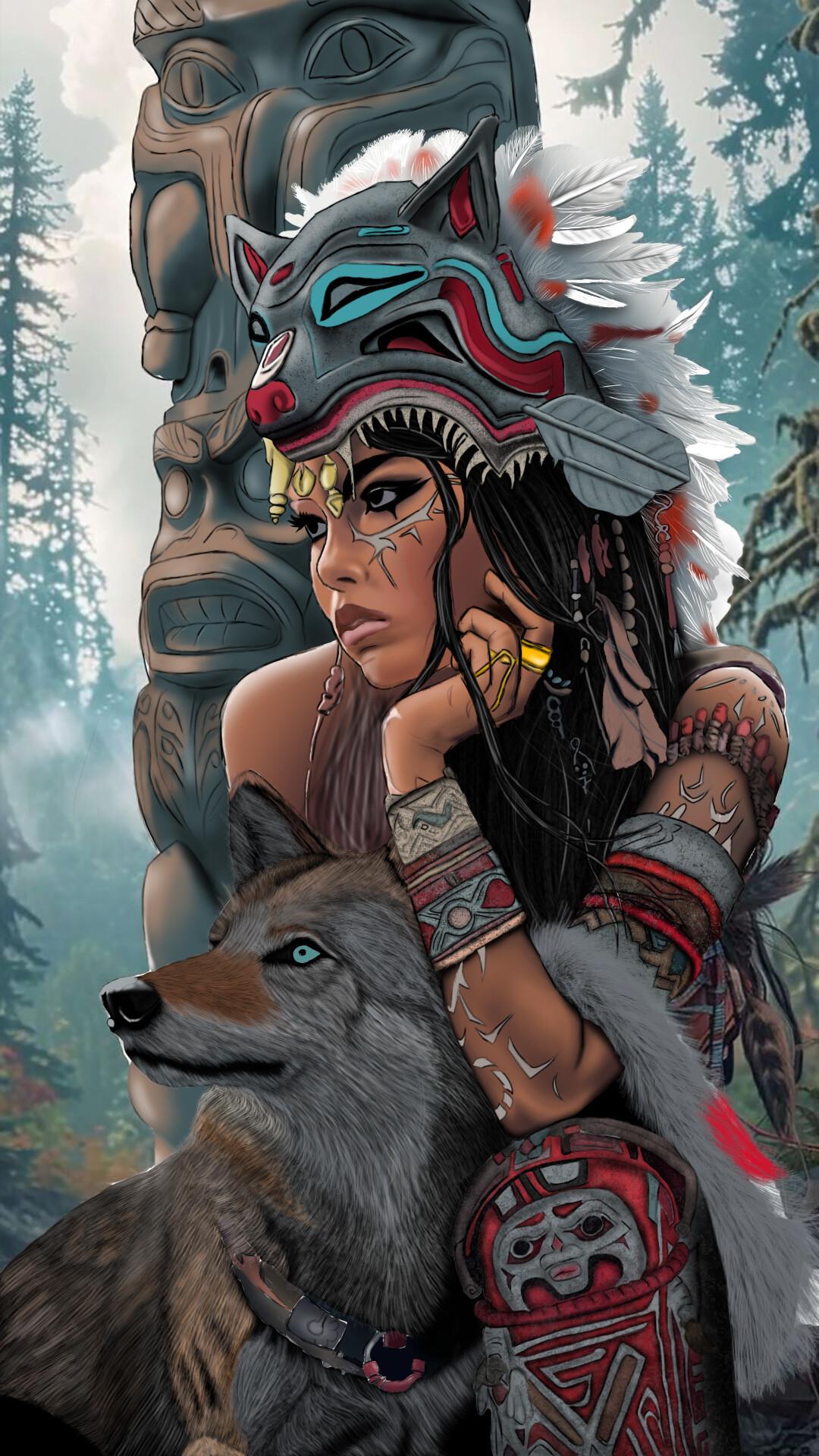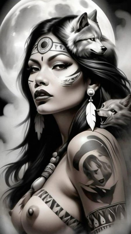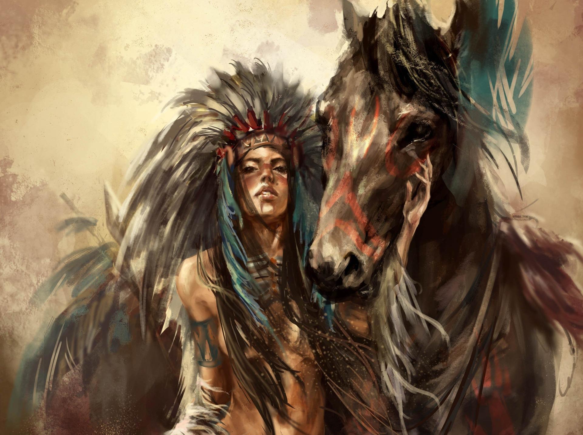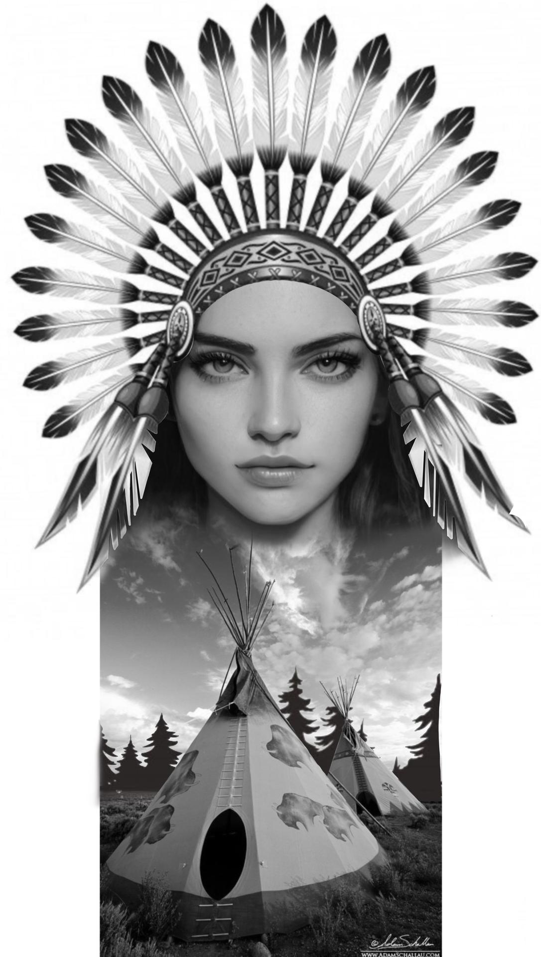 Девушка индеец арт