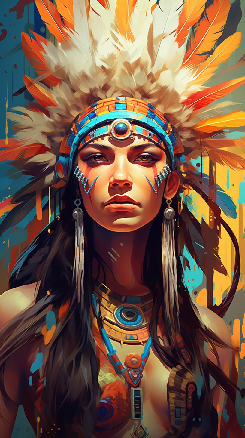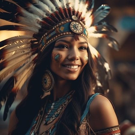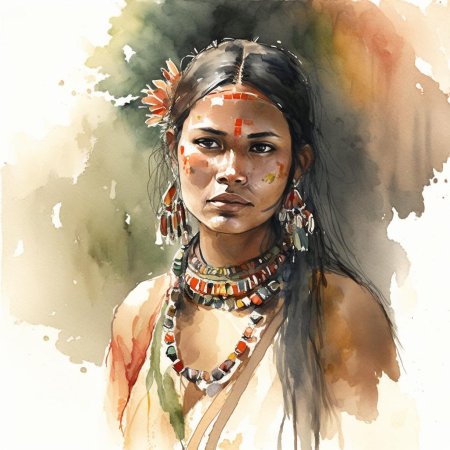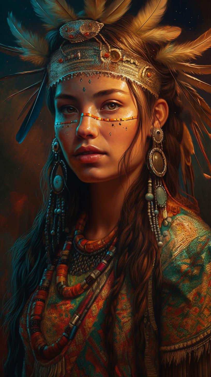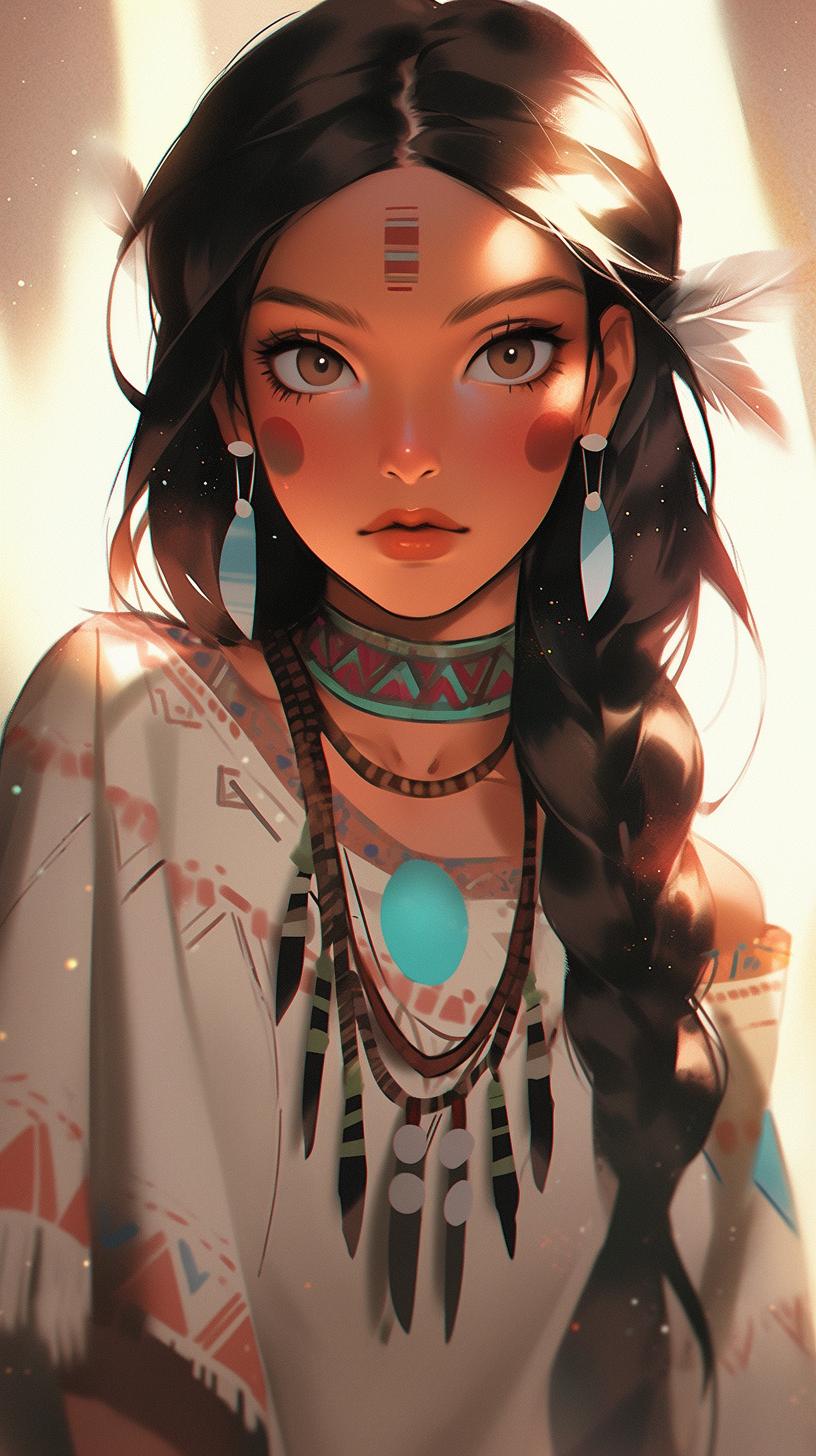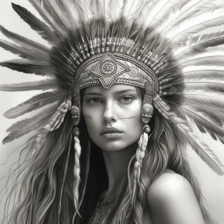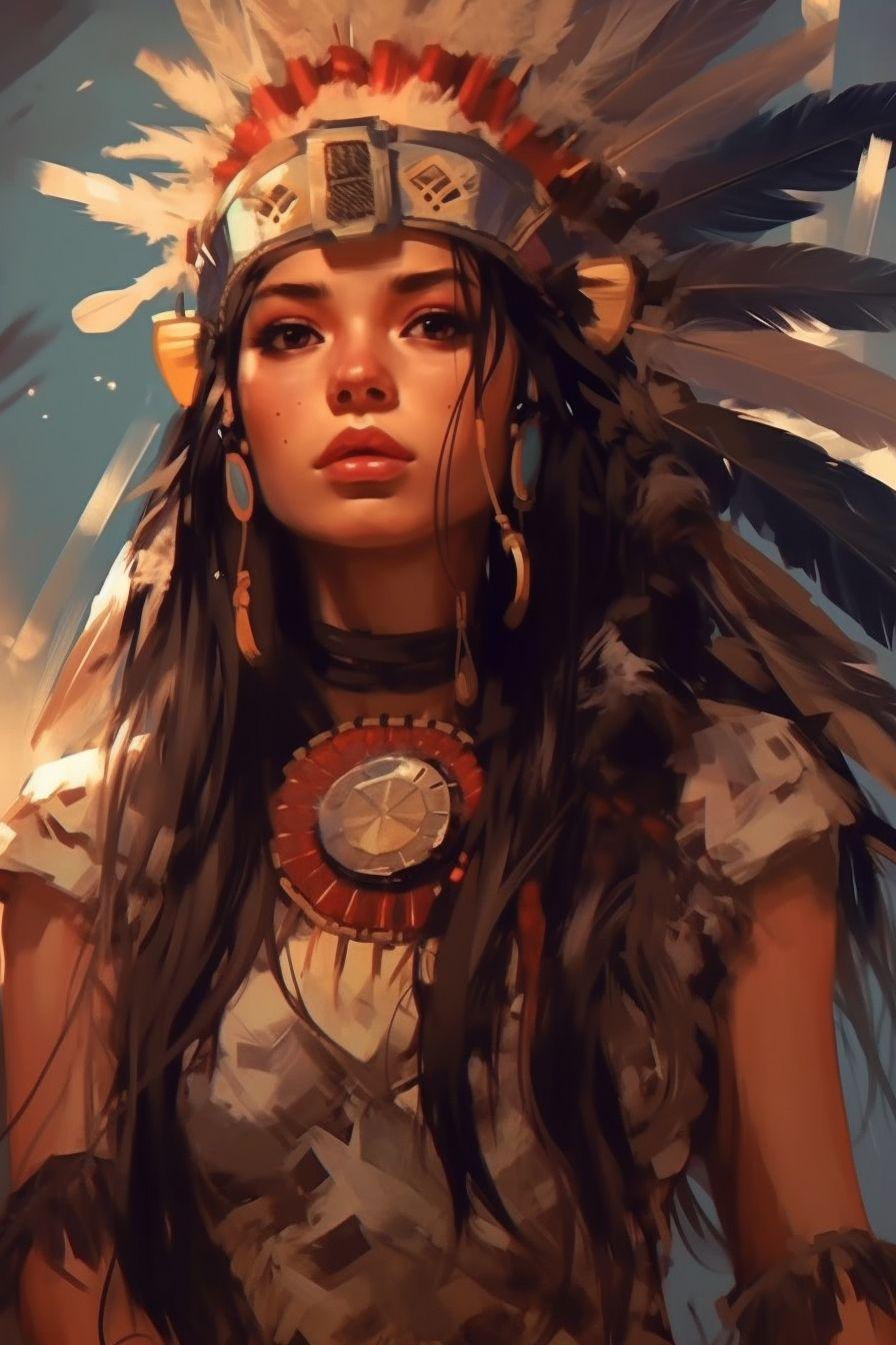 В мире, где традиции встречаются с современностью, индейская девушка становится мостом между прошлым и настоящим своего народа. Эта иллюстрация передает ее глубокую связь с природой - от перьев в волосах до узоров на одежде, каждый элемент рассказывает историю ее культуры. Художник передал атмосферу великих прерий и ощущение свободы, которое является частью мировоззрения коренных американцев. Композиция вдохновляет на уважение к культурному разнообразию и важность сохранения традиций.