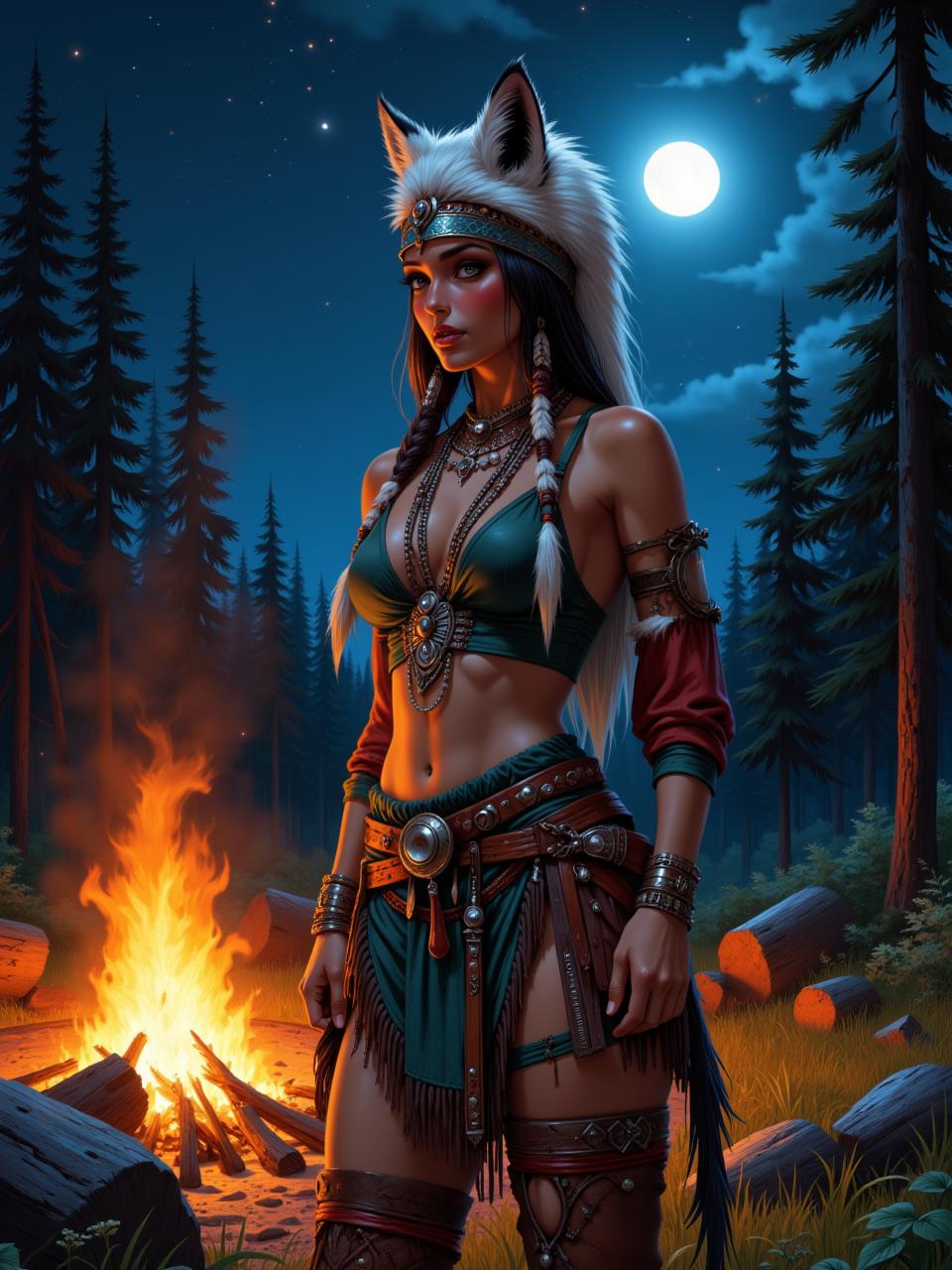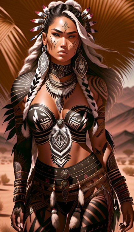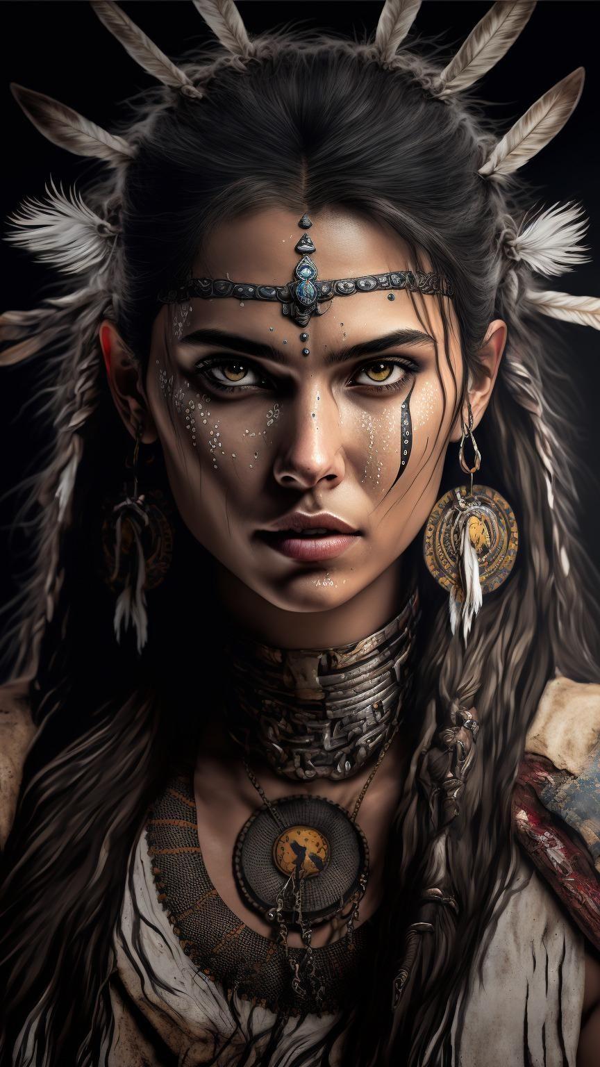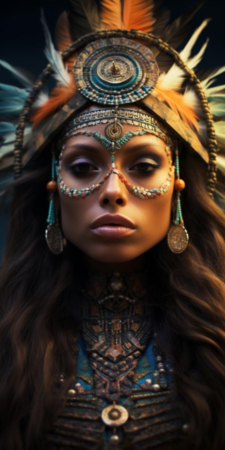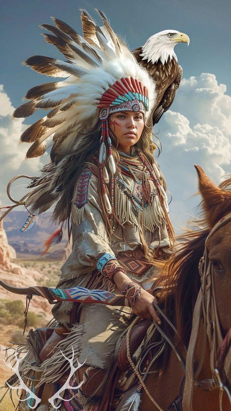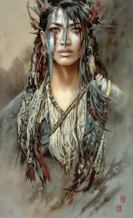 В мире, где традиции встречаются с современностью, индейская девушка становится мостом между прошлым и настоящим своего народа. Эта иллюстрация передает ее глубокую связь с природой - от перьев в волосах до узоров на одежде, каждый элемент рассказывает историю ее культуры. Художник передал атмосферу великих прерий и ощущение свободы, которое является частью мировоззрения коренных американцев. Композиция вдохновляет на уважение к культурному разнообразию и важность сохранения традиций.