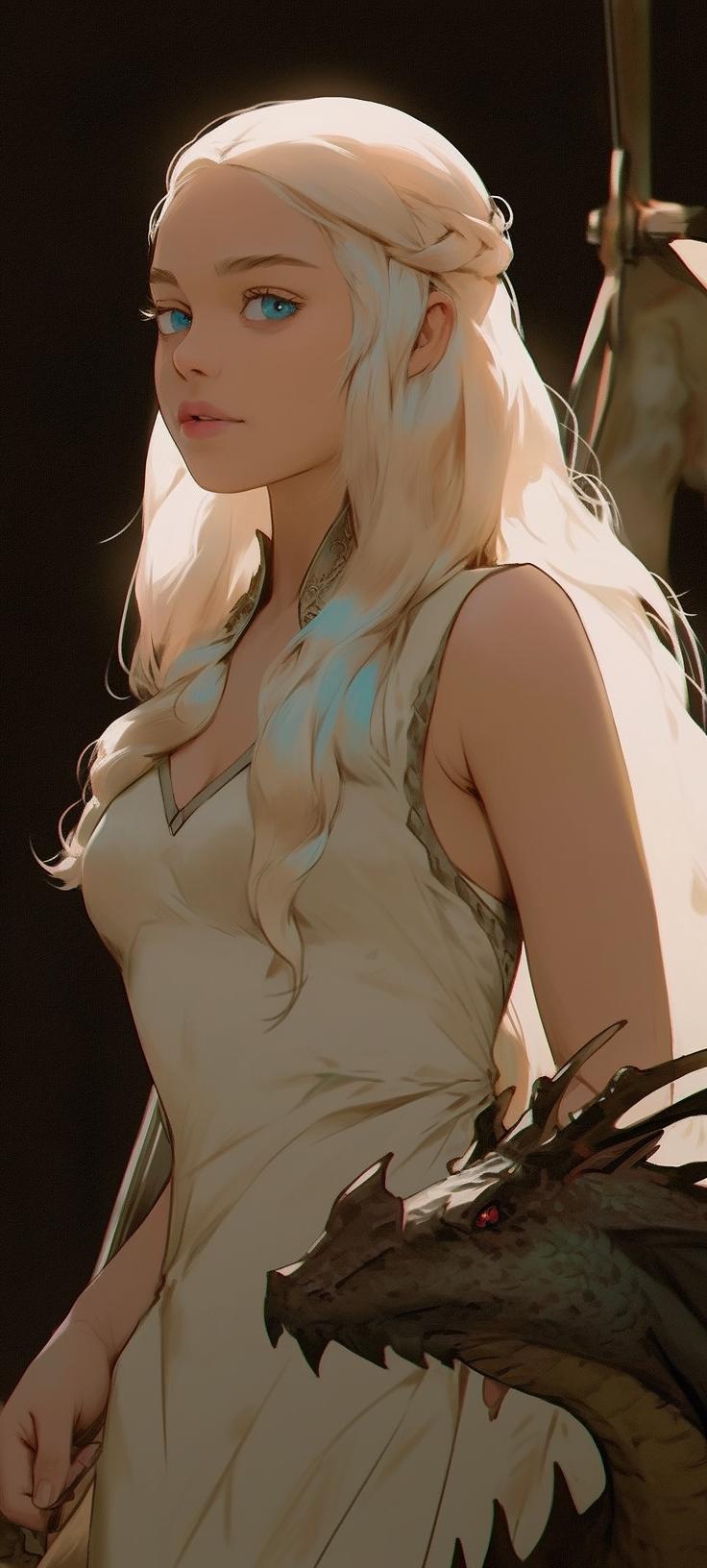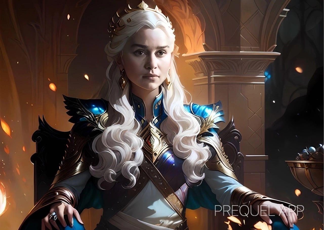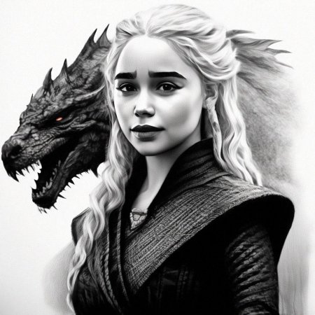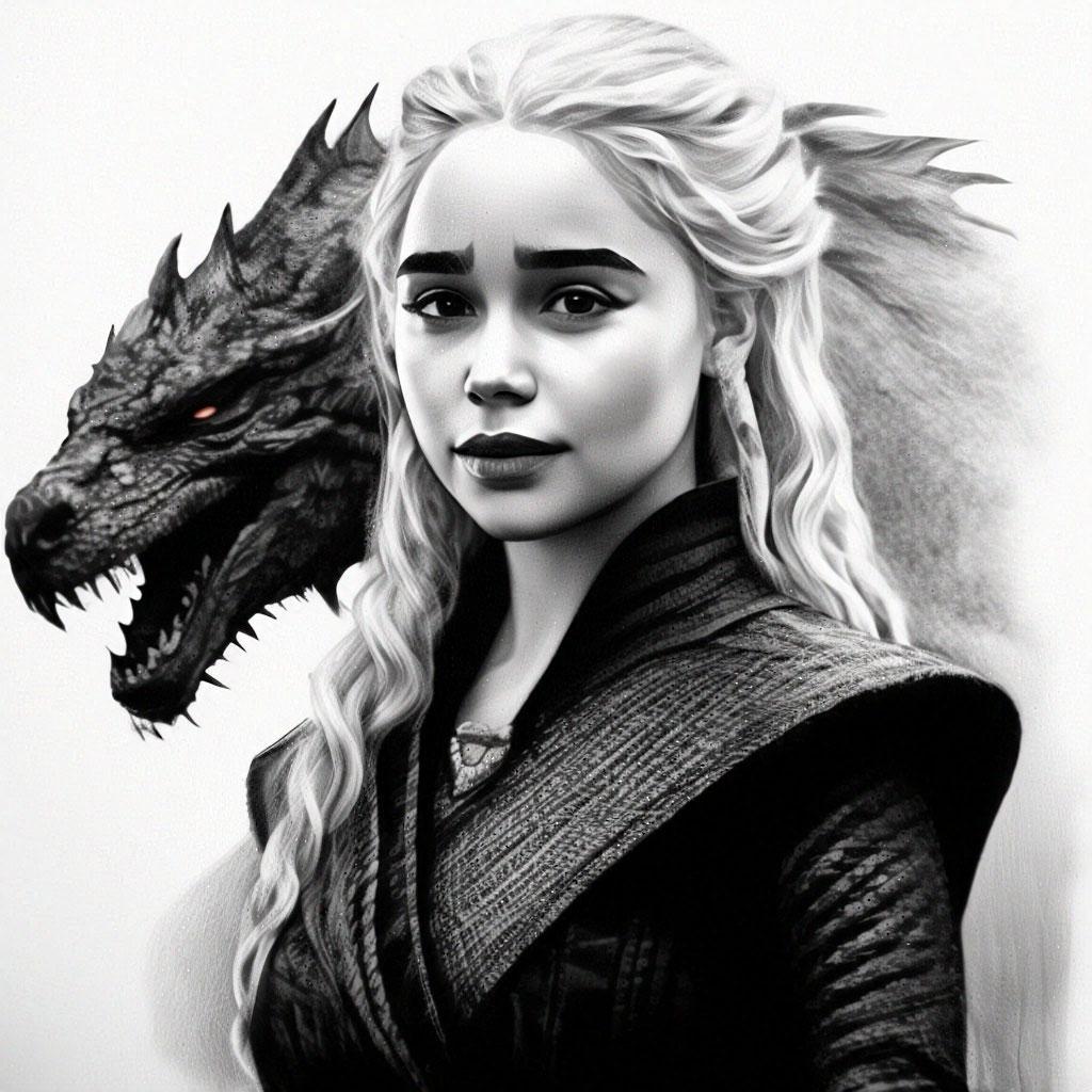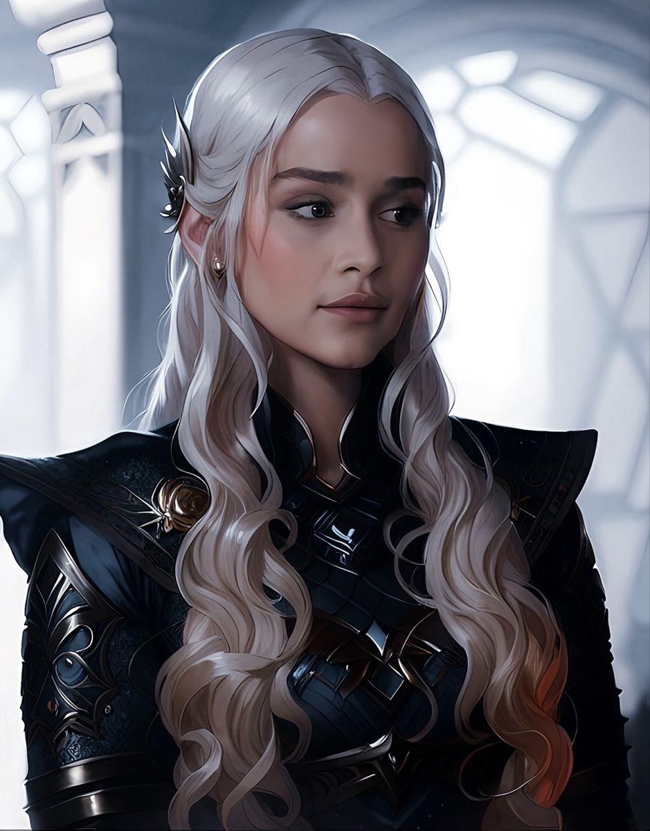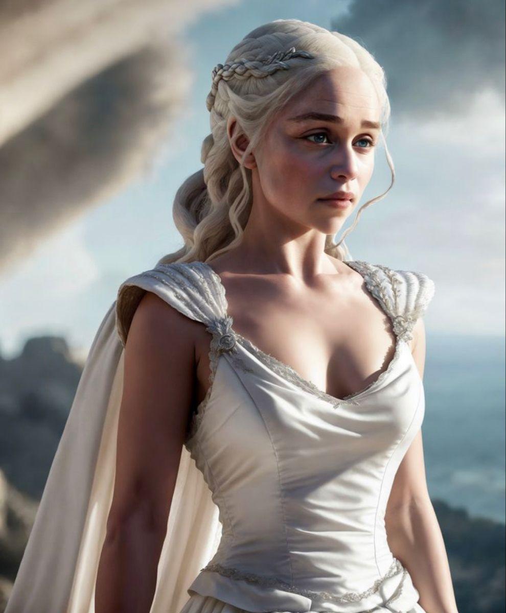 В этой вдохновляющей серии фотографий Дейенерис Таргарьен предстает как истинная королева с огненной волей и драконьей мощью. Художник мастерски передает ее трансформацию от беглянки до властительницы. Серебряные волосы, белые одежды и символ дракона стали иконическими элементами образа. Композиции показывают различные этапы ее пути - от моментов сомнения до триумфов победы. Эти фото напоминают о силе характера и цене лидерства в мире интриг и предательств.