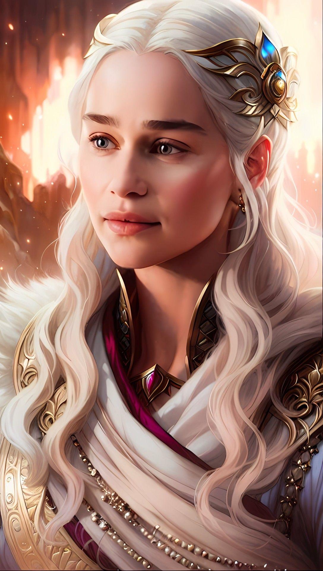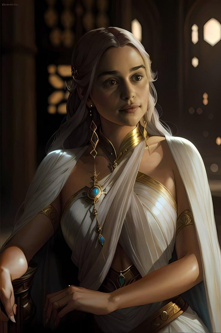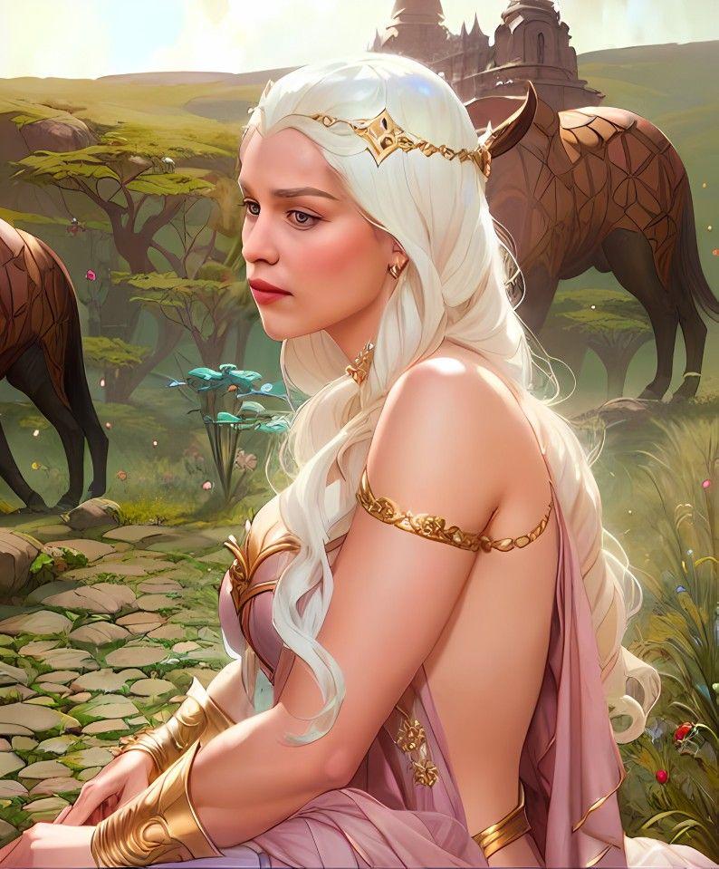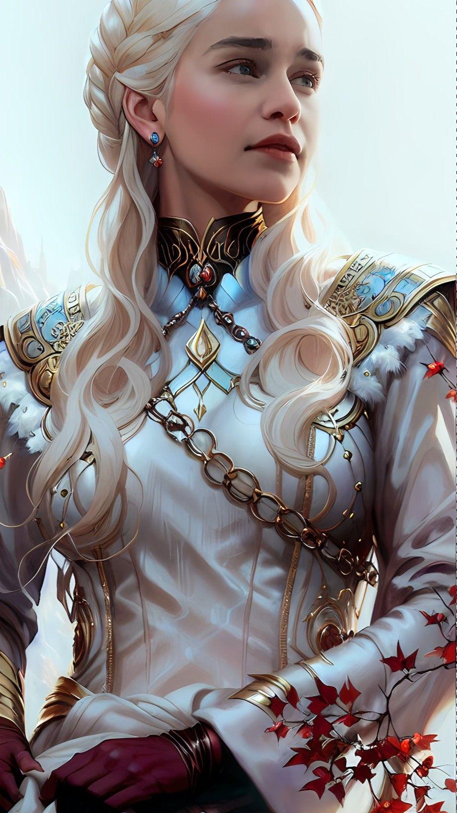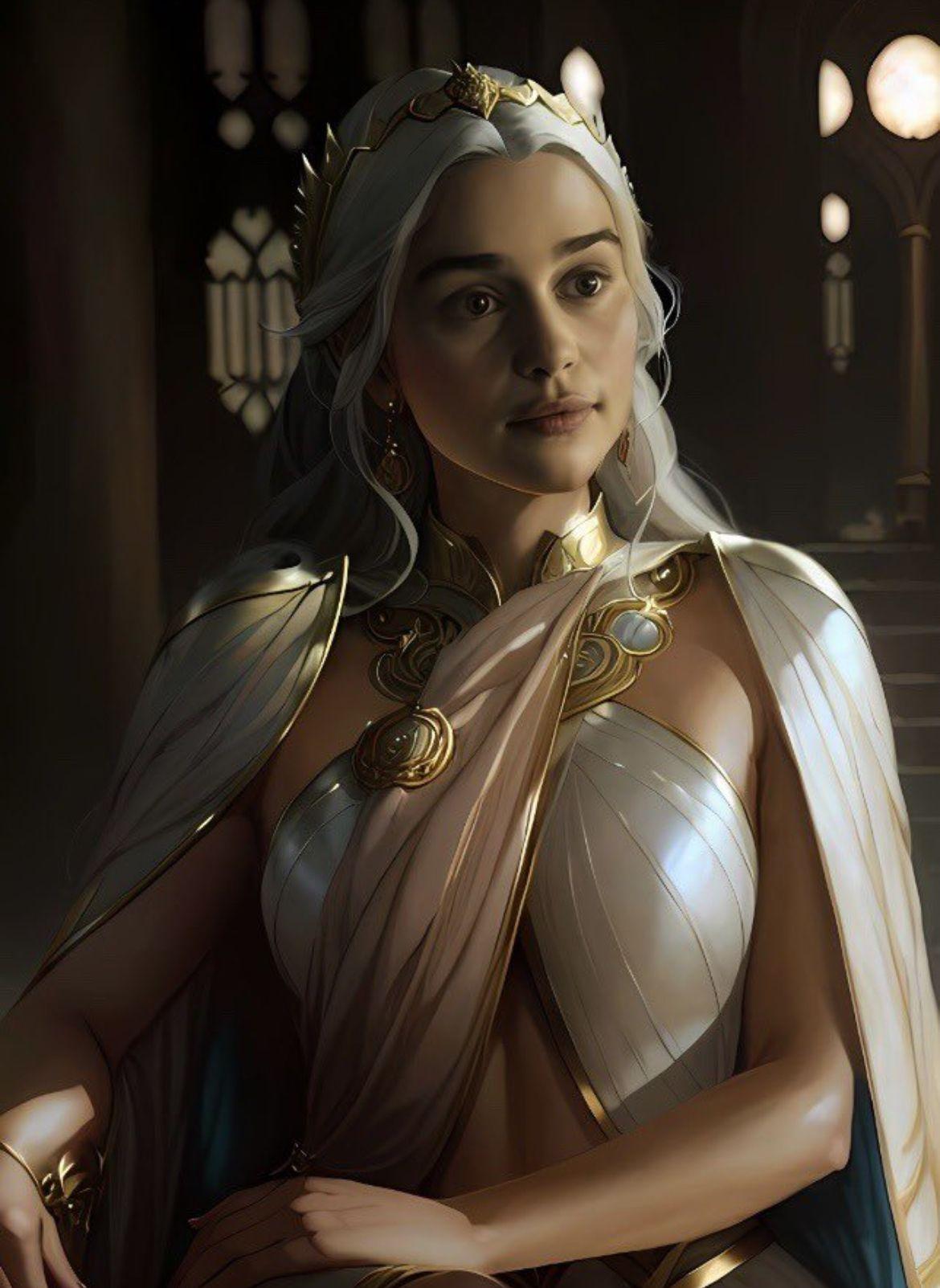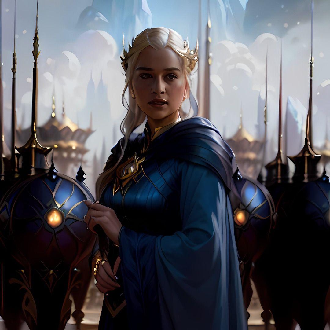 В этой вдохновляющей серии фотографий Дейенерис Таргарьен предстает как истинная королева с огненной волей и драконьей мощью. Художник мастерски передает ее трансформацию от беглянки до властительницы. Серебряные волосы, белые одежды и символ дракона стали иконическими элементами образа. Композиции показывают различные этапы ее пути - от моментов сомнения до триумфов победы. Эти фото напоминают о силе характера и цене лидерства в мире интриг и предательств.