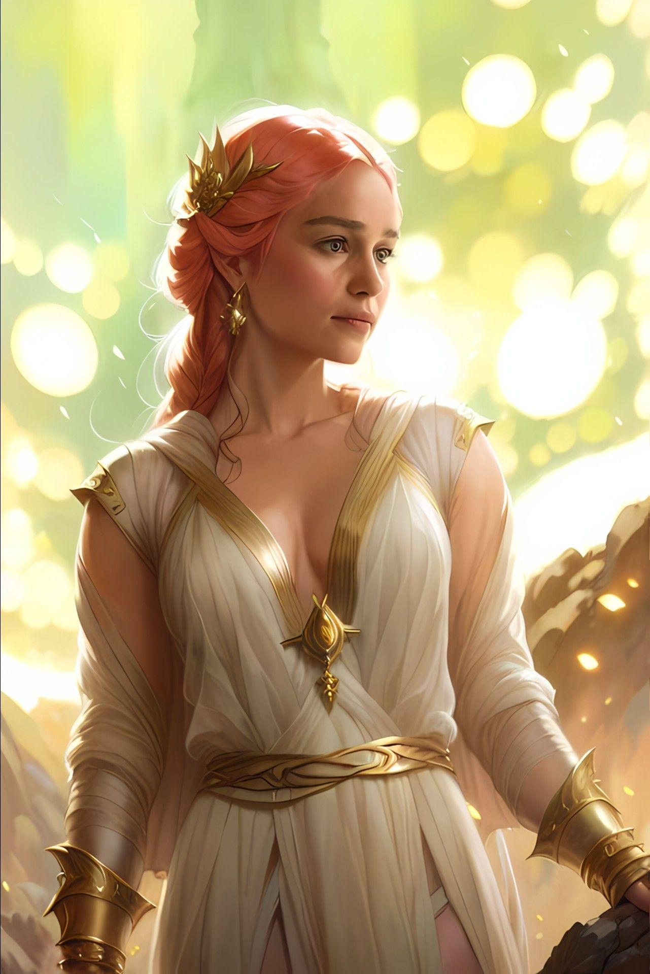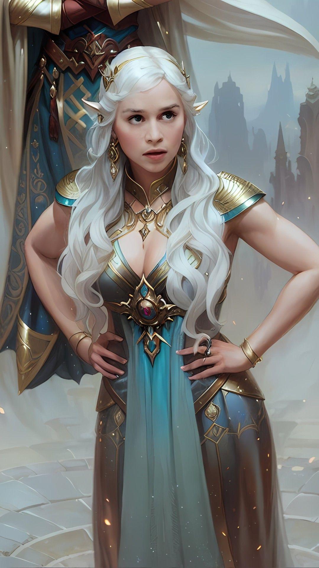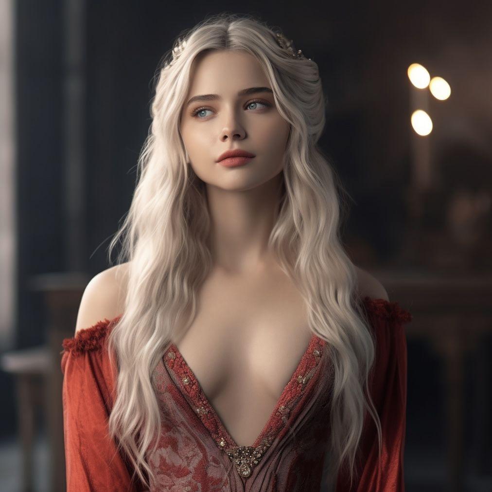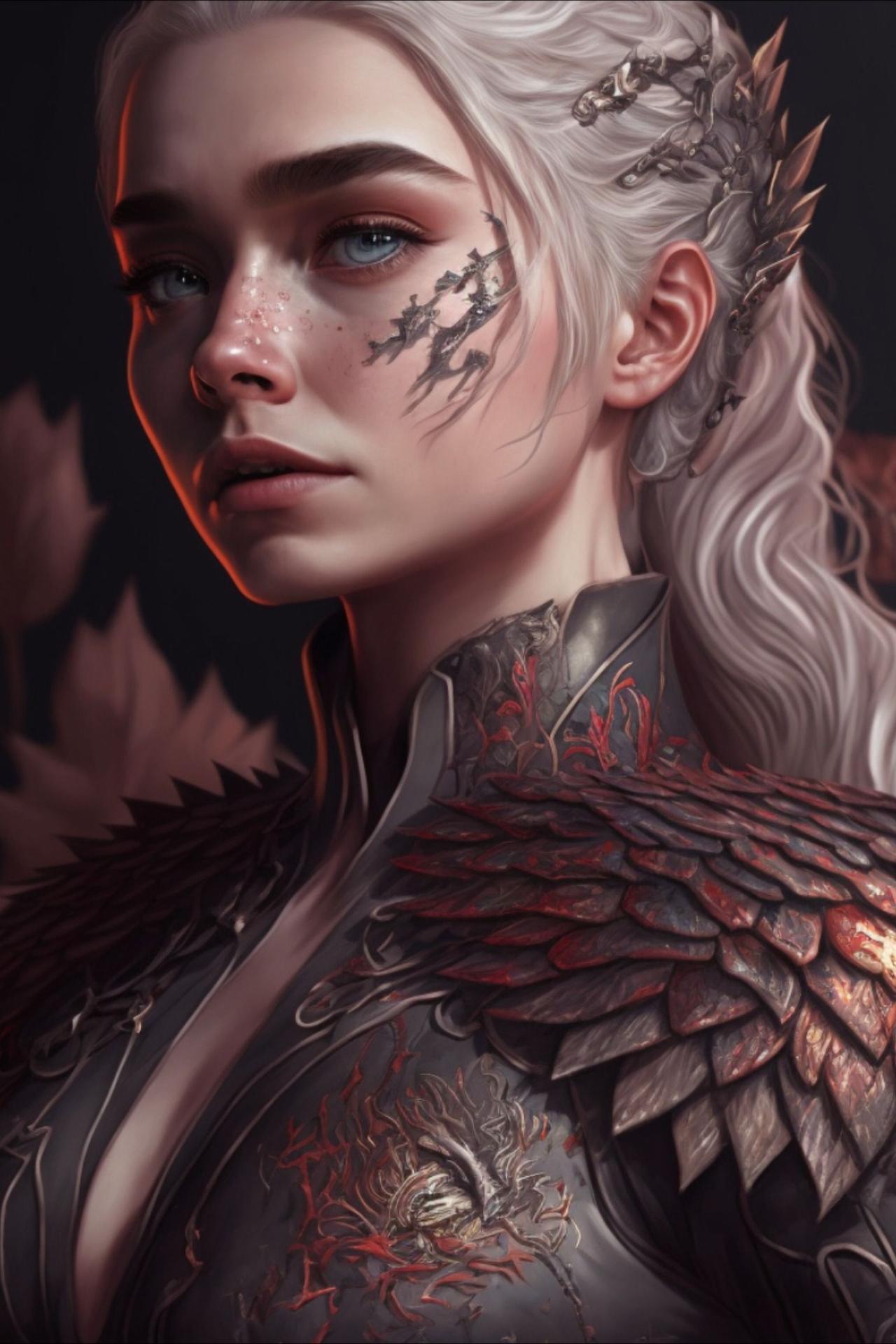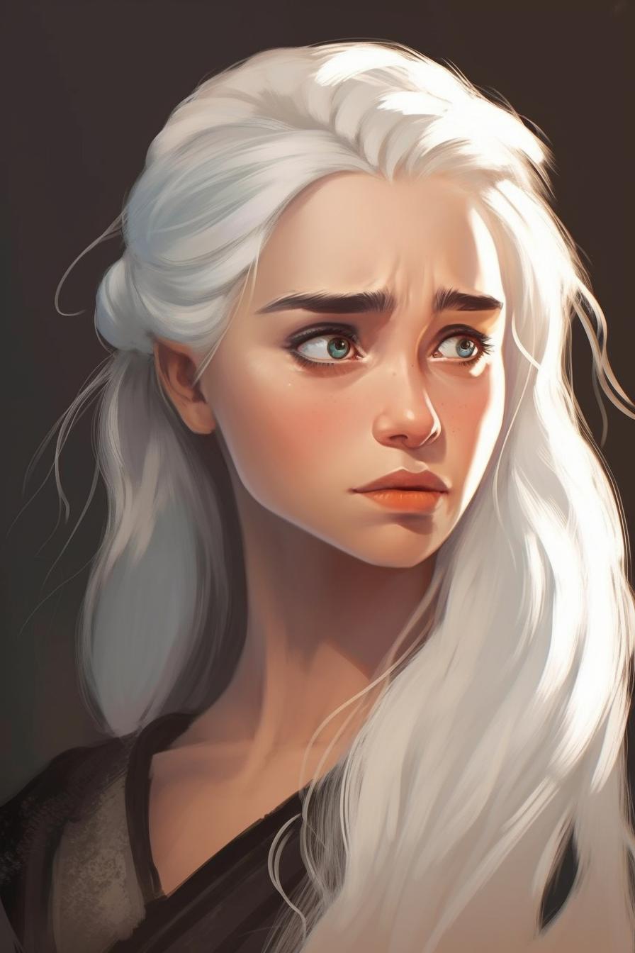 В этой вдохновляющей серии фотографий Дейенерис Таргарьен предстает как истинная королева с огненной волей и драконьей мощью. Художник мастерски передает ее трансформацию от беглянки до властительницы. Серебряные волосы, белые одежды и символ дракона стали иконическими элементами образа. Композиции показывают различные этапы ее пути - от моментов сомнения до триумфов победы. Эти фото напоминают о силе характера и цене лидерства в мире интриг и предательств.