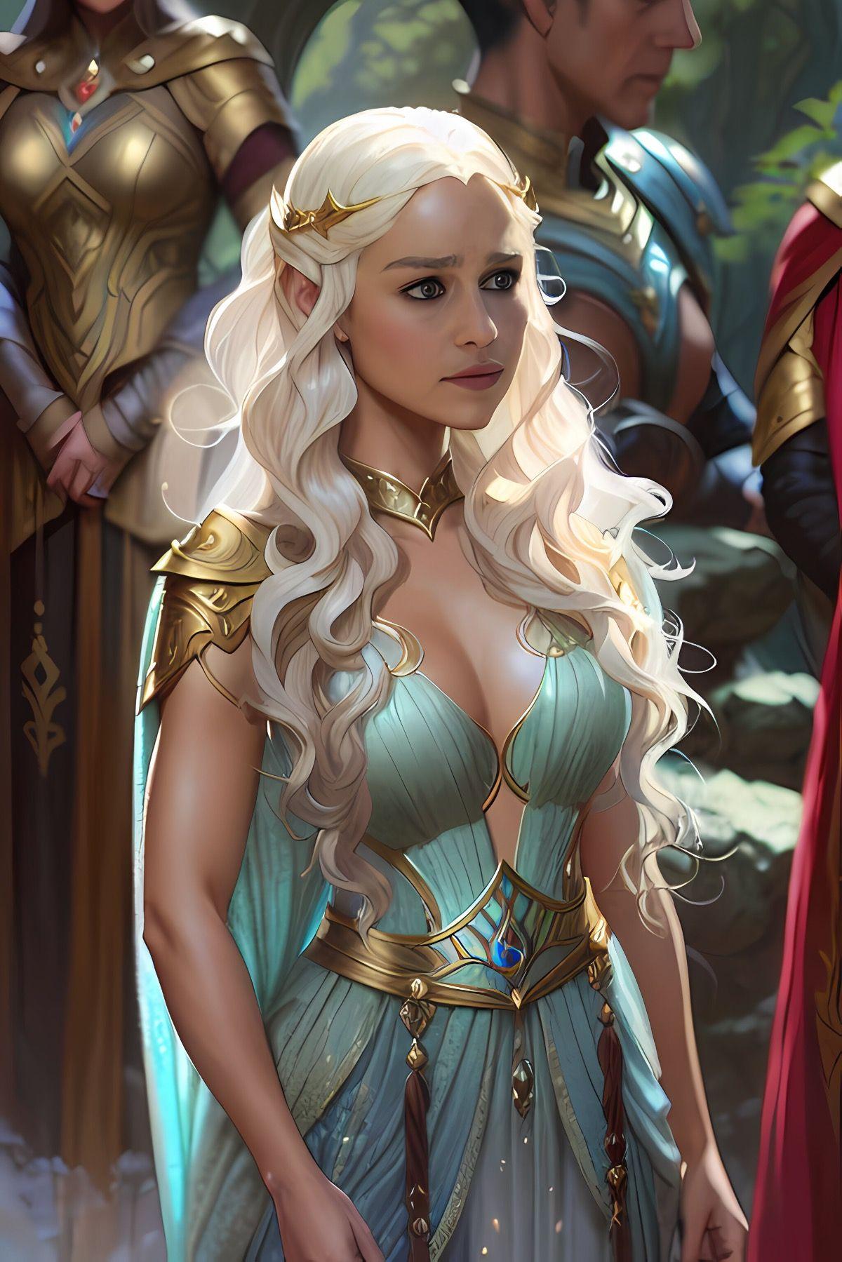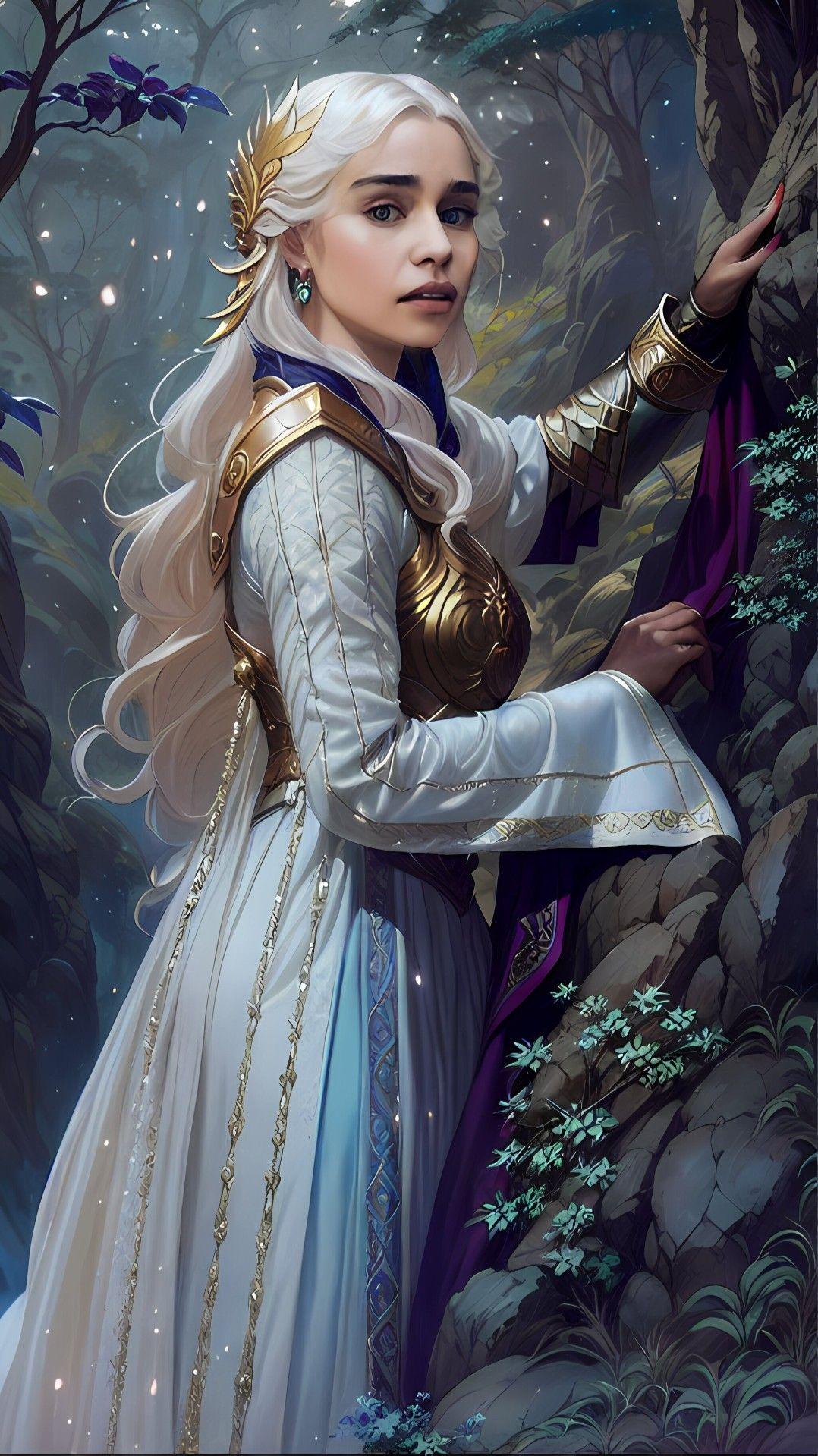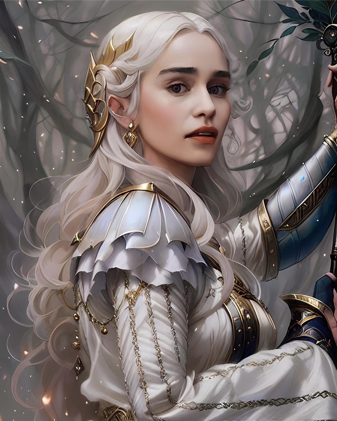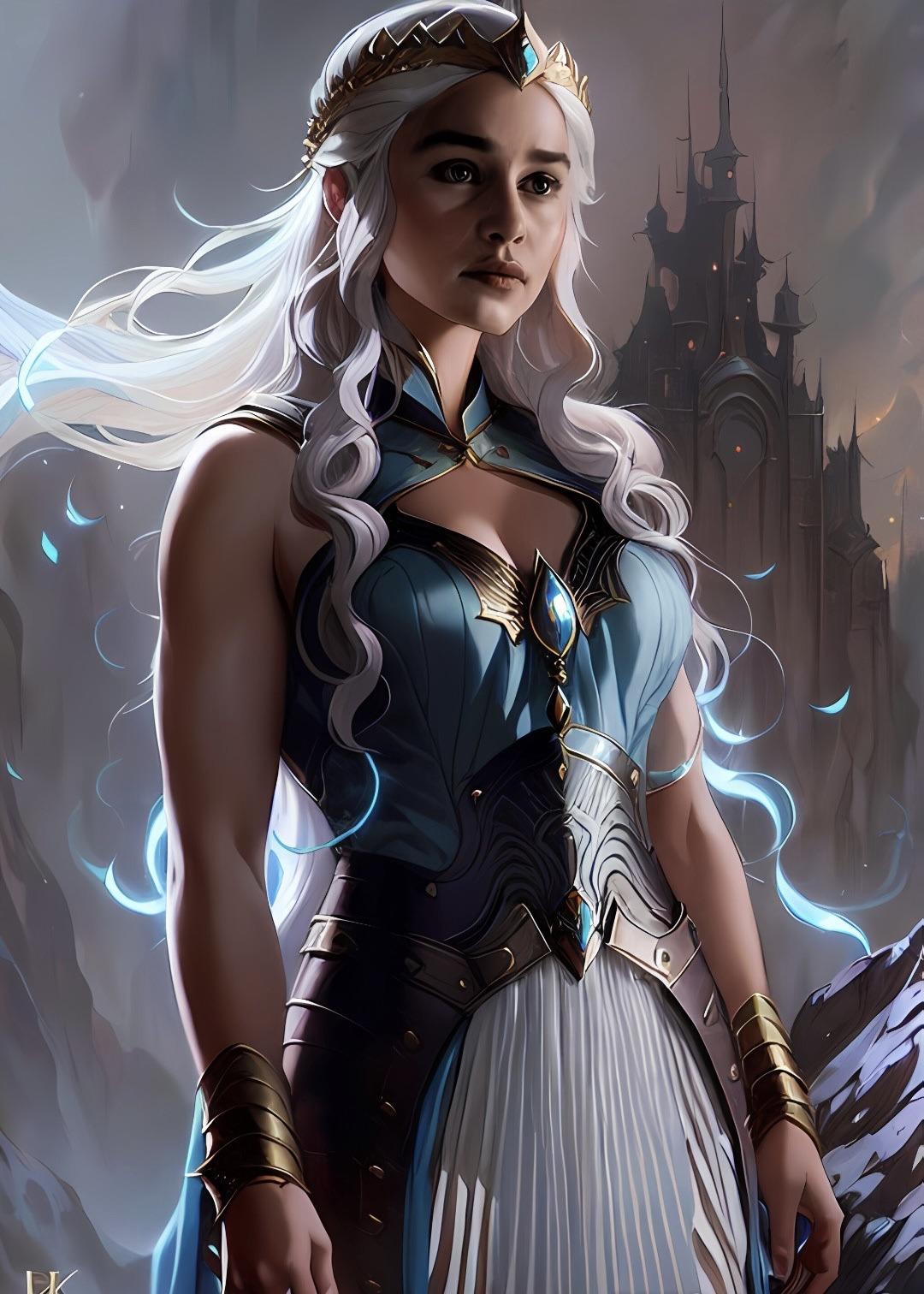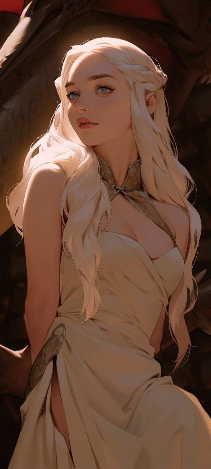 В этой вдохновляющей серии фотографий Дейенерис Таргарьен предстает как истинная королева с огненной волей и драконьей мощью. Художник мастерски передает ее трансформацию от беглянки до властительницы. Серебряные волосы, белые одежды и символ дракона стали иконическими элементами образа. Композиции показывают различные этапы ее пути - от моментов сомнения до триумфов победы. Эти фото напоминают о силе характера и цене лидерства в мире интриг и предательств.