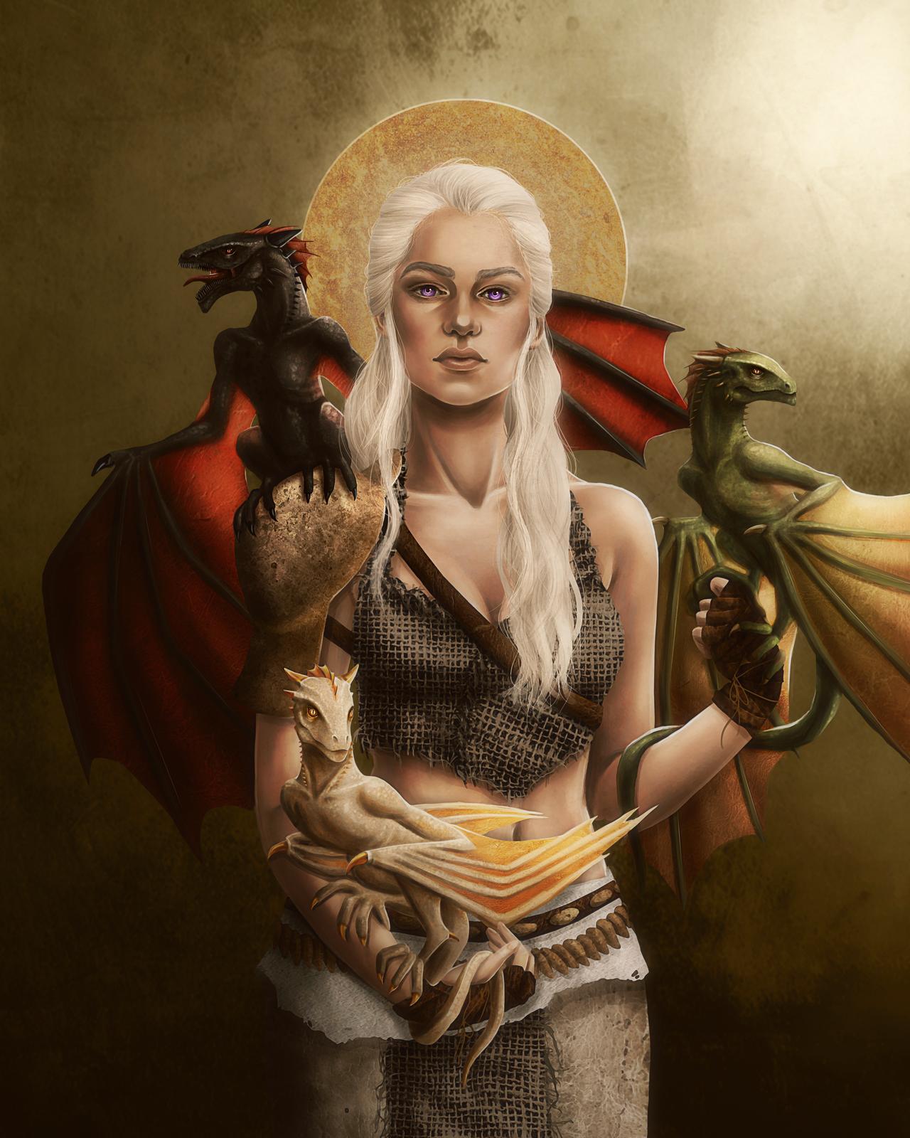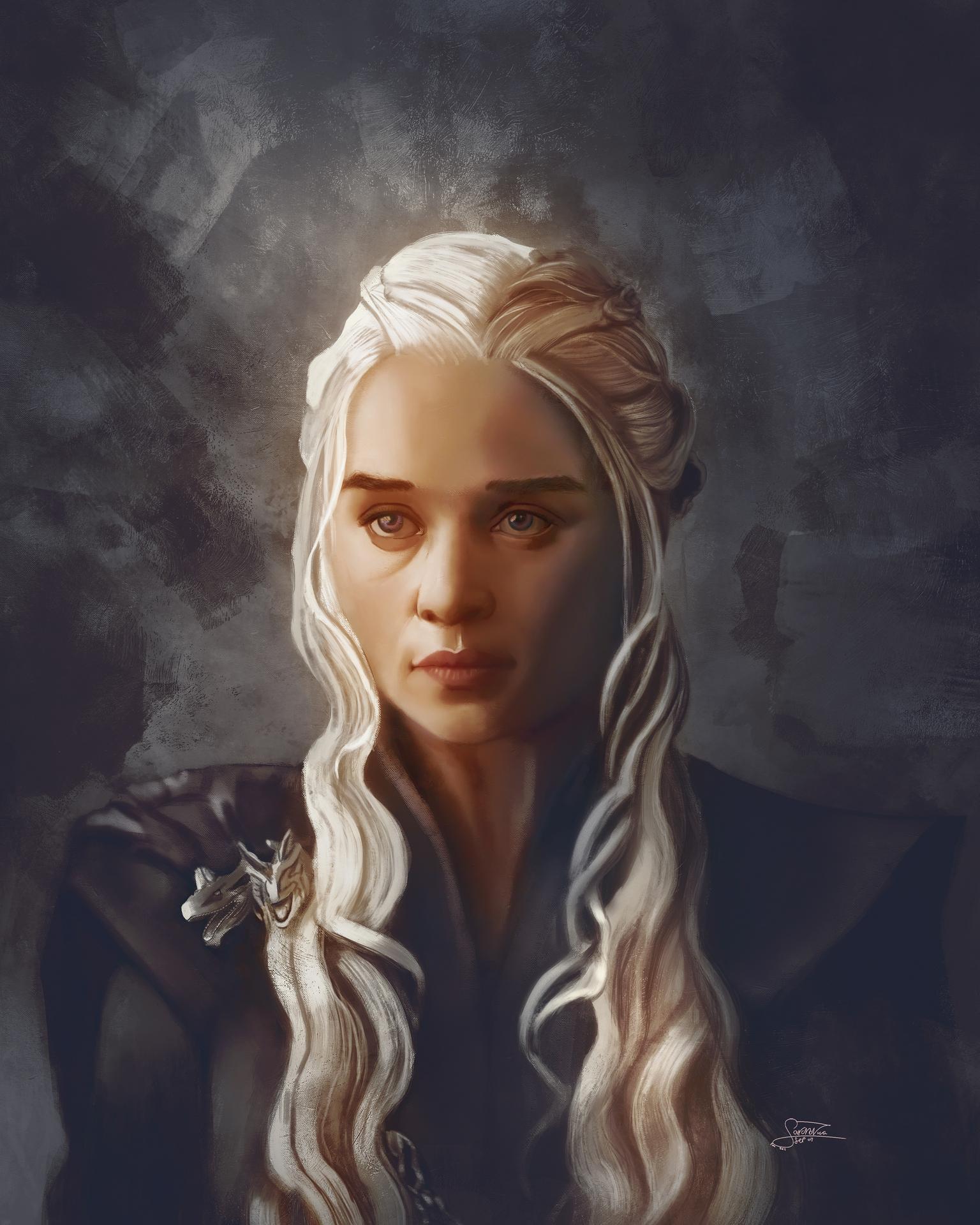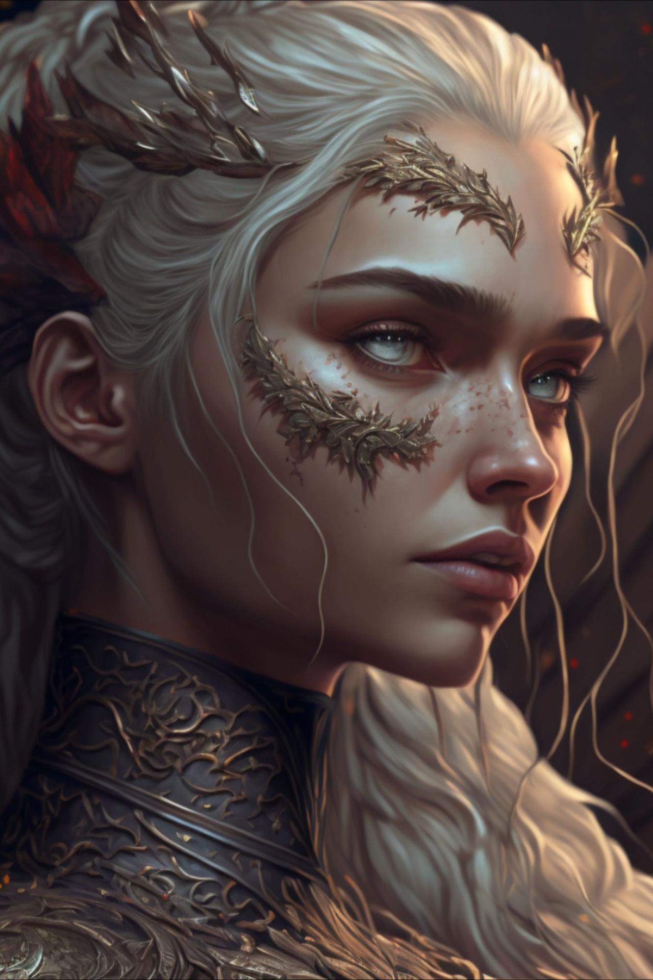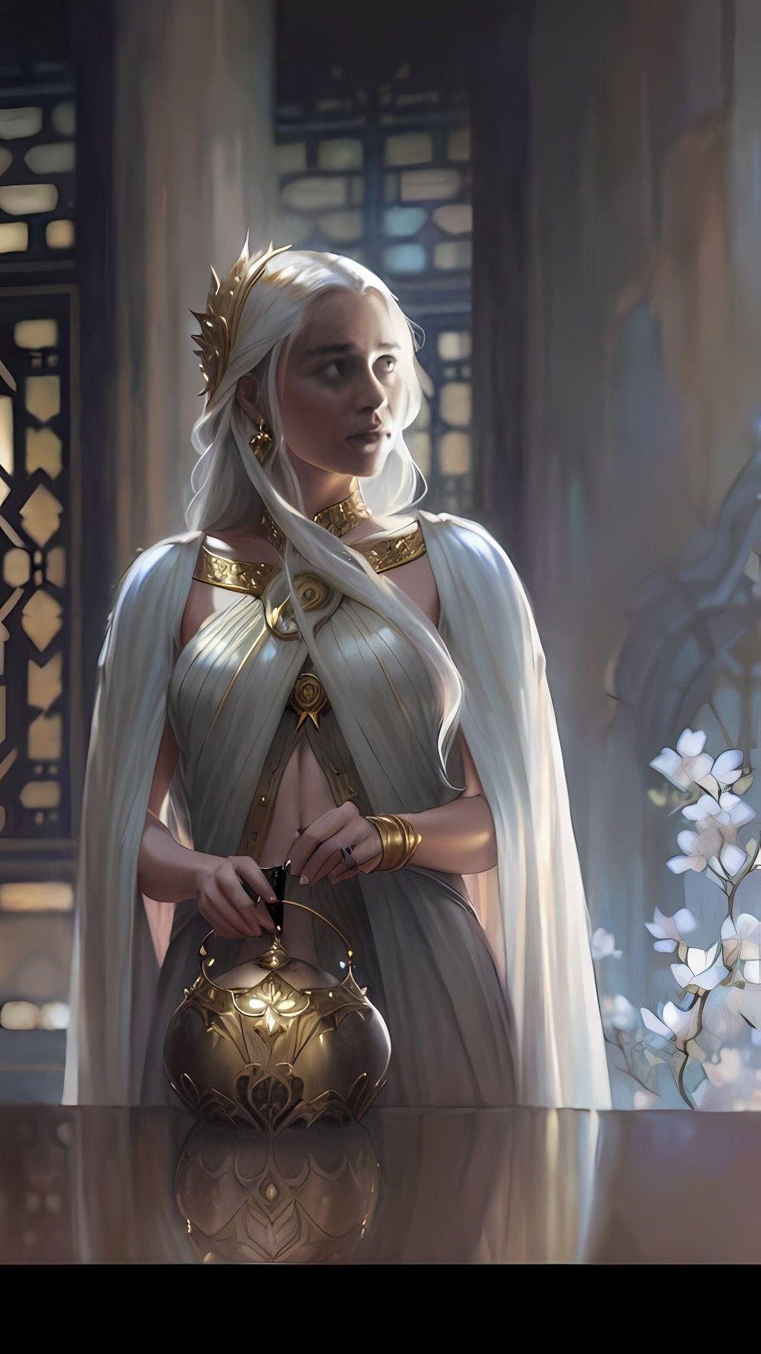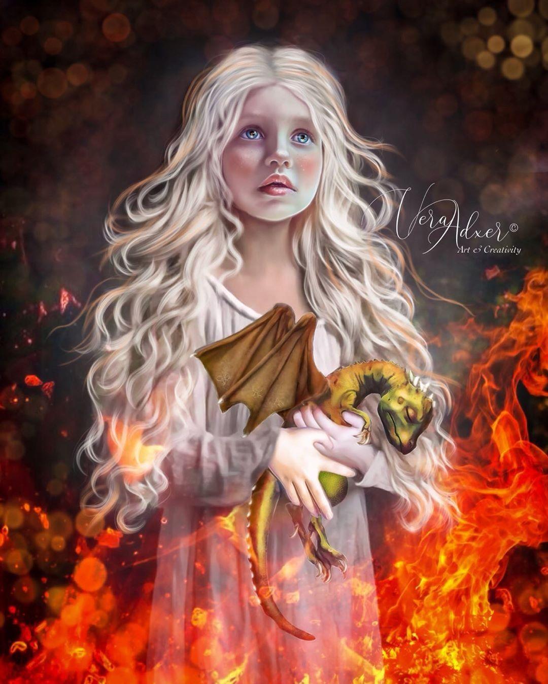 В этой вдохновляющей серии фотографий Дейенерис Таргарьен предстает как истинная королева с огненной волей и драконьей мощью. Художник мастерски передает ее трансформацию от беглянки до властительницы. Серебряные волосы, белые одежды и символ дракона стали иконическими элементами образа. Композиции показывают различные этапы ее пути - от моментов сомнения до триумфов победы. Эти фото напоминают о силе характера и цене лидерства в мире интриг и предательств.