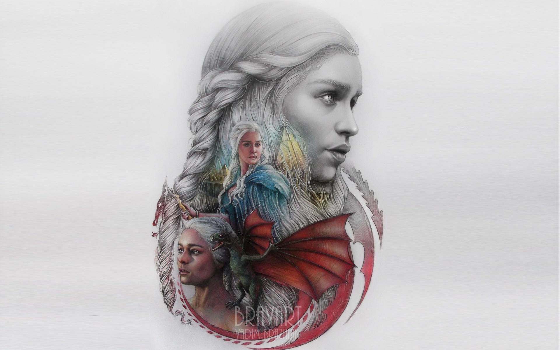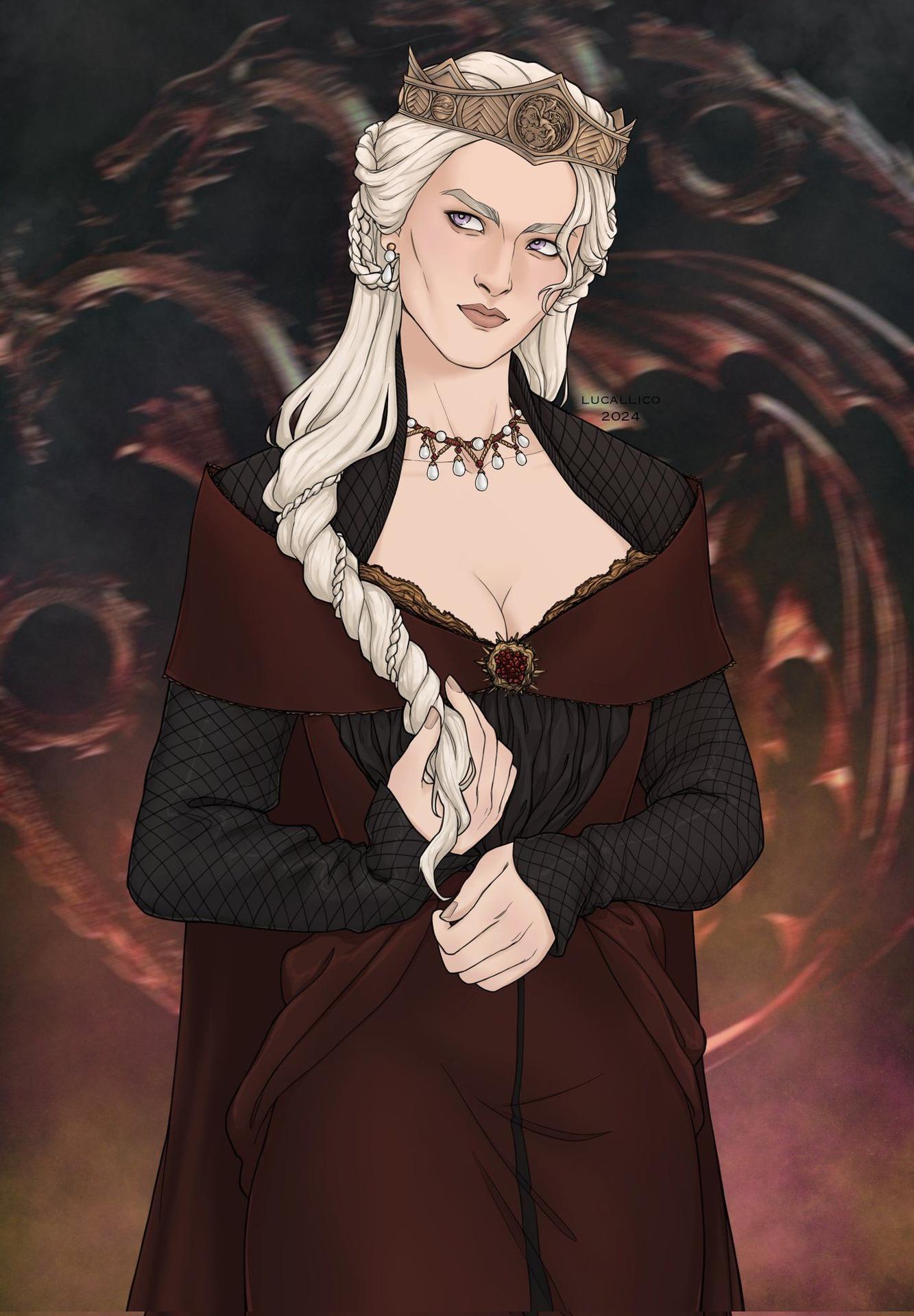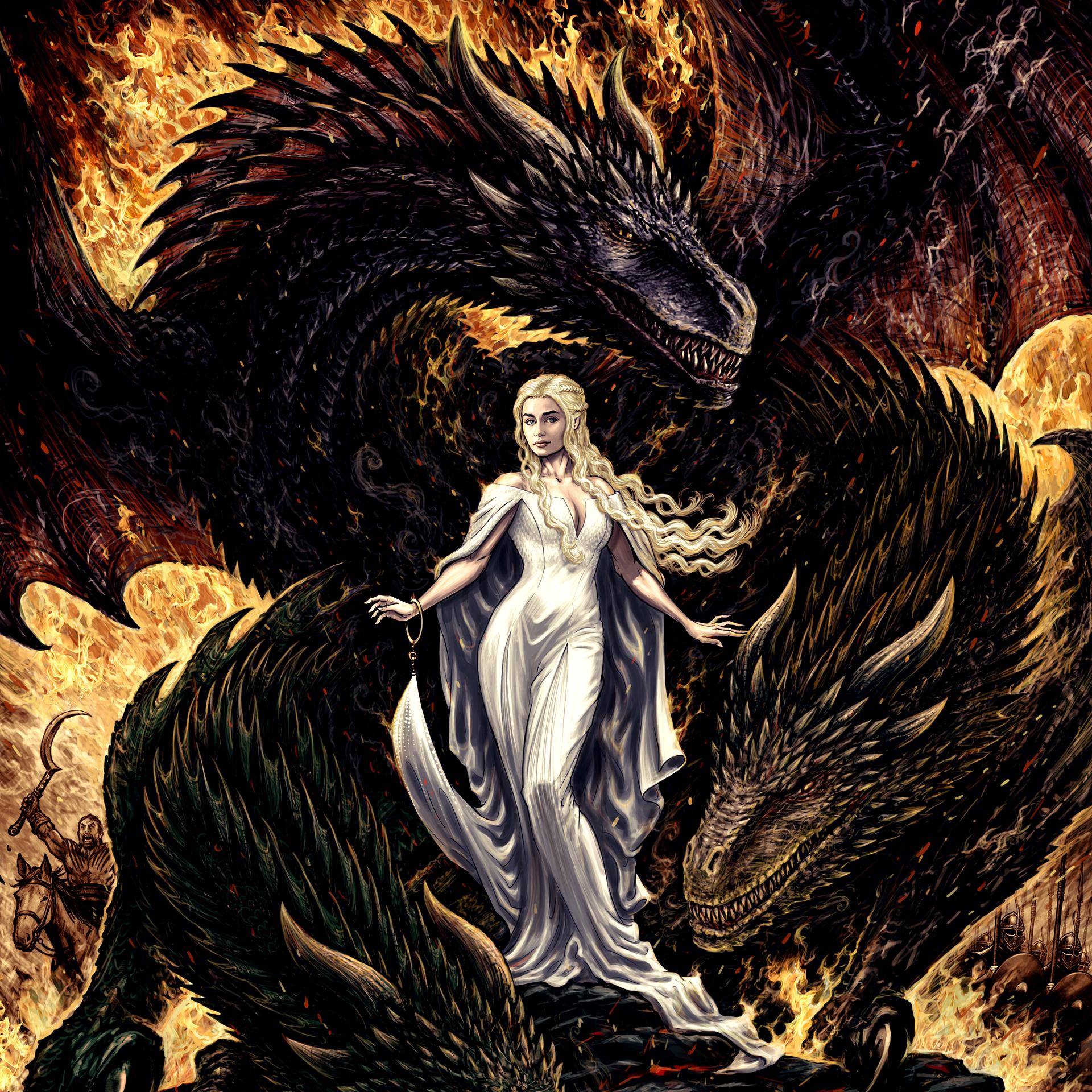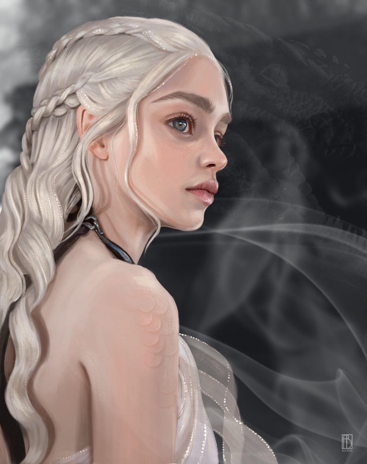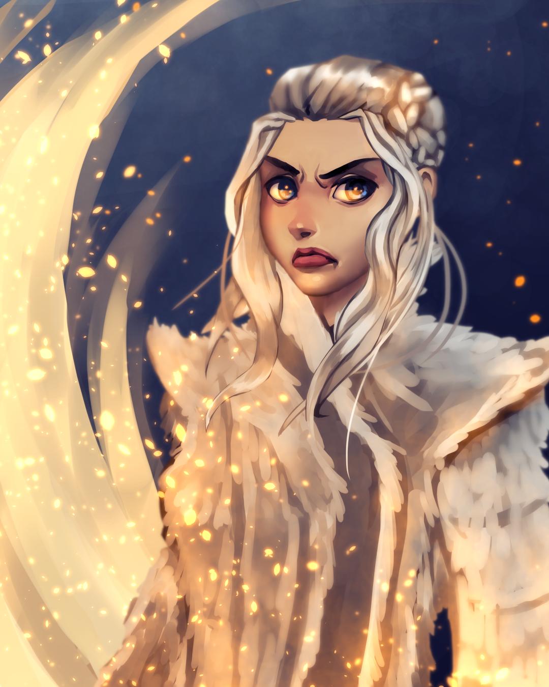 В этой вдохновляющей серии фотографий Дейенерис Таргарьен предстает как истинная королева с огненной волей и драконьей мощью. Художник мастерски передает ее трансформацию от беглянки до властительницы. Серебряные волосы, белые одежды и символ дракона стали иконическими элементами образа. Композиции показывают различные этапы ее пути - от моментов сомнения до триумфов победы. Эти фото напоминают о силе характера и цене лидерства в мире интриг и предательств.