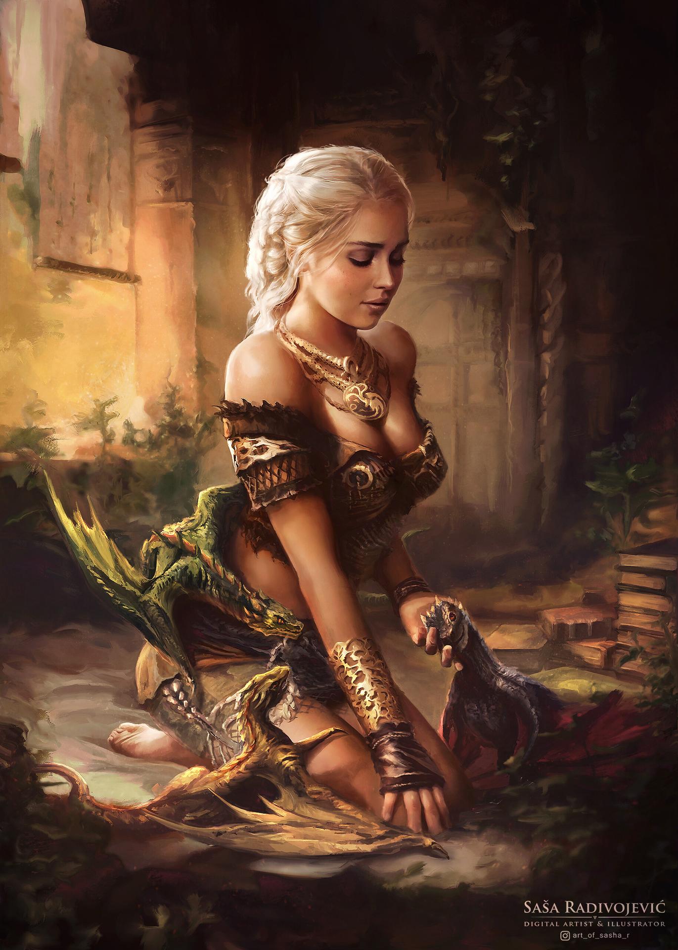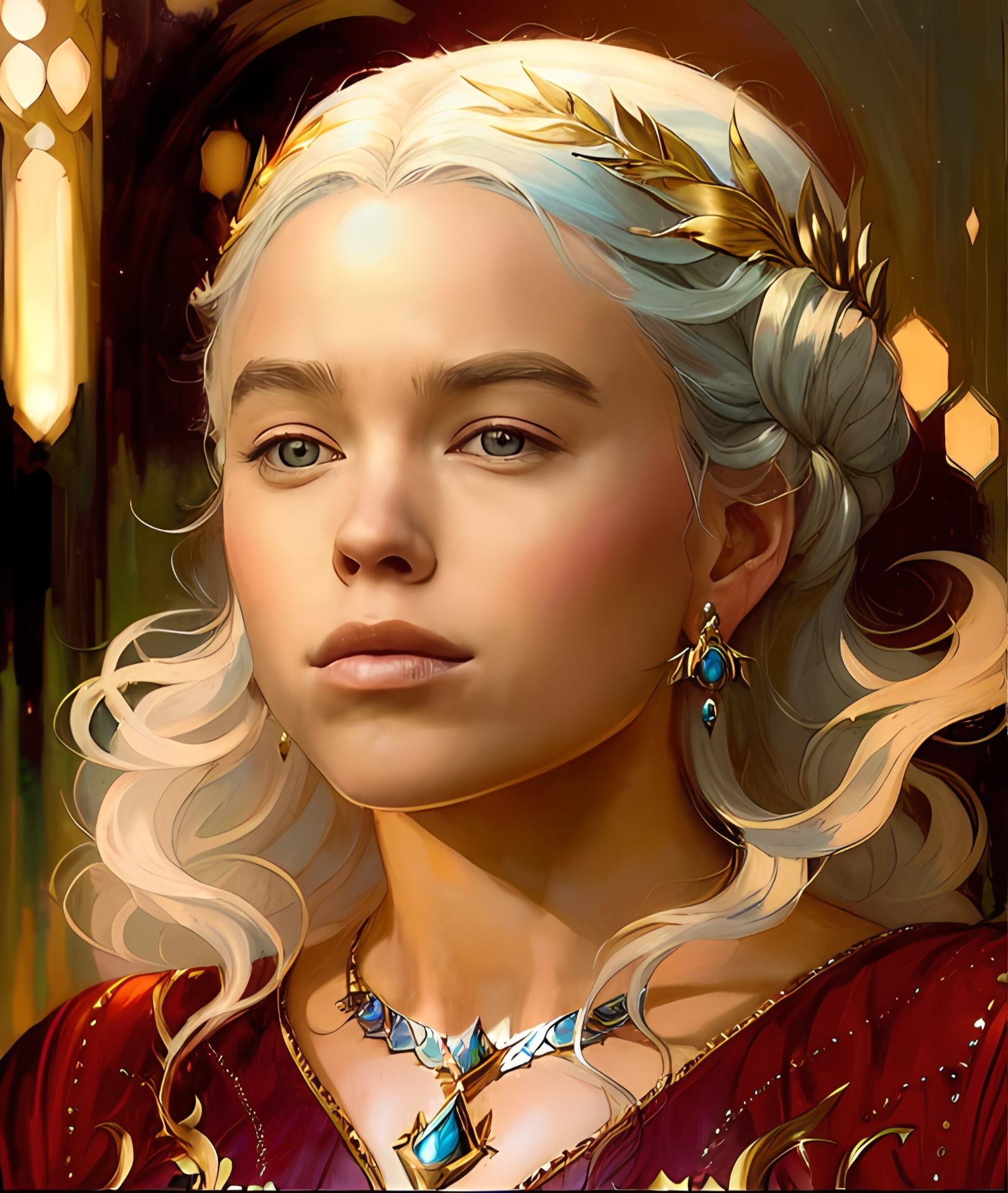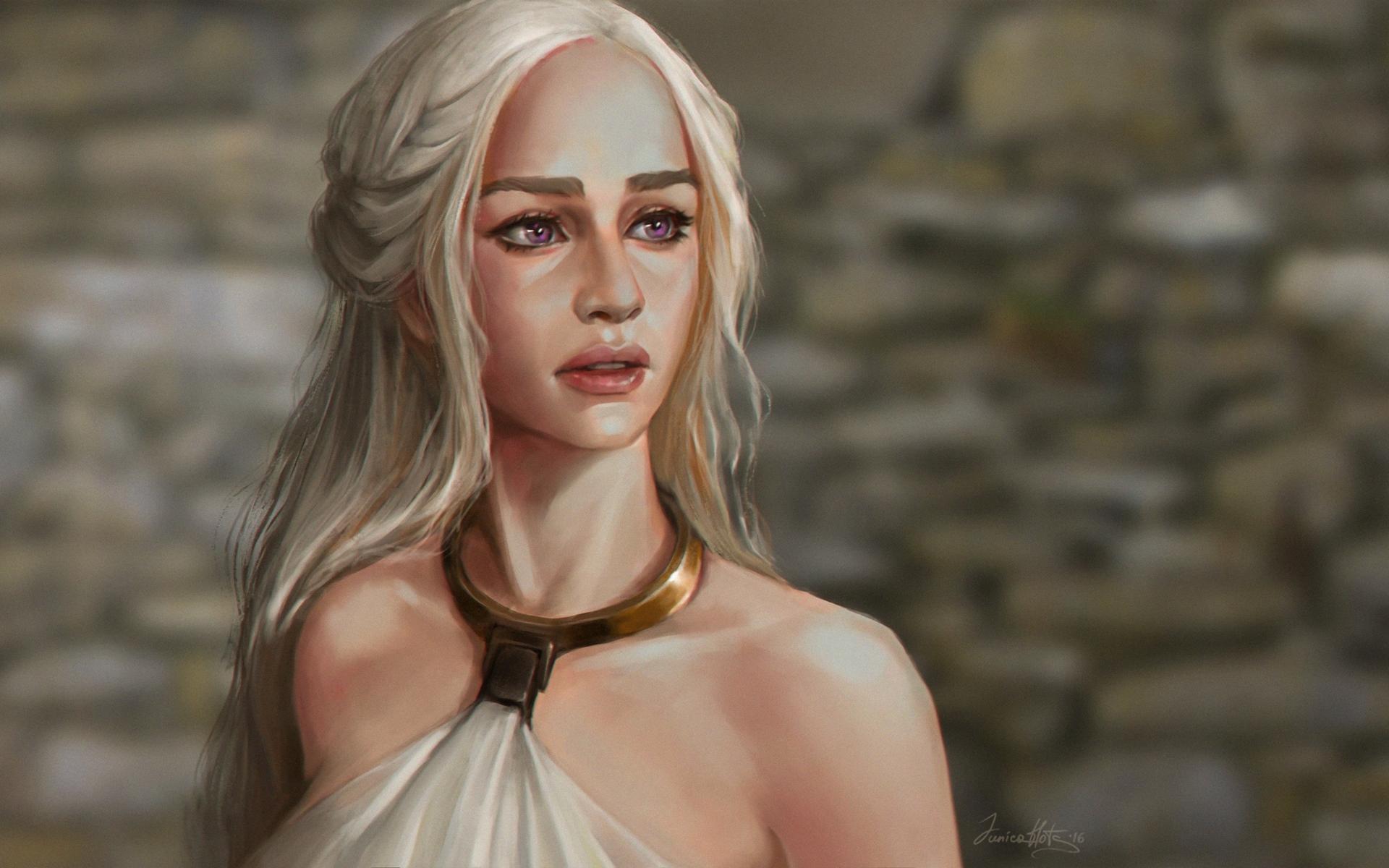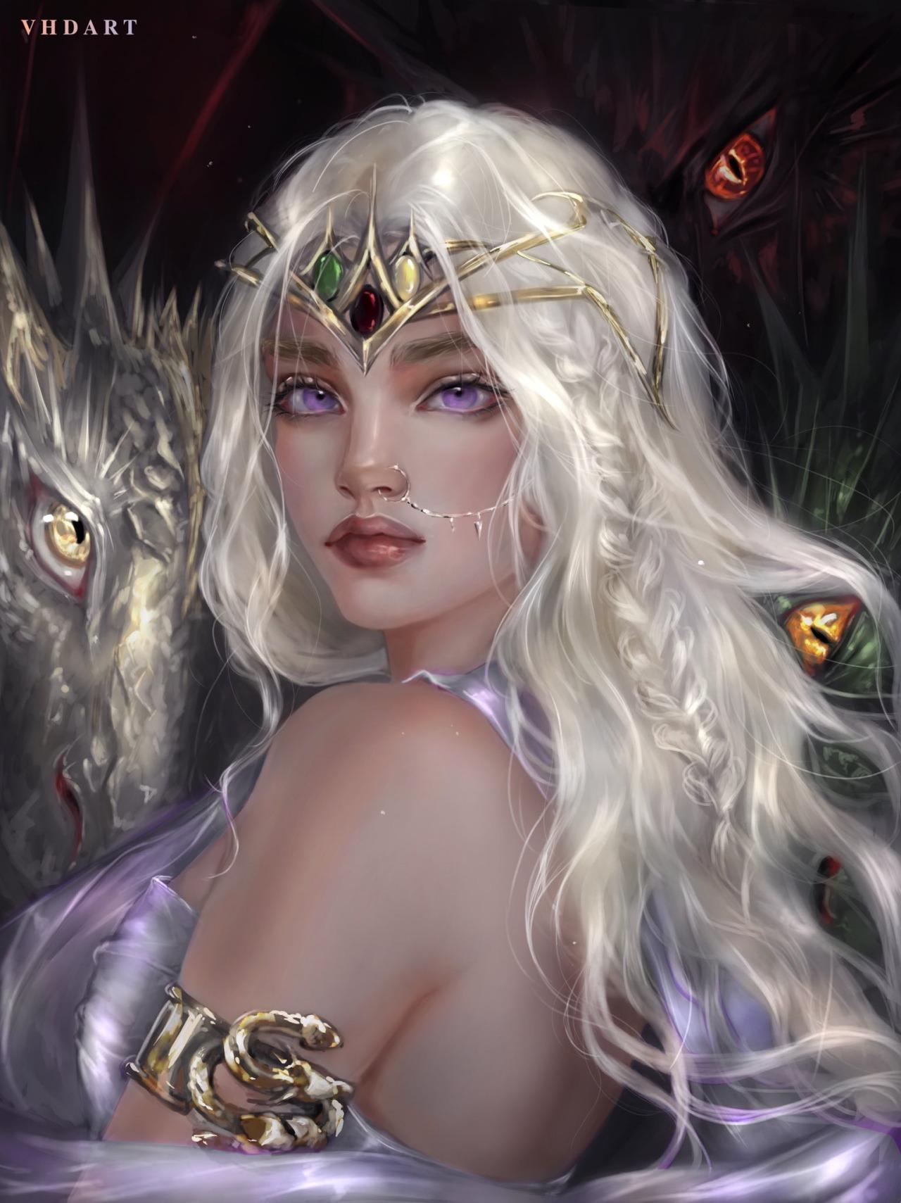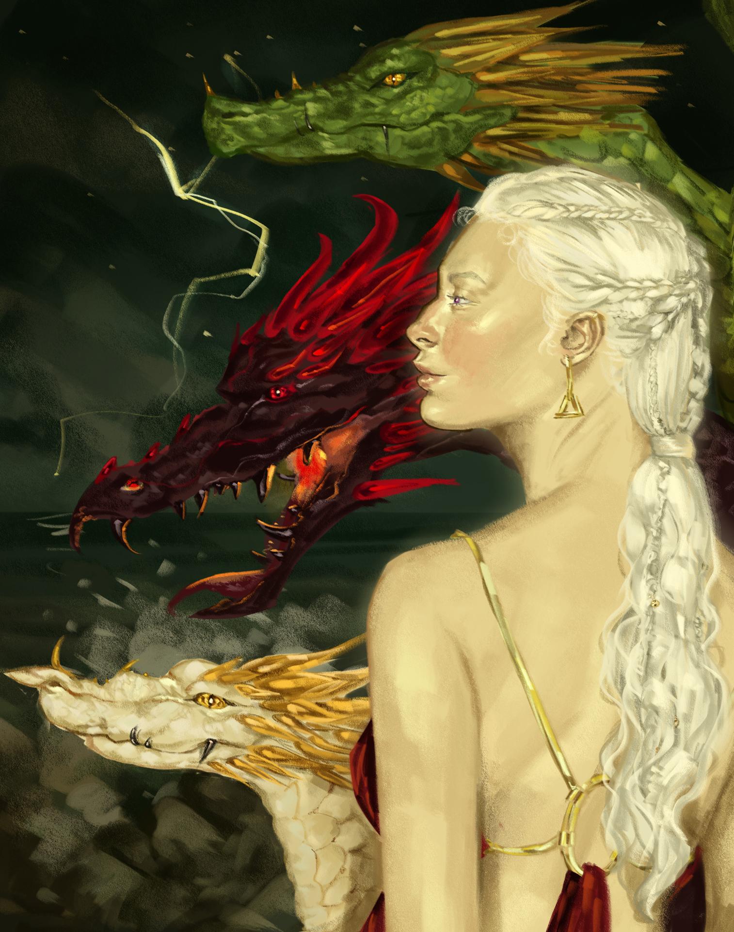 В этой вдохновляющей серии фотографий Дейенерис Таргарьен предстает как истинная королева с огненной волей и драконьей мощью. Художник мастерски передает ее трансформацию от беглянки до властительницы. Серебряные волосы, белые одежды и символ дракона стали иконическими элементами образа. Композиции показывают различные этапы ее пути - от моментов сомнения до триумфов победы. Эти фото напоминают о силе характера и цене лидерства в мире интриг и предательств.