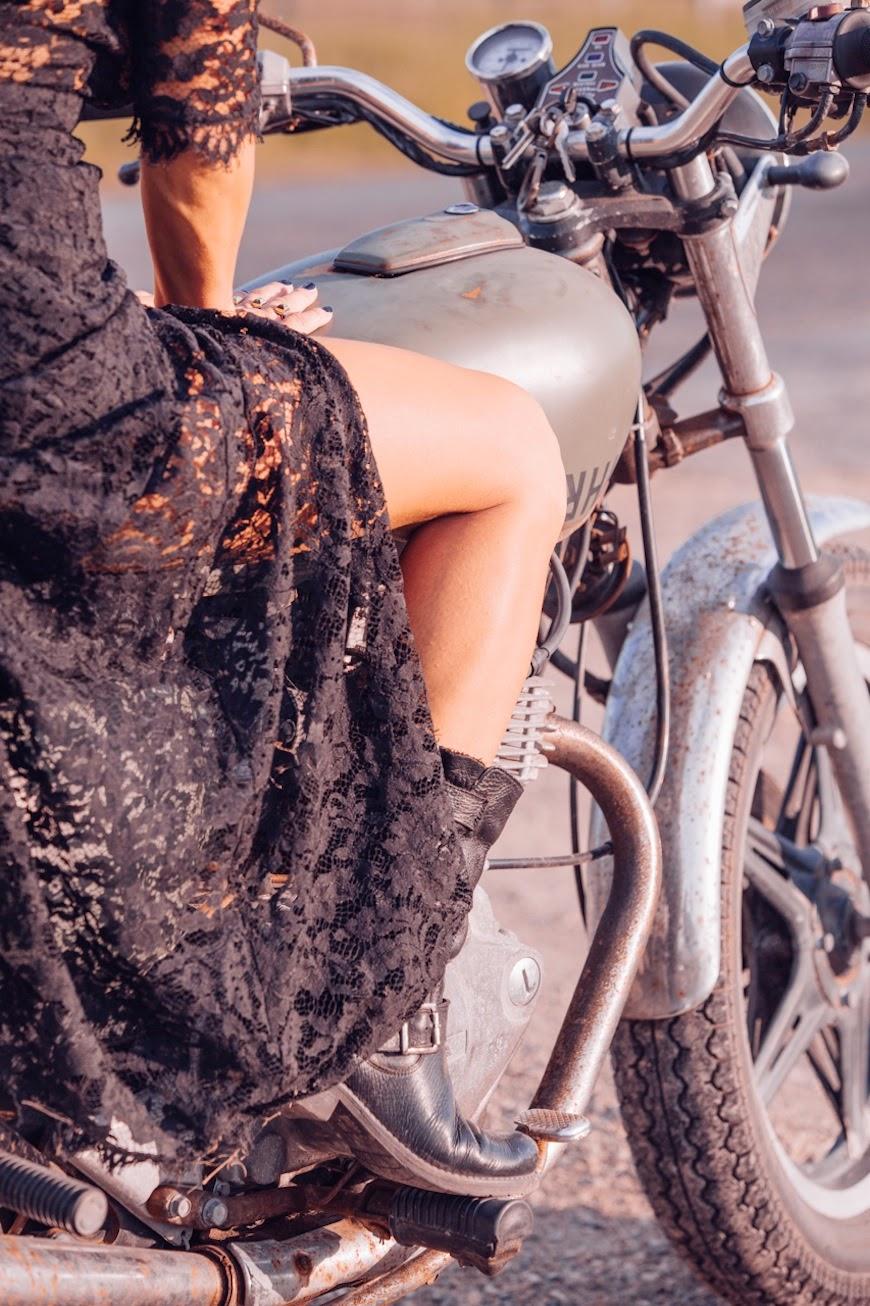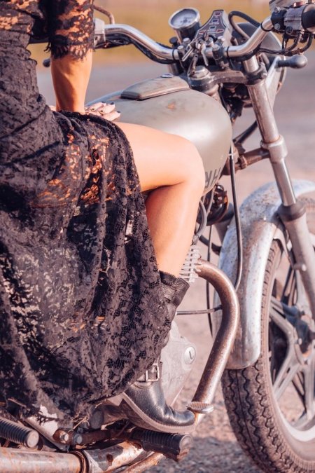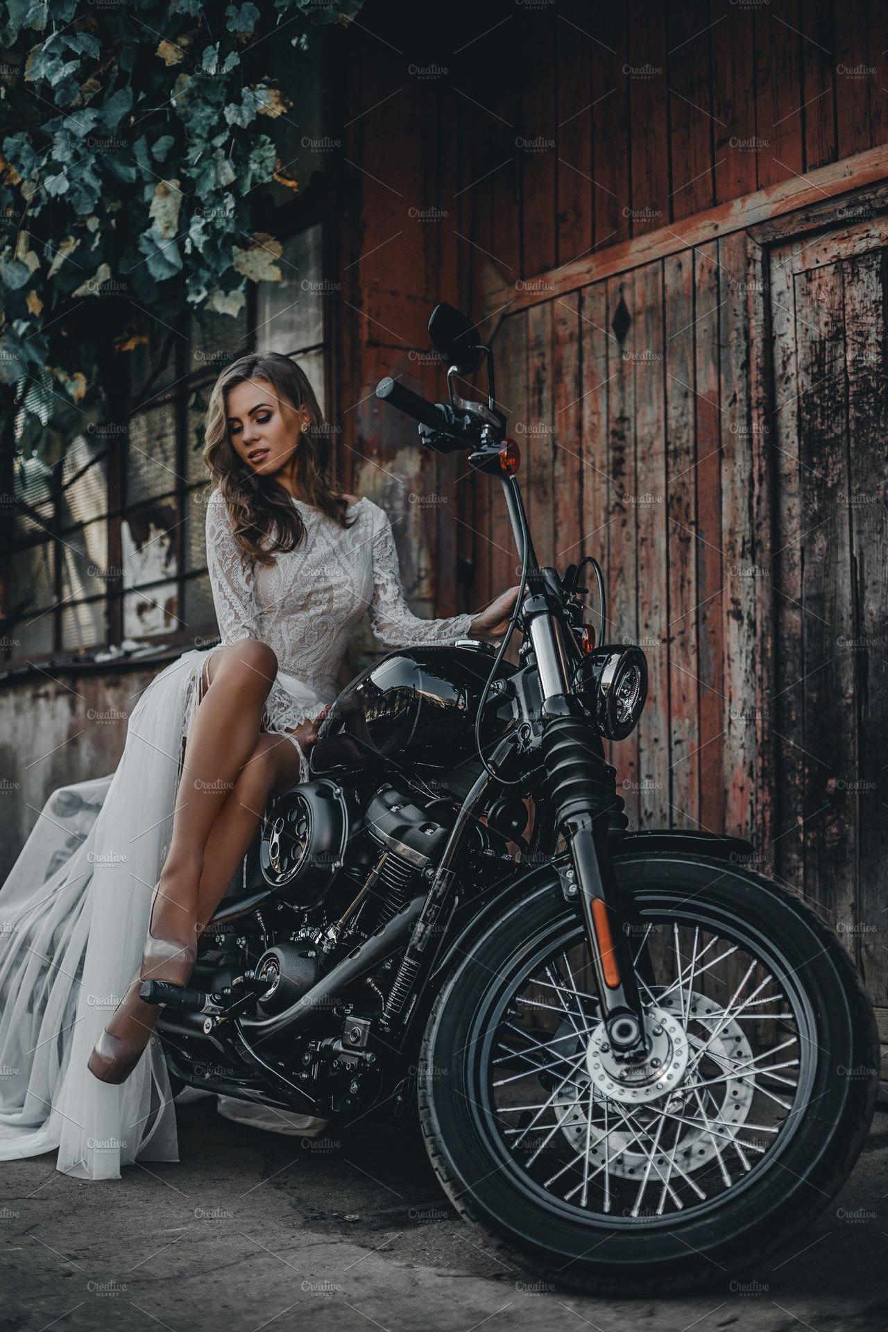 Девушки в платьях на мотоциклах воплощают сочетание романтики и бунтарства. Эти снимки показывают контраст нежных платьев и мощных машин. Фотографии сделаны в различных условиях: от городских улиц до трасс. Каждый концепт рассказывает о свободе и приключениях. Особое внимание уделяется взаимодействию между платьем и мотоциклом, создающим уникальный образ.