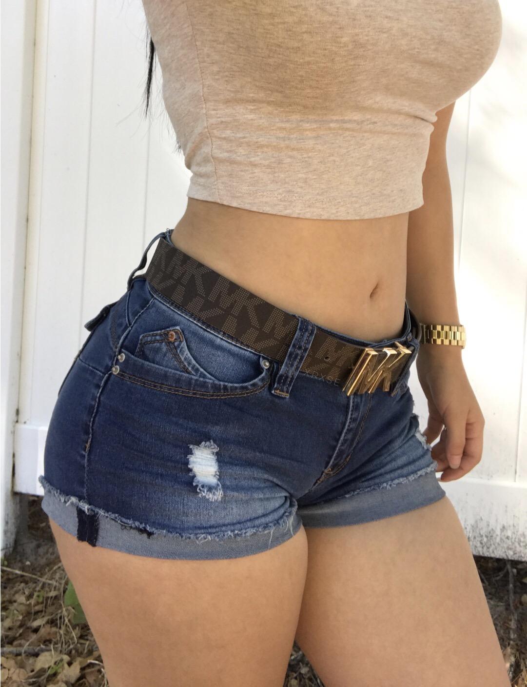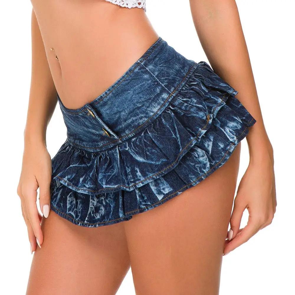 Девушки в джинсовых мини юбках