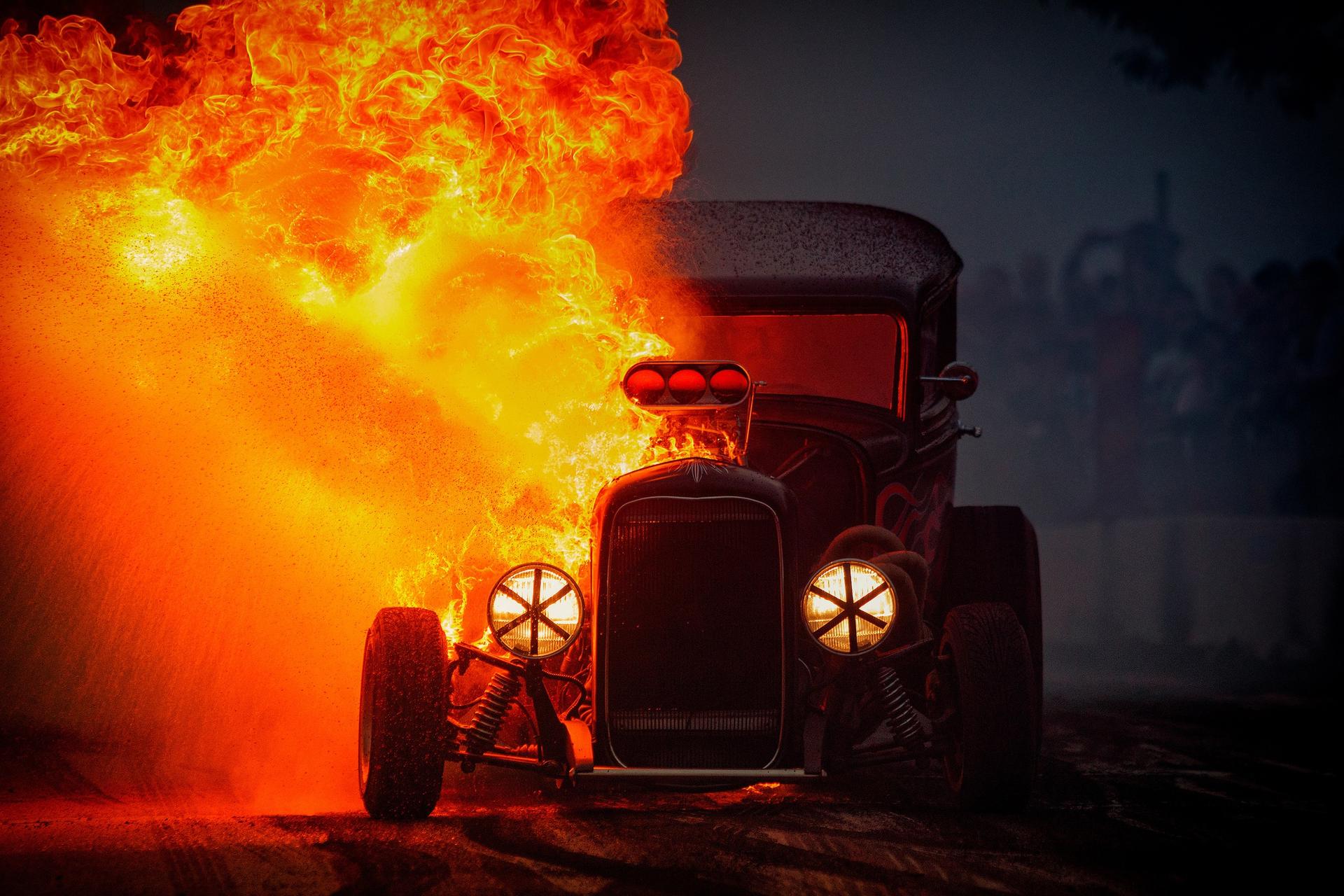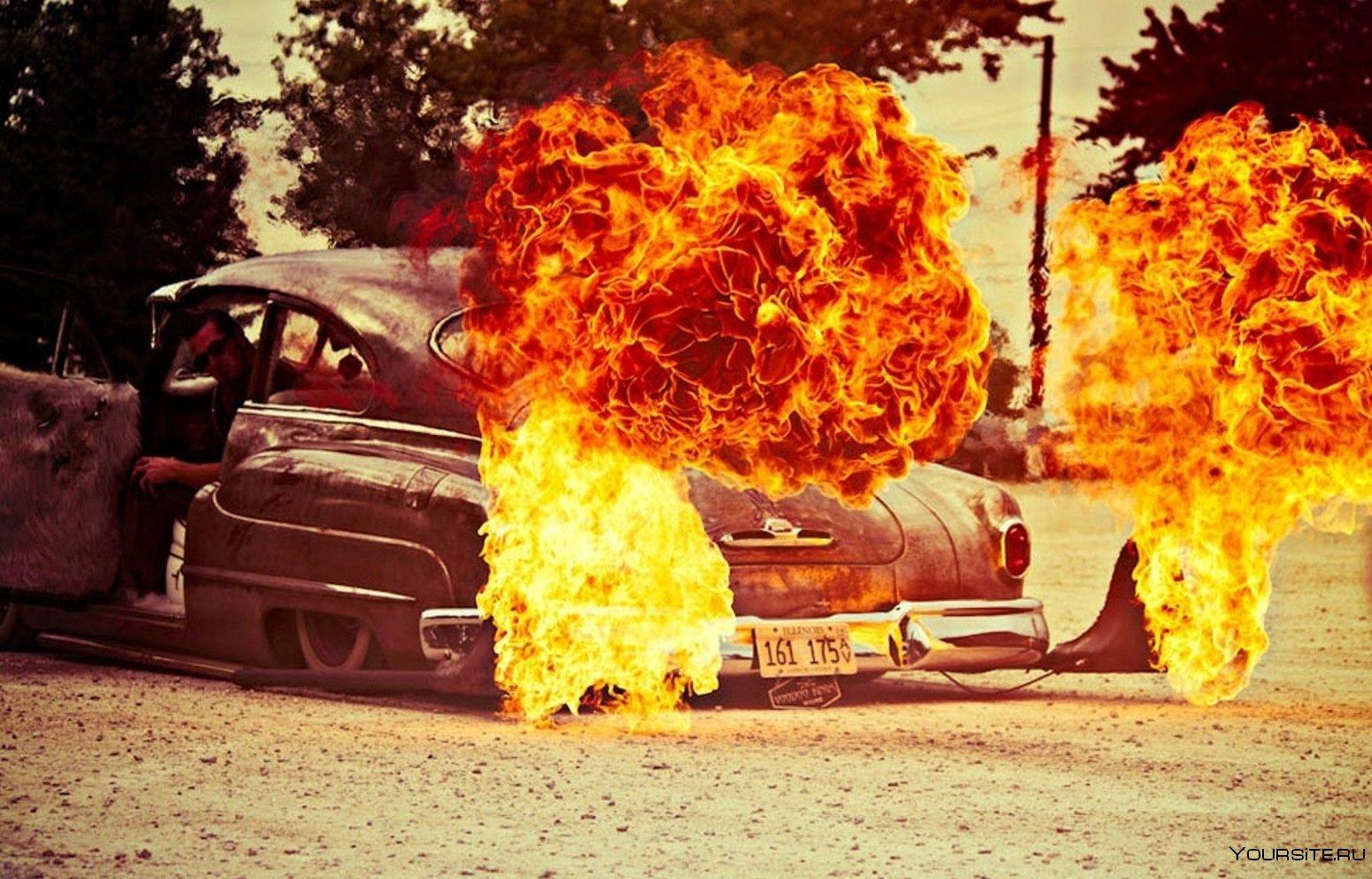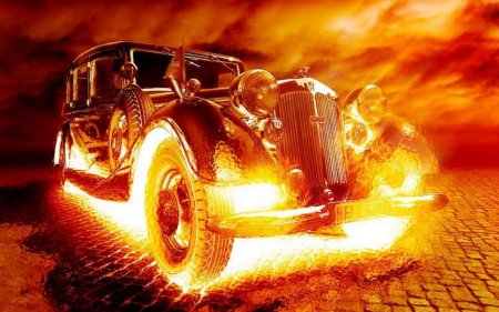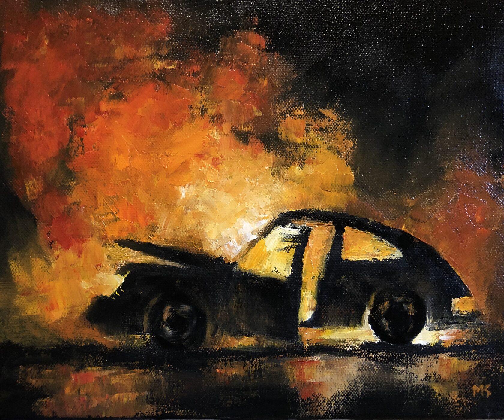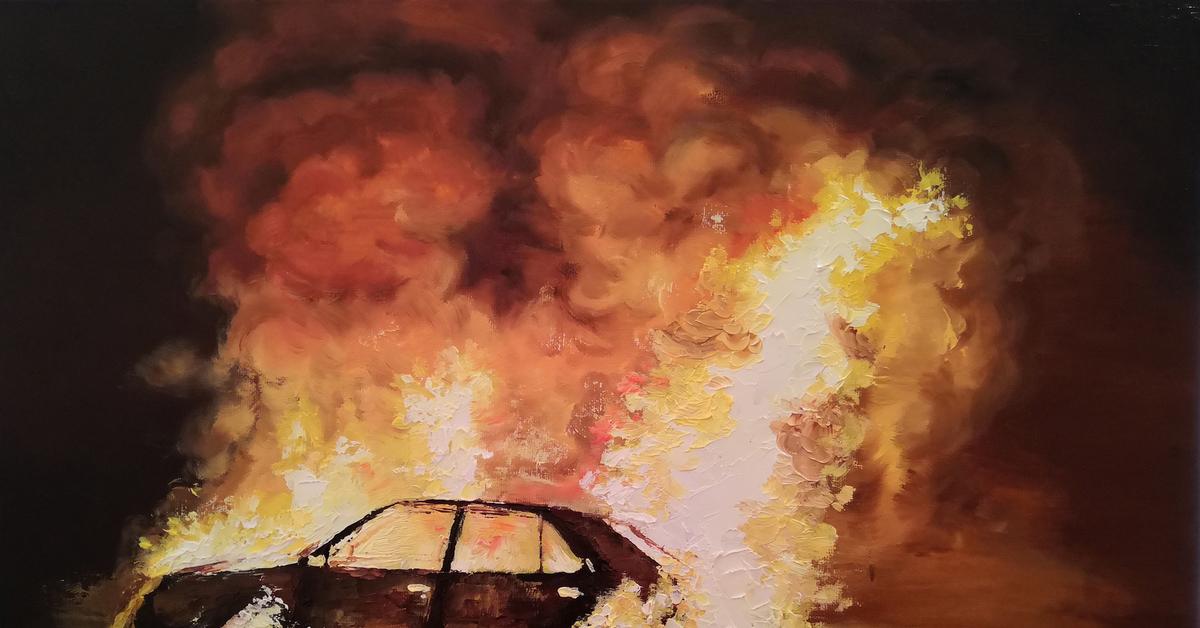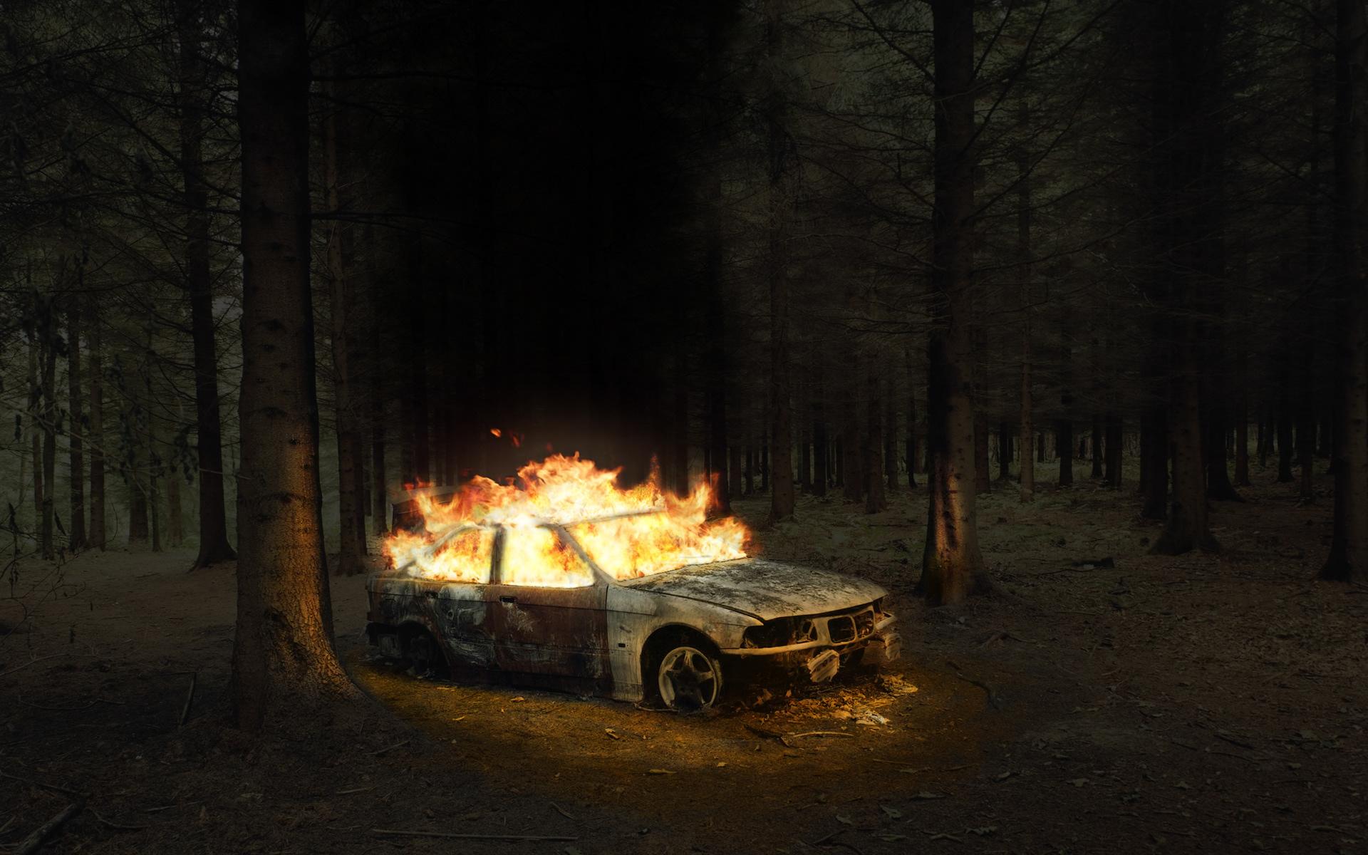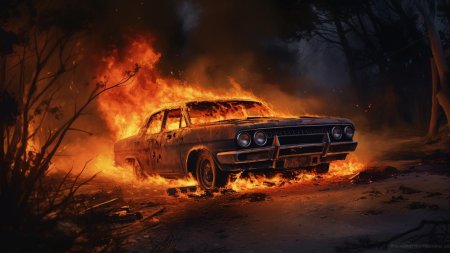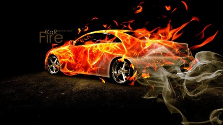 Горящая машина арт