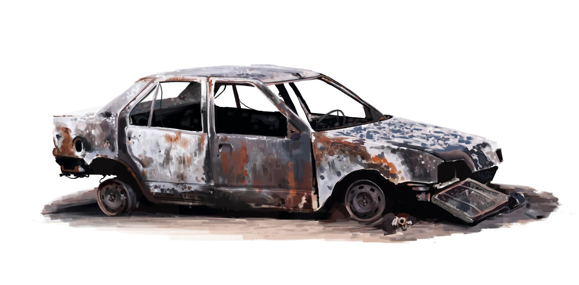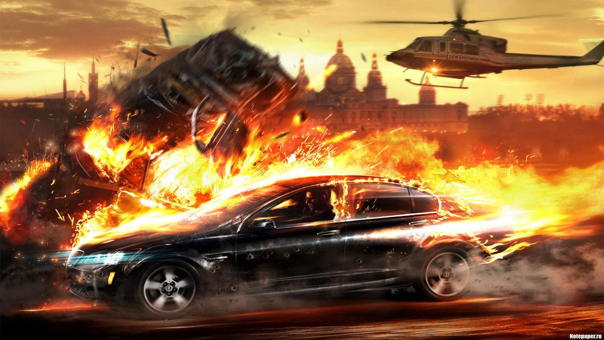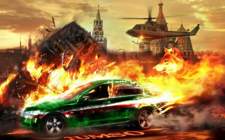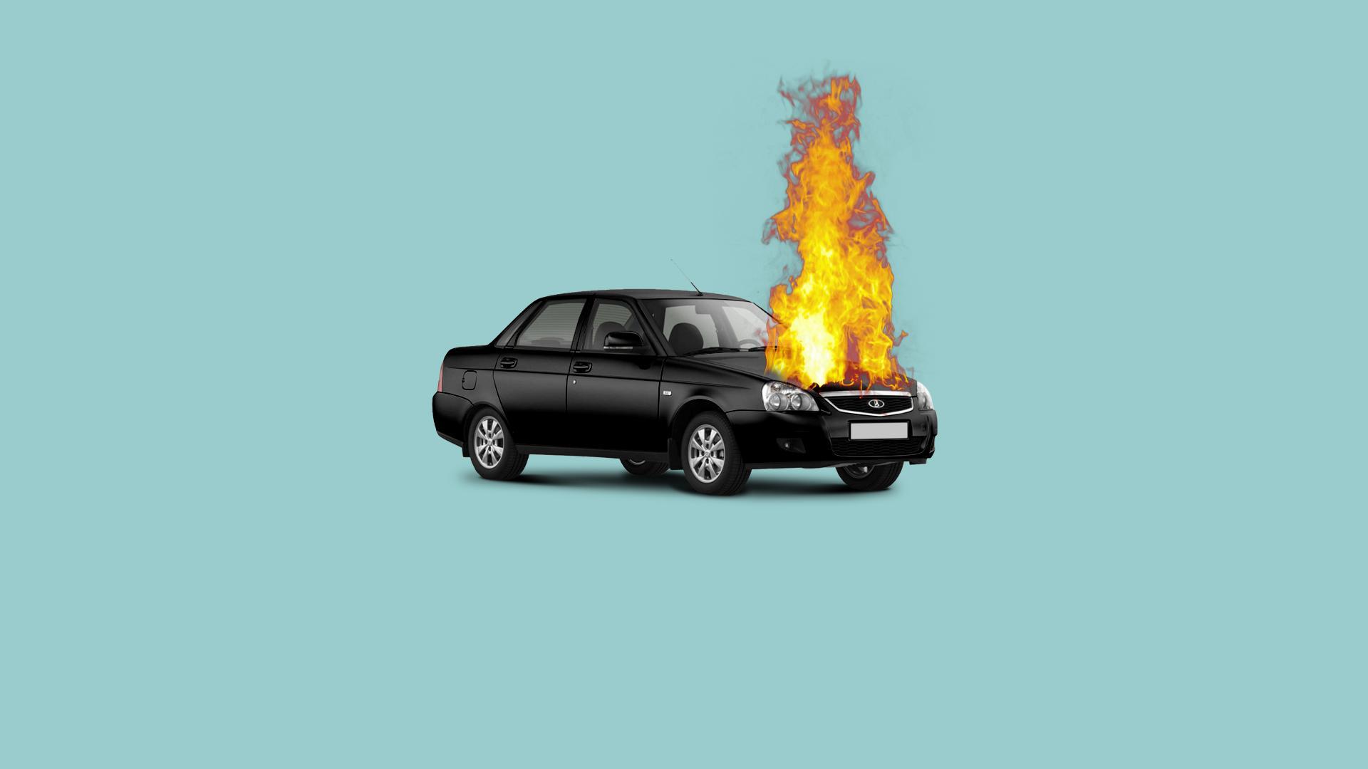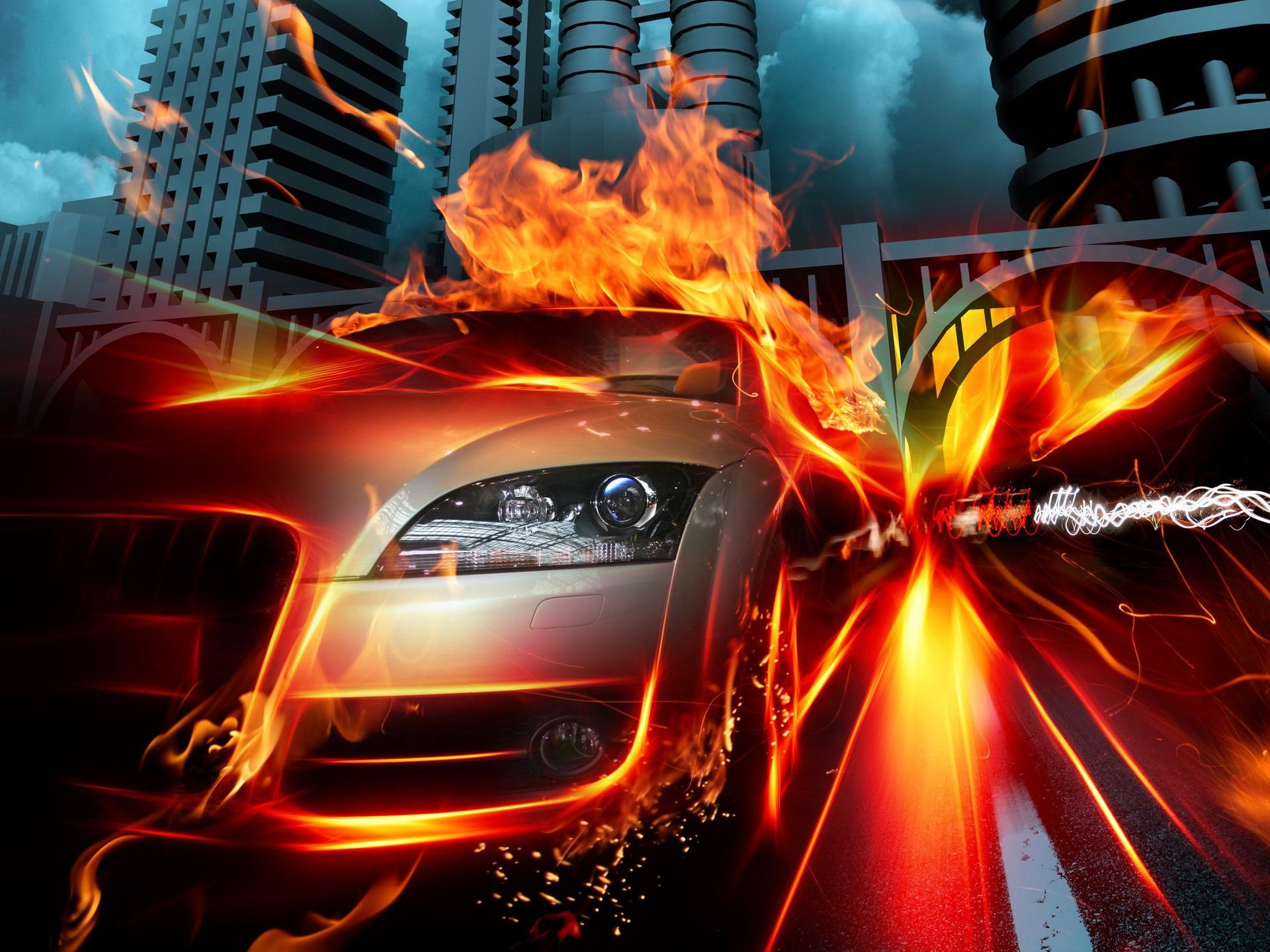 Горящая машина арт