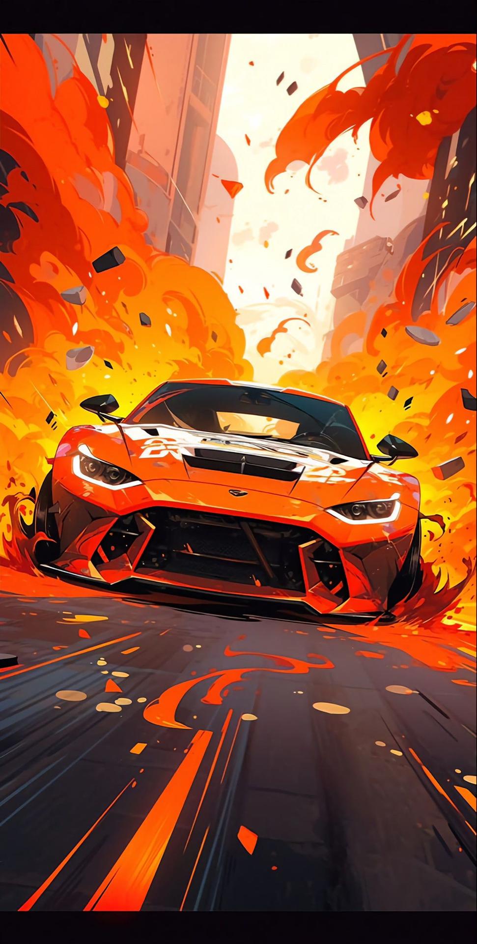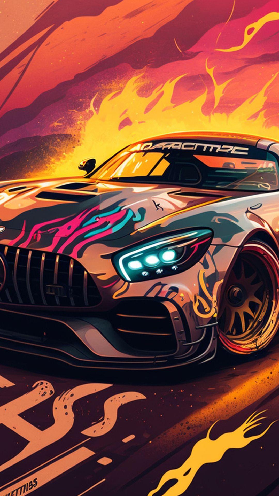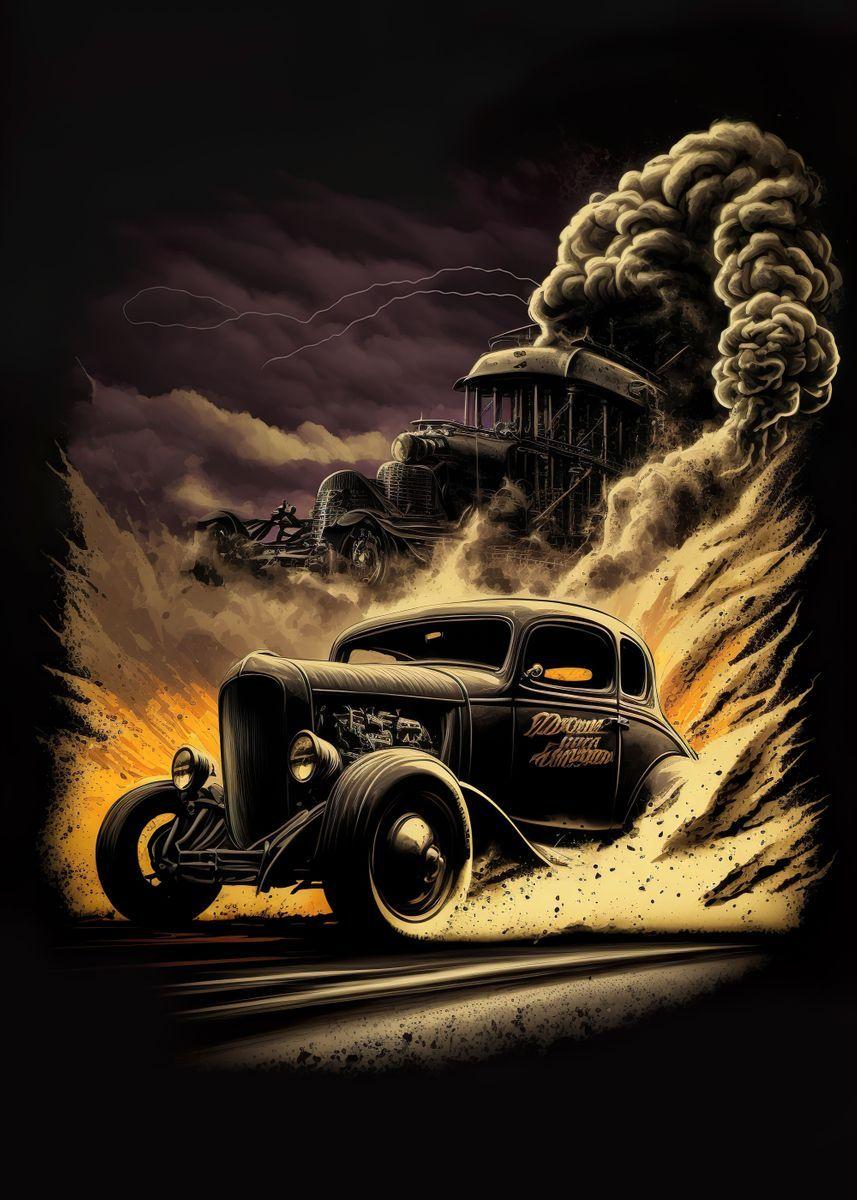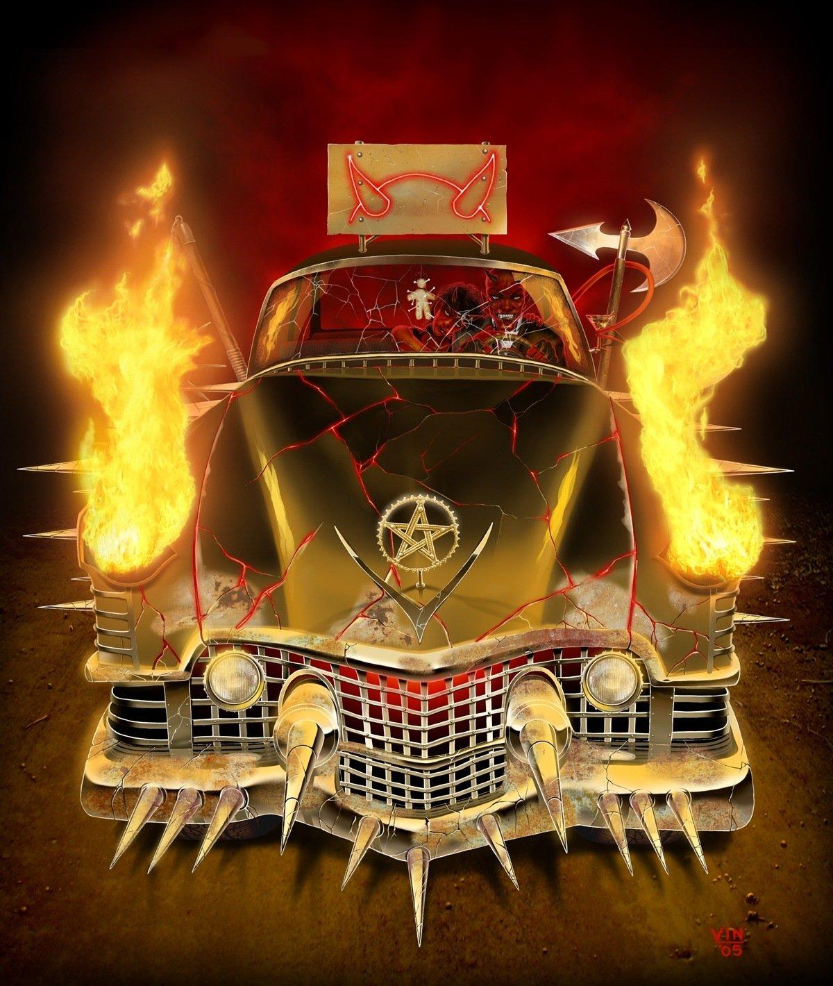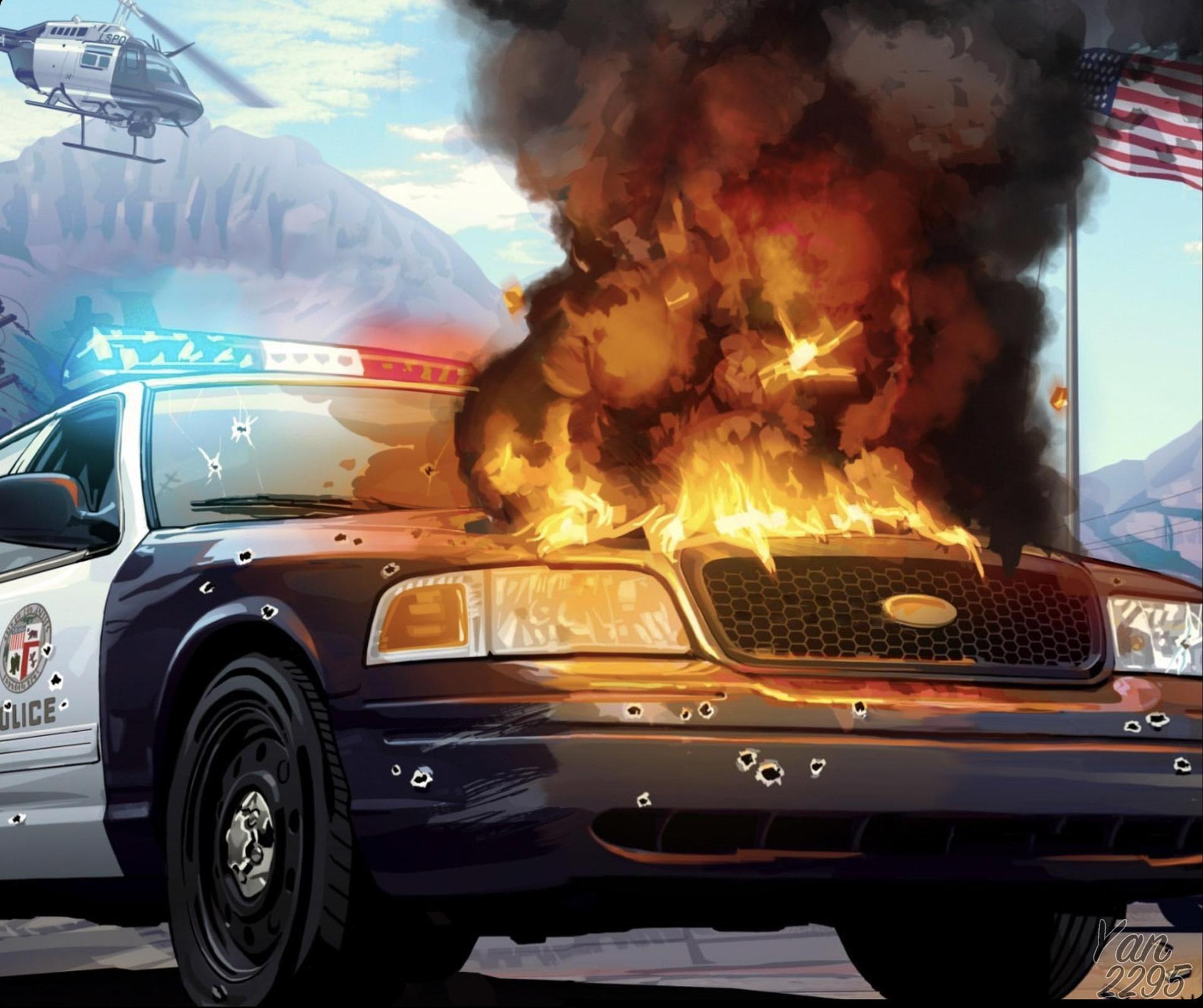 Горящая машина арт