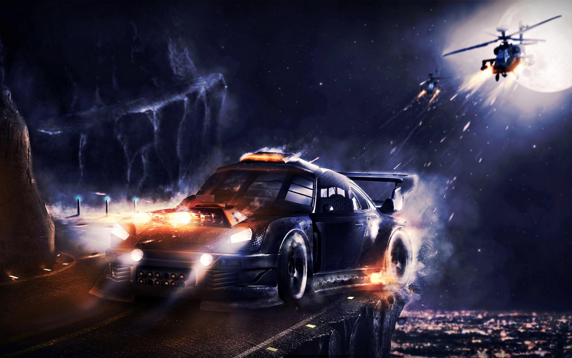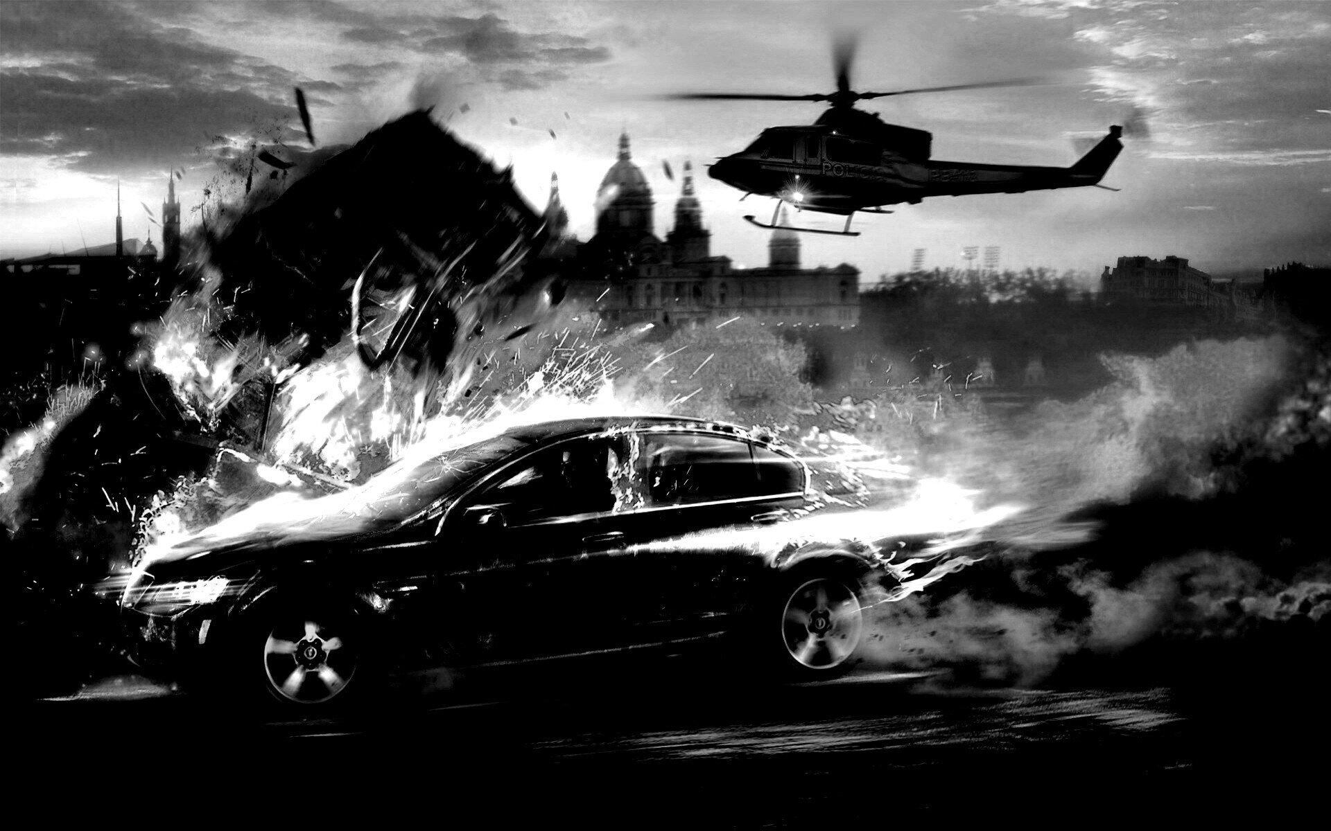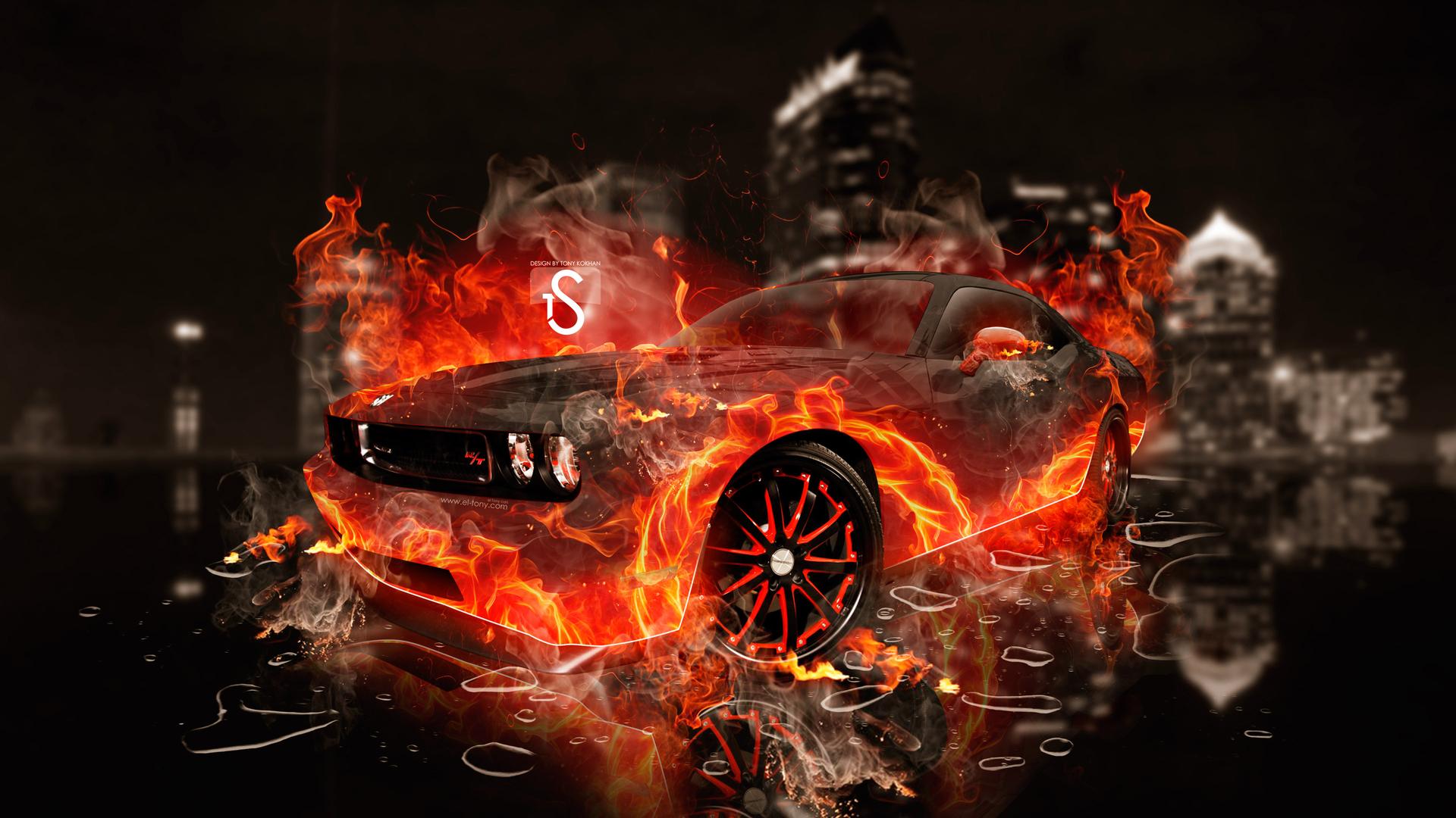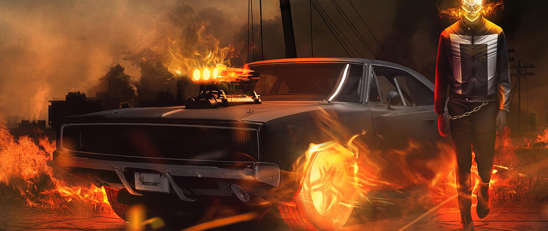 Горящая машина арт