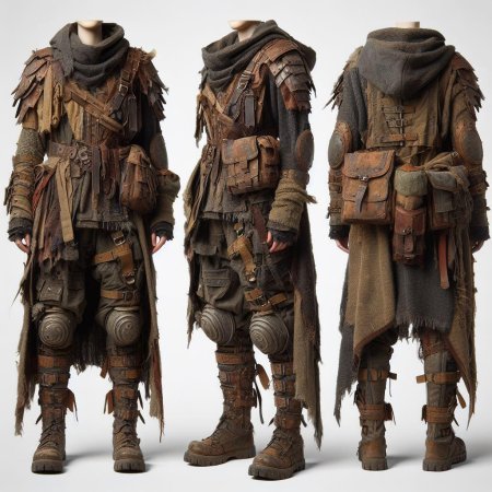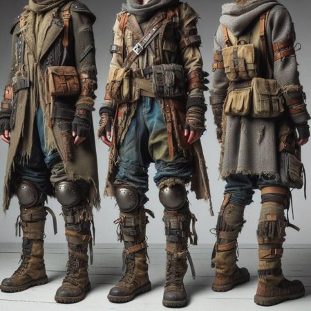 Практичные иллюстрации одежды постапокалипсиса отражают темы выживания и адаптации в разрушенном мире в этой футуристической коллекции. Художники создают образы, где функциональность сочетается с эстетикой выживания. Коллекция включает различные стили: от импровизированной одежды до продвинутых прототипов. Каждая картинка рассказывает свою историю о человеческой изобретательности, социальной стратификации, поиске идентичности. Особый акцент на материалах, конструкции, цветовом решении. Работы выполнены техниками от концепт-арта до реалистичных изображений, создавая убедительные видения постапокалиптического быта. Темы ресурсоограниченности, модификации, человеческой адаптивности пронизывают каждую композицию.
