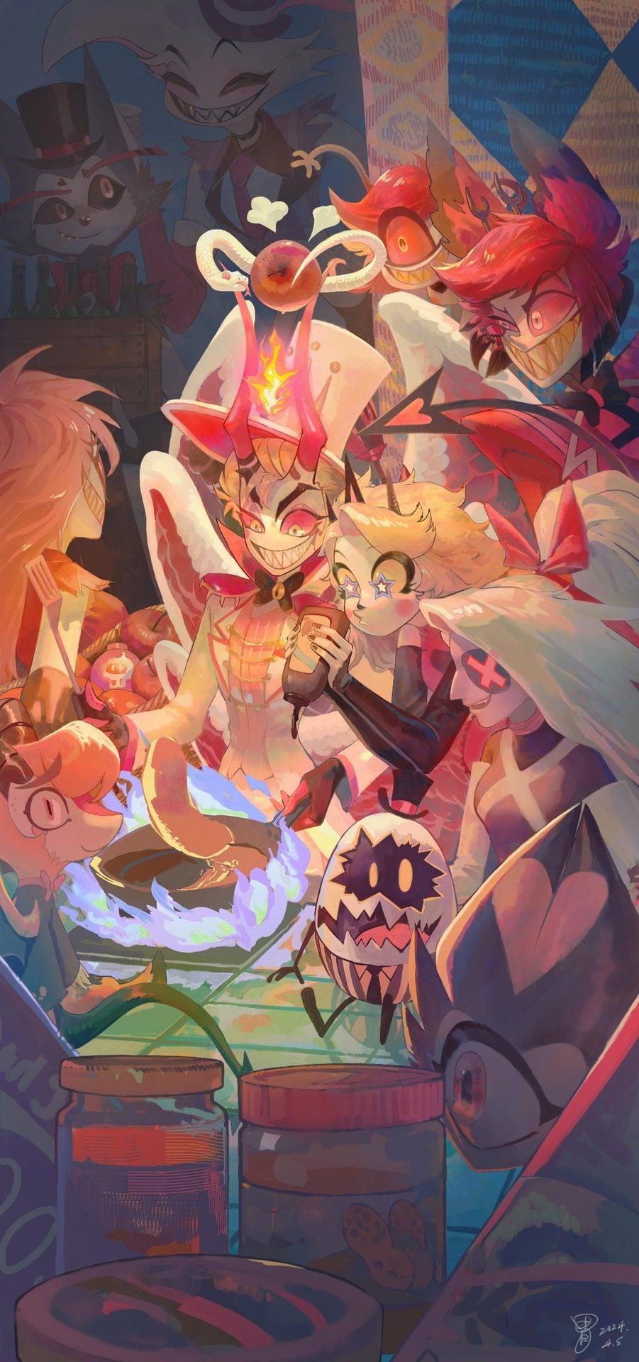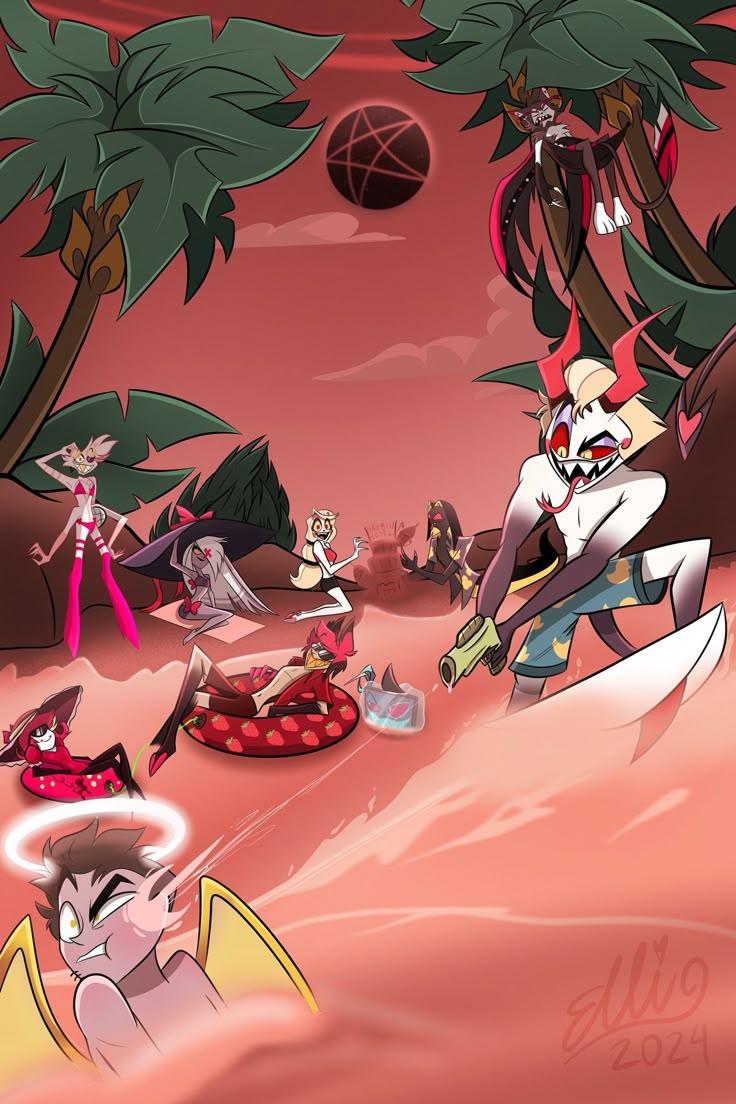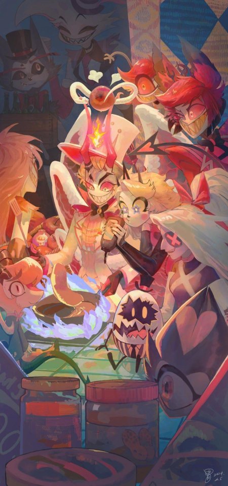 Отель Хазбин - место, где ад встречается с надеждой на искупление, а демоны пытаются найти свой путь к свету. В этой серии иллюстраций мы видим не просто гостиницу, а настоящий персонаж: вот фасад отеля с неоновой вывеской, его архитектура сочетает арт-деко с адскими элементами, вот внутренние помещения с роскошной мебелью и демоническими гостями, а вот сцены с Аластором, который одновременно хозяин и самый загадочный постоялец. Художники создают атмосферу сюрреализма - от элегантных люстр до барных стоек, от танцевальных залов до личных номеров. Каждая композиция несет идею искупления: от историй гостей с их грехами и надеждами до атмосферы, где порок соседствует с добродетелью. Это искусство, которое не просто показывает локацию, а исследует темы морали, искупления и той грани между добром и злом, которая так тонка в мире демонов.