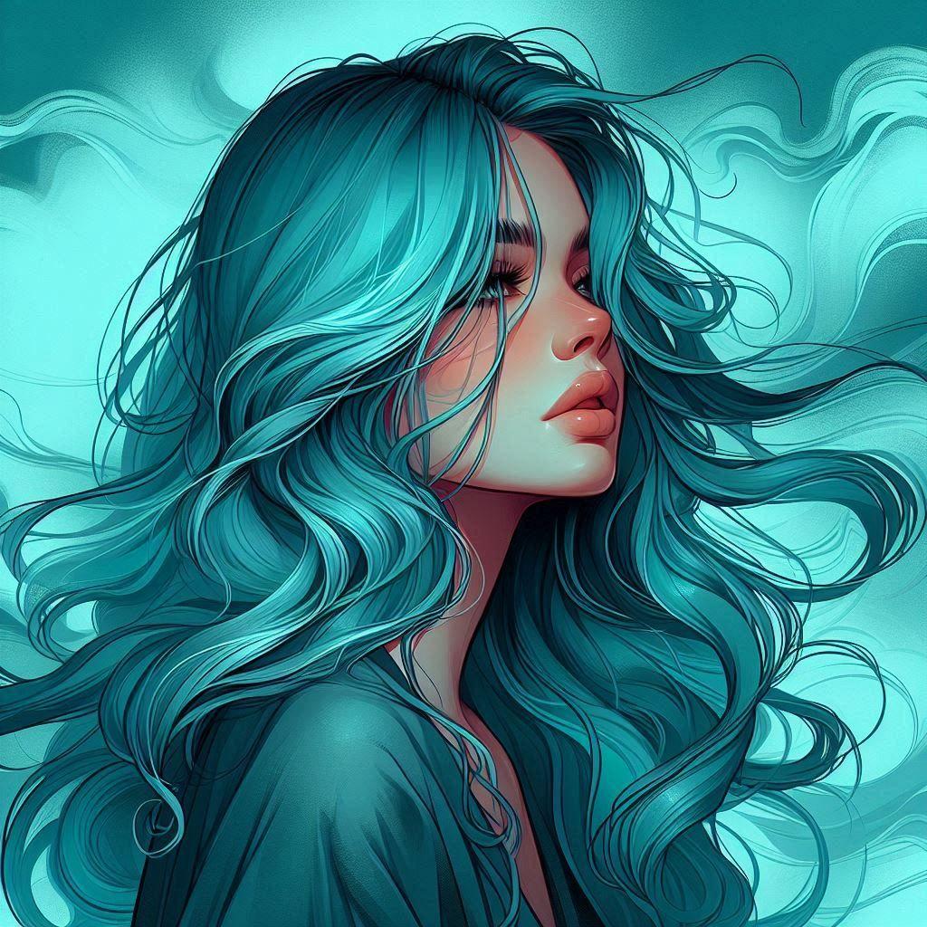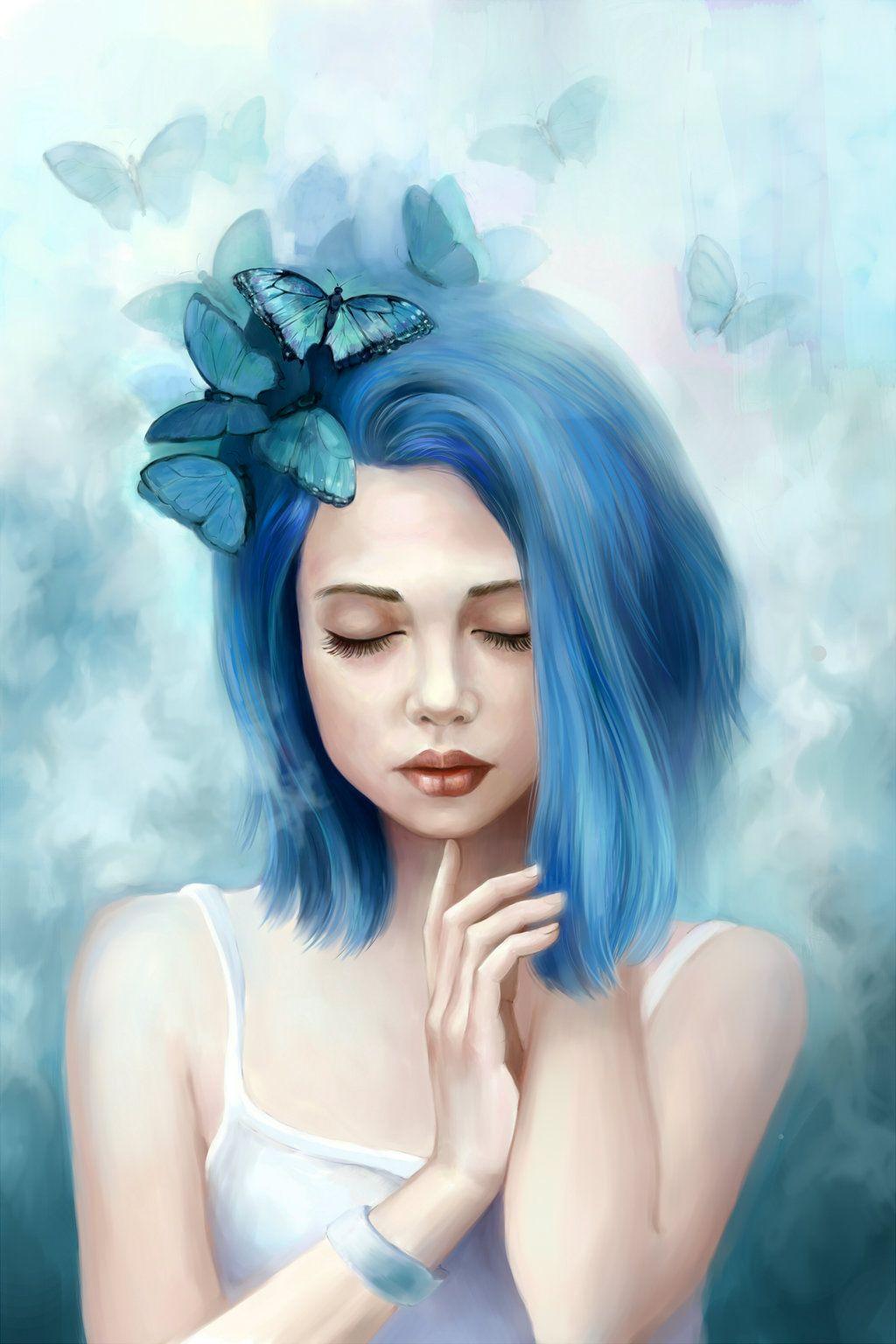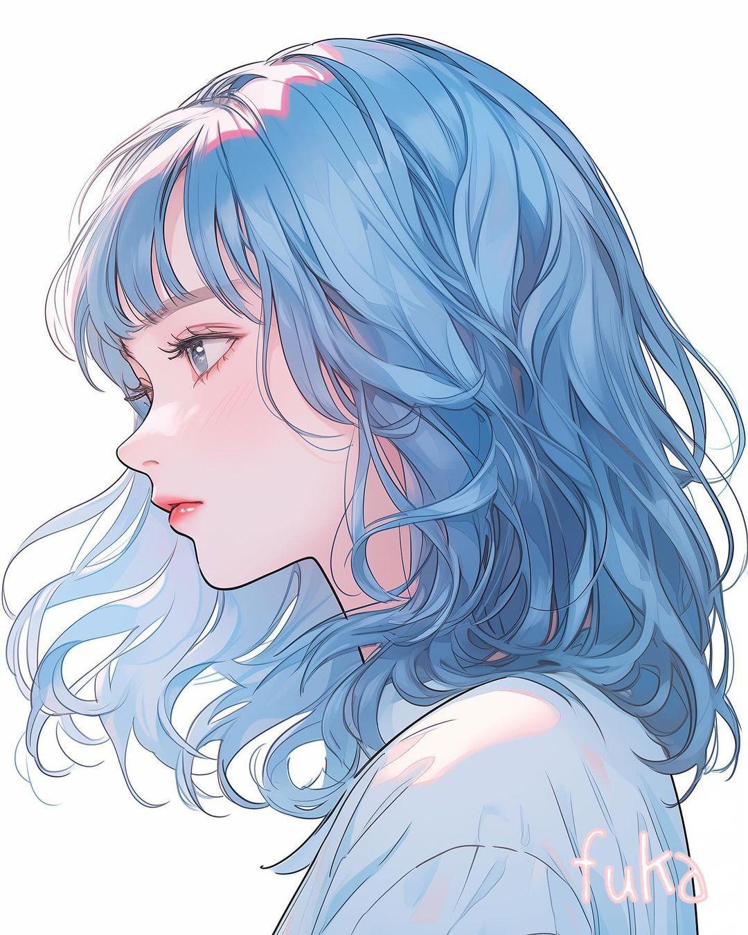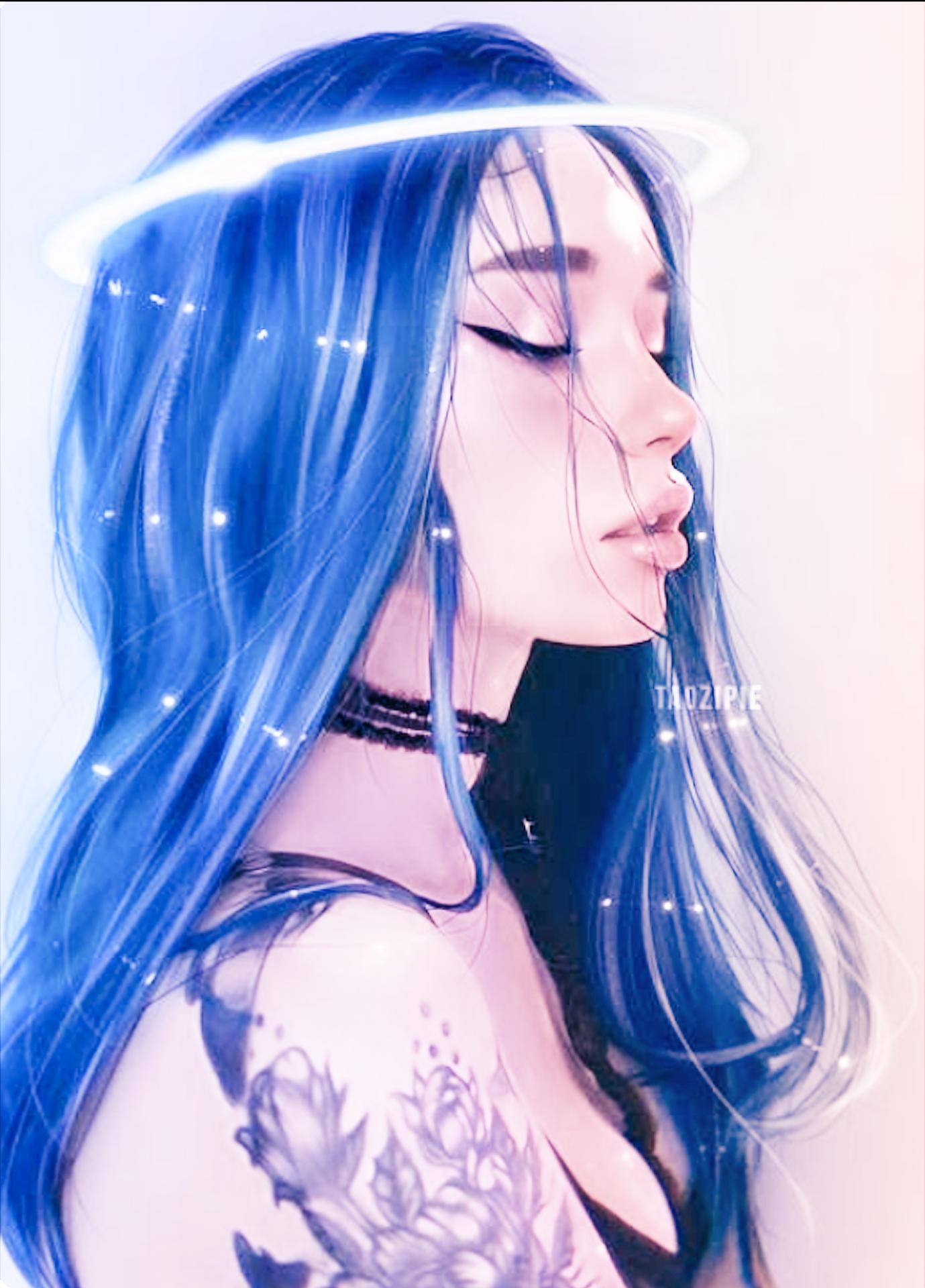 Голубые волосы арт