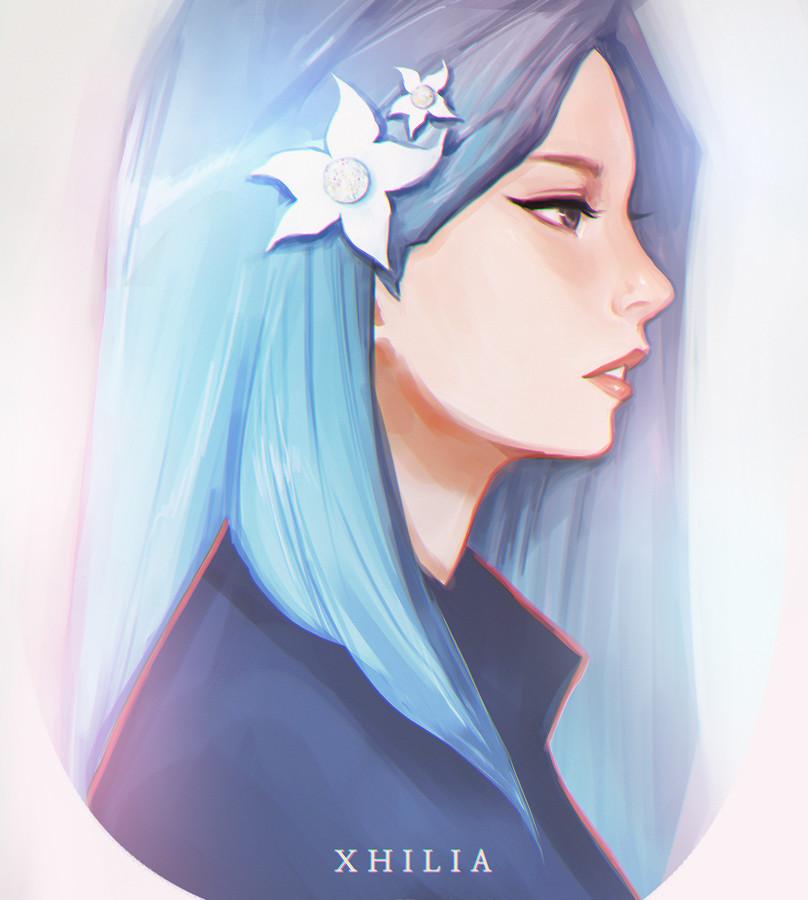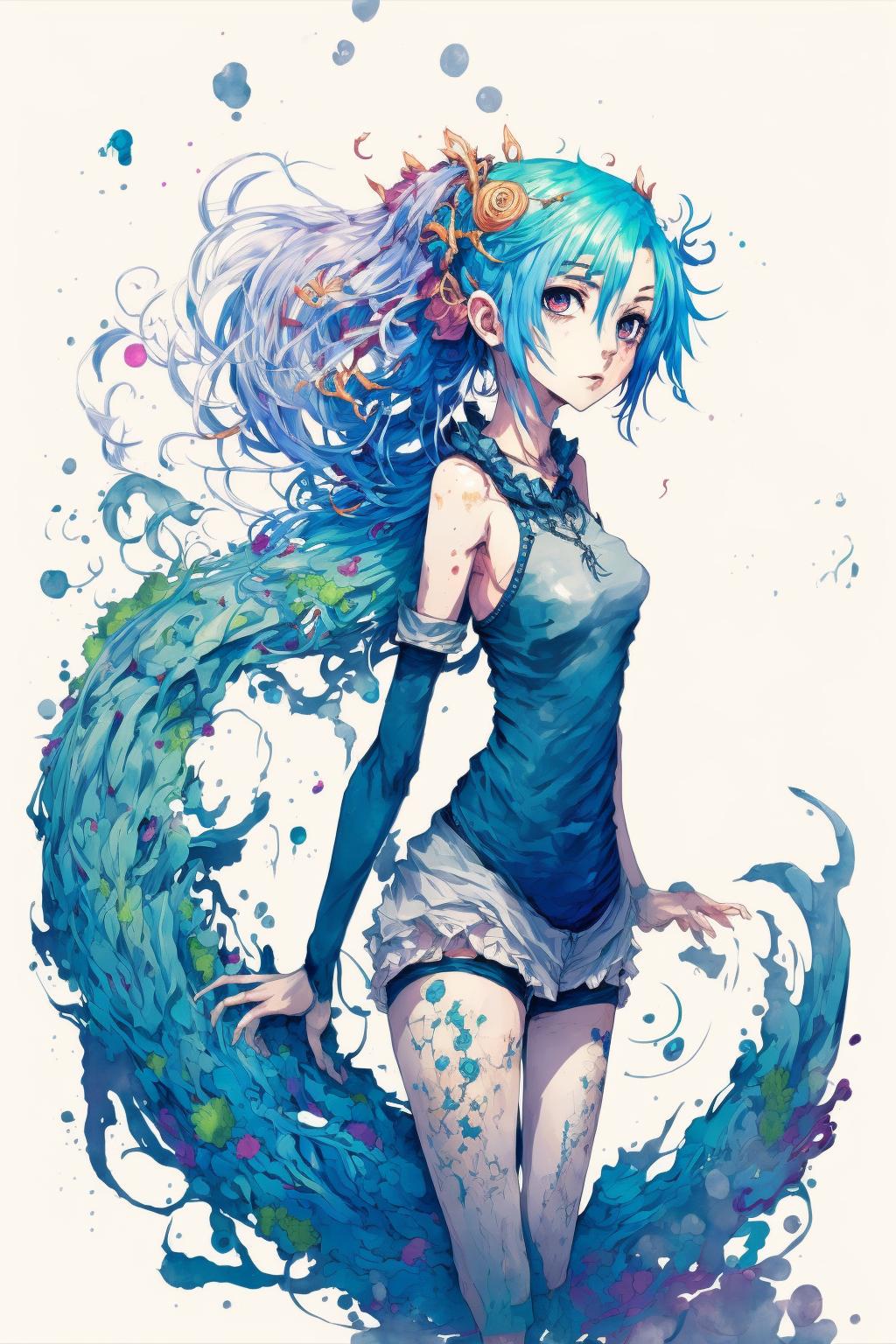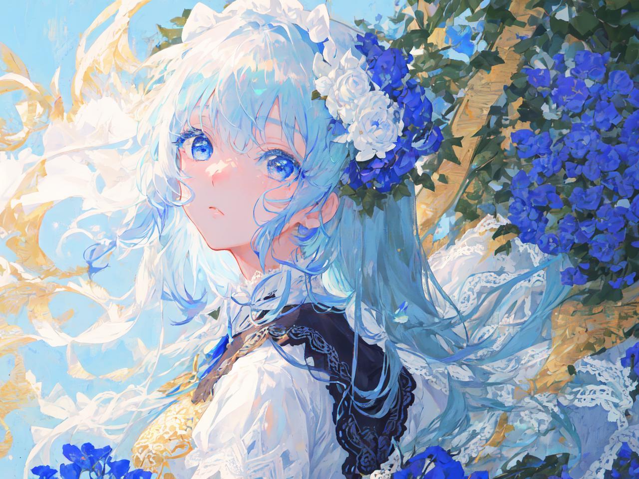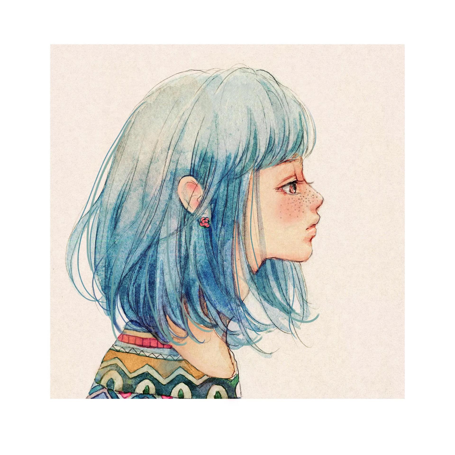 Голубые волосы арт