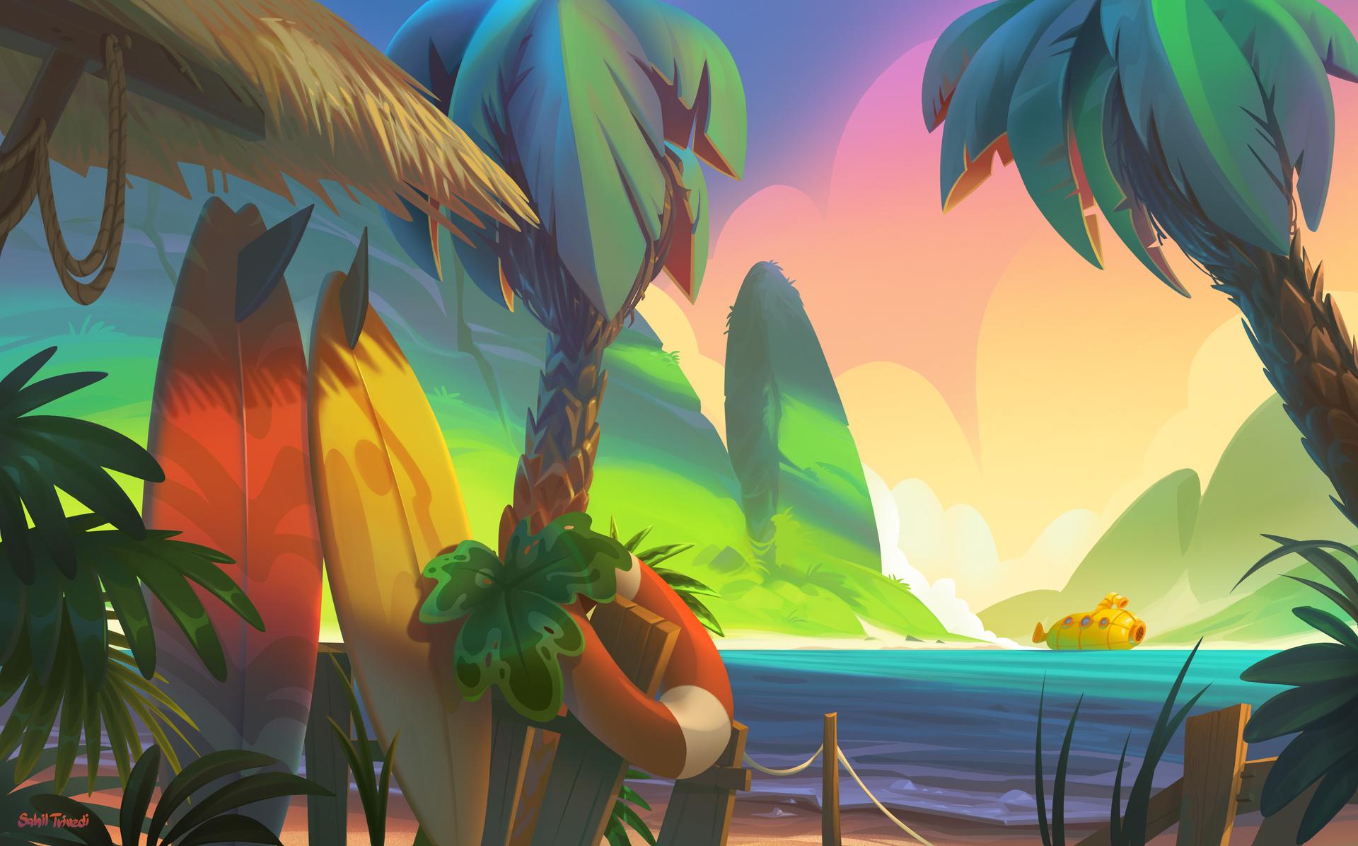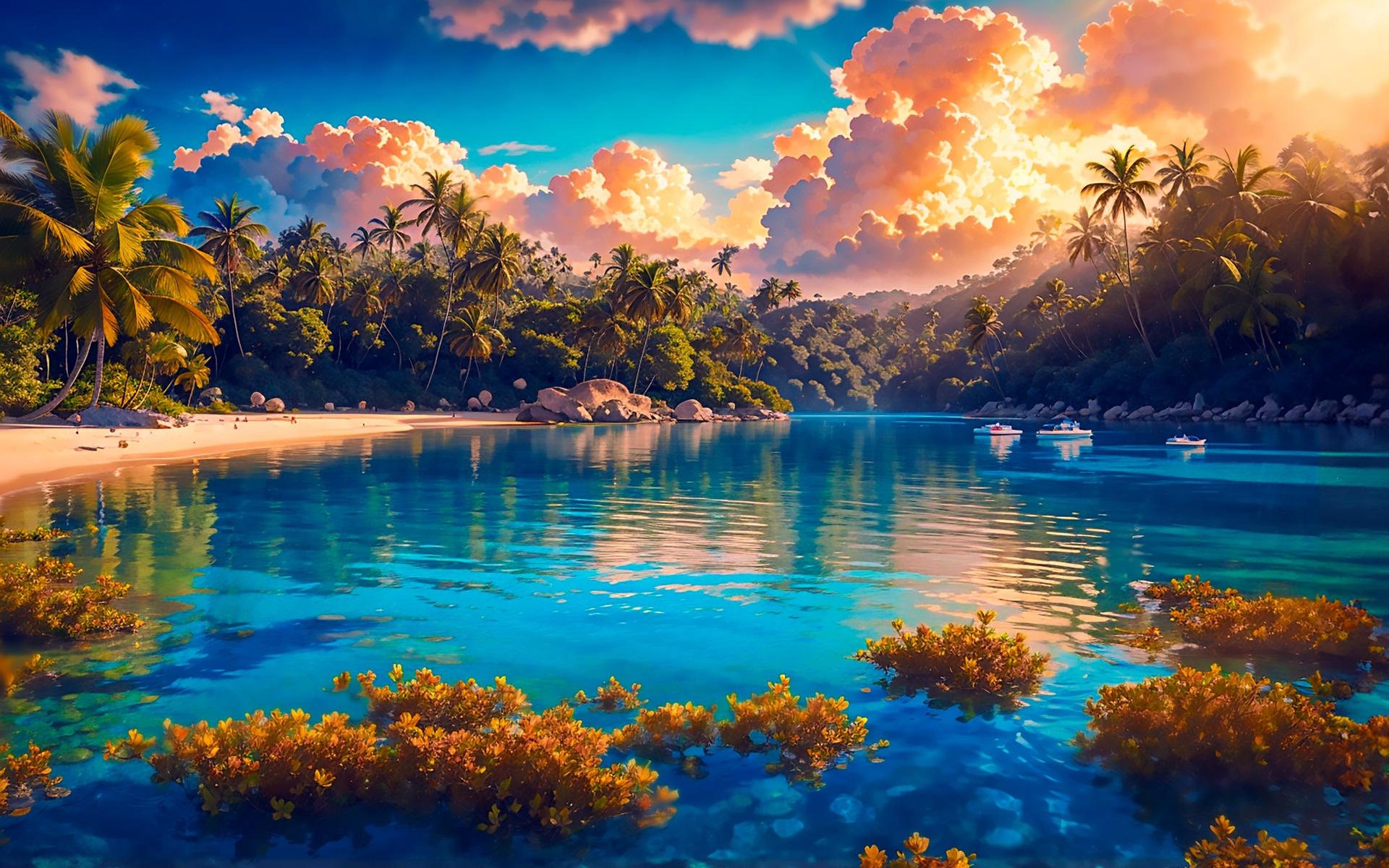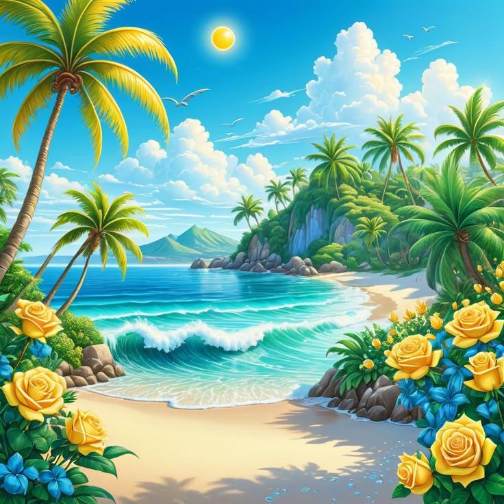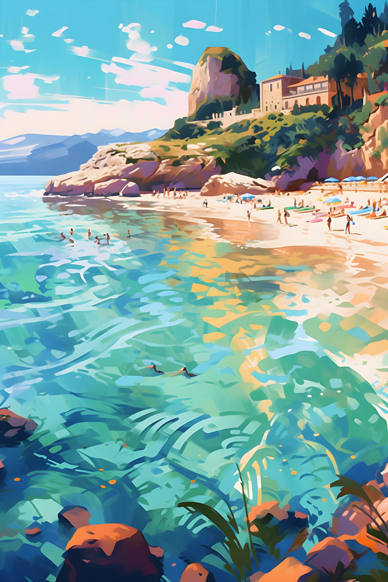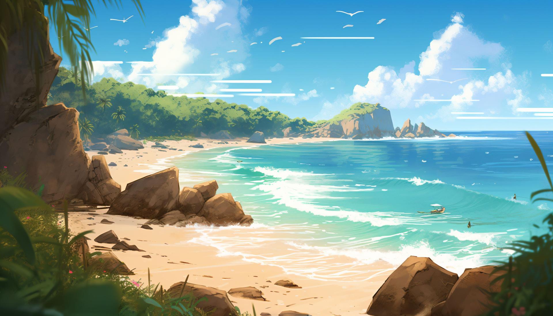 Пляж - это не просто место отдыха, а состояние души, где время замедляется, а заботы остаются далеко на берегу. В этих цифровых иллюстрациях художники мастерски передали всю палитру пляжных эмоций: от утреннего спокойствия, когда солнце только начинает золотить воду, до закатного великолепия, когда небо и море сливаются в единое полотно. Каждая работа рассказывает свою историю - вот семья строит песчаные замки, вот влюбленные прогуливаются по кромке прибоя, а вот одинокий рыбак наблюдает за горизонтом. Детали проработаны с любовью: текстура песка, переливы воды, игра света на волнах и даже едва уловимый запах соли в воздухе. Это искусство, которое переносит зрителя на побережье, напоминая о важности передышек и красоте простых жизненных моментов.