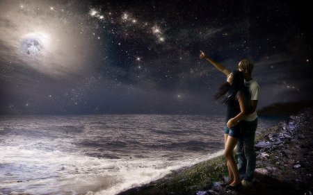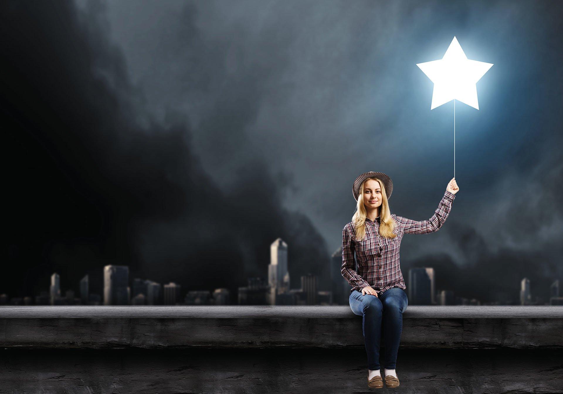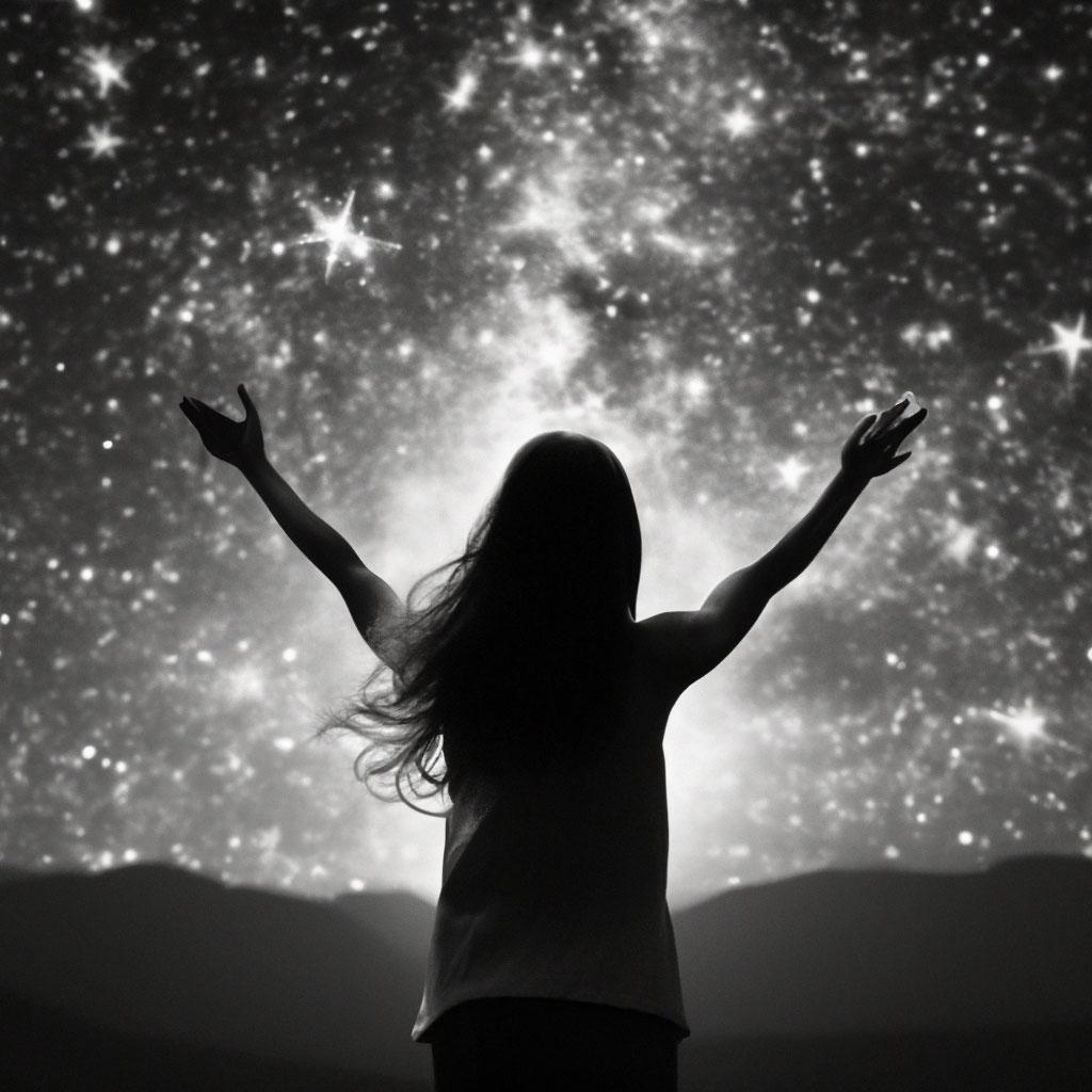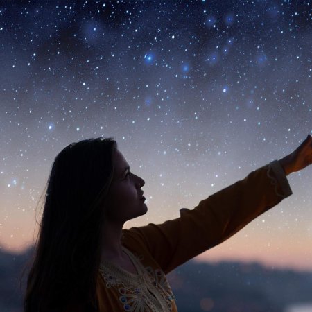 Девушка тянется к звездам