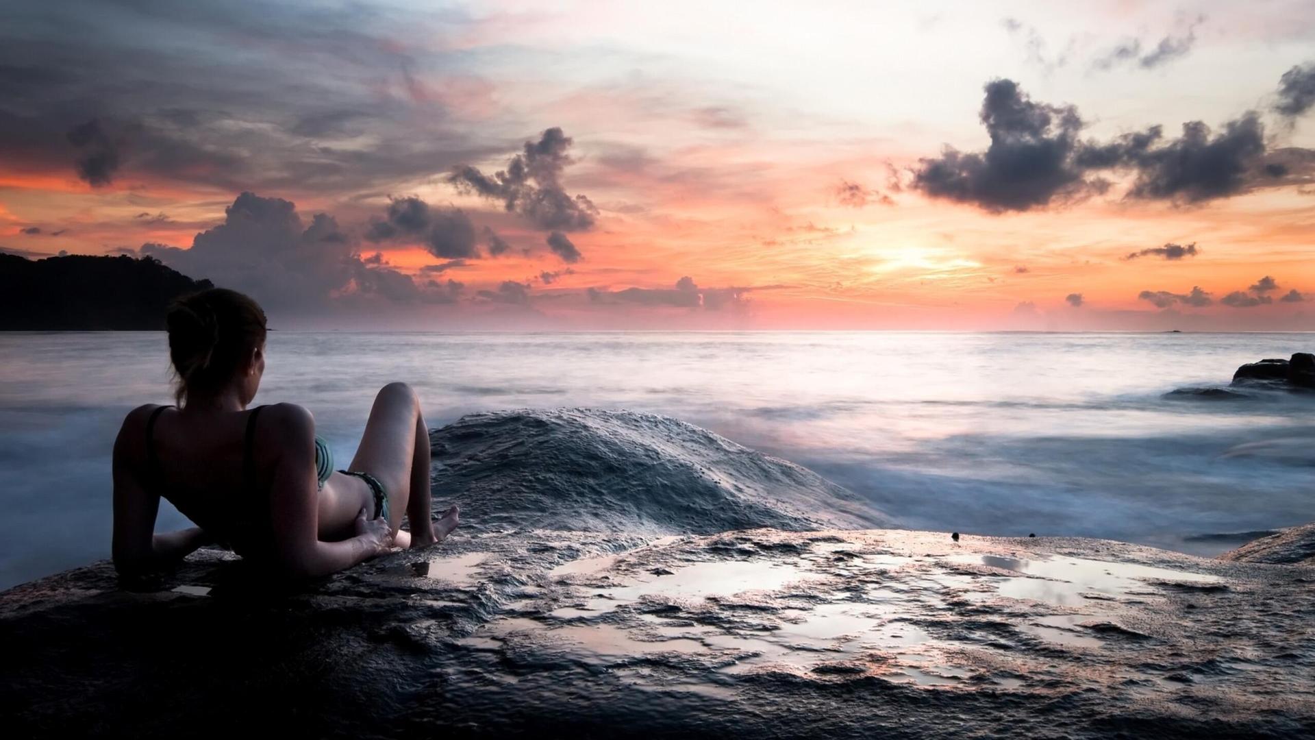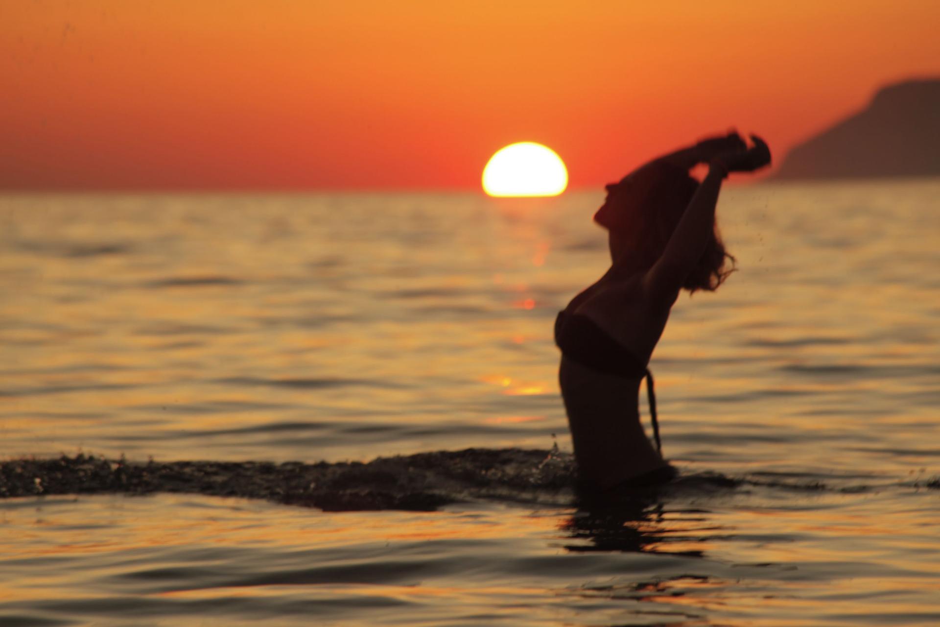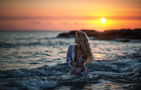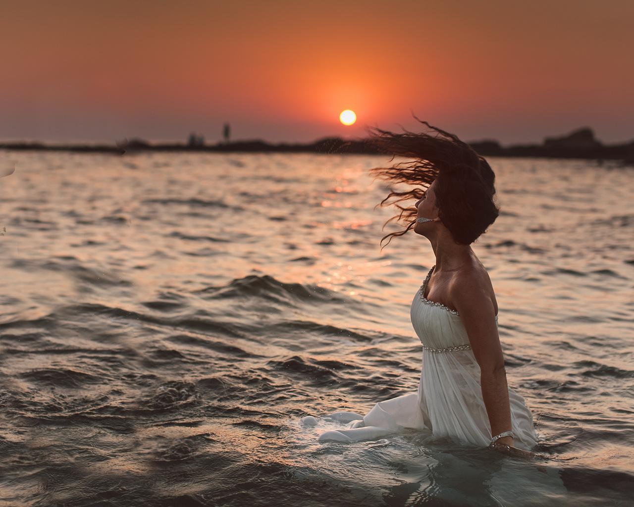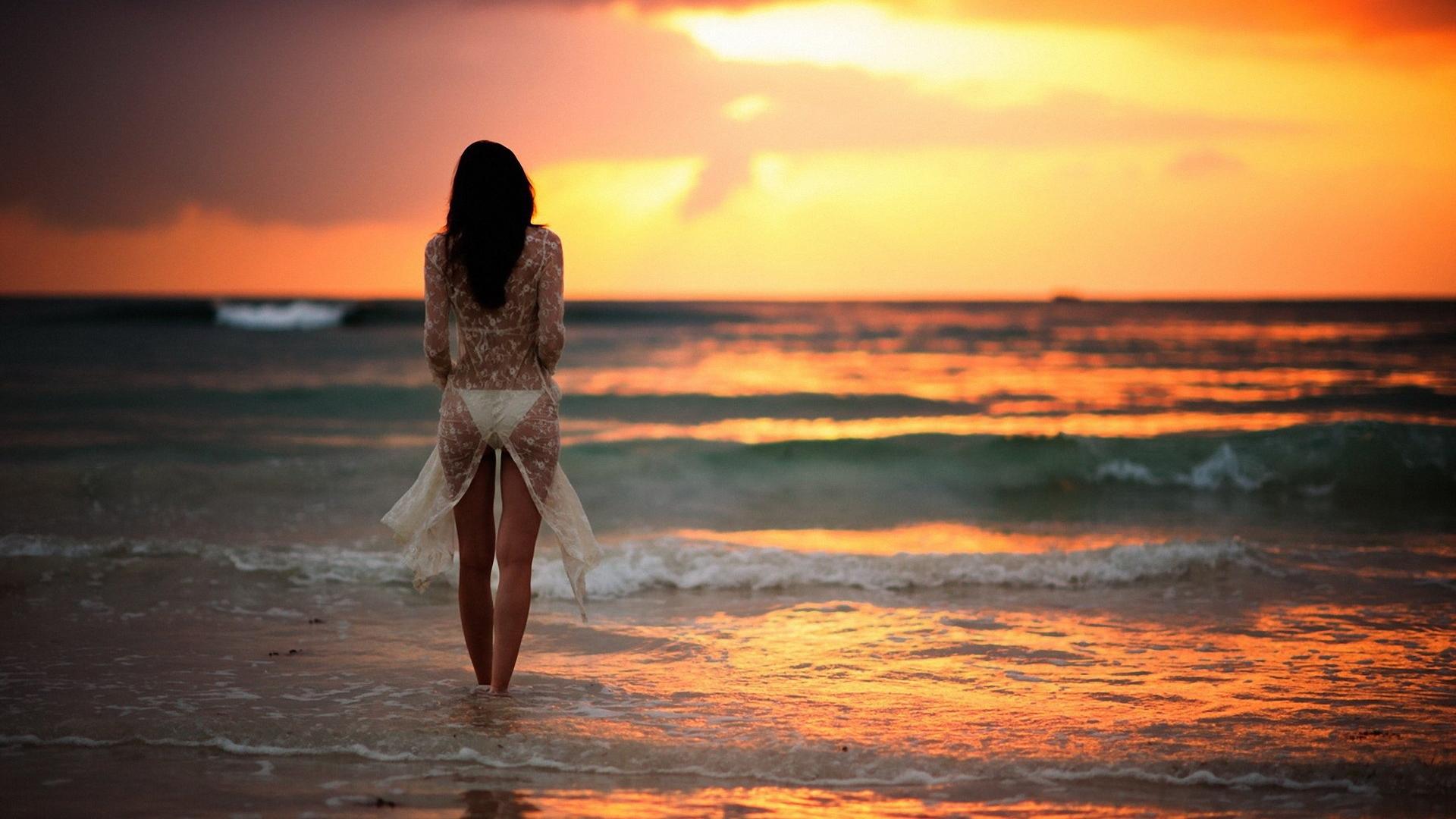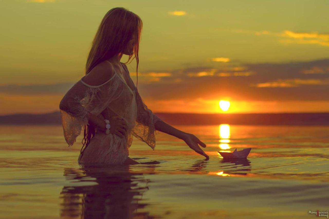Девушка на море закат