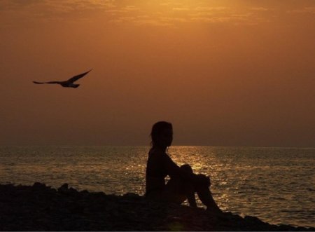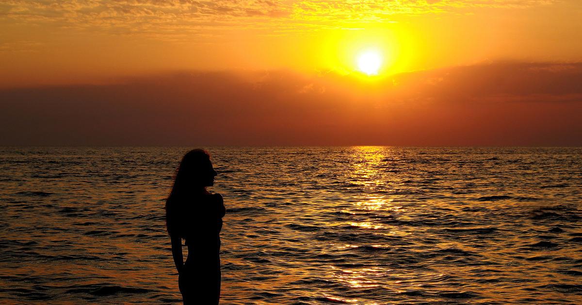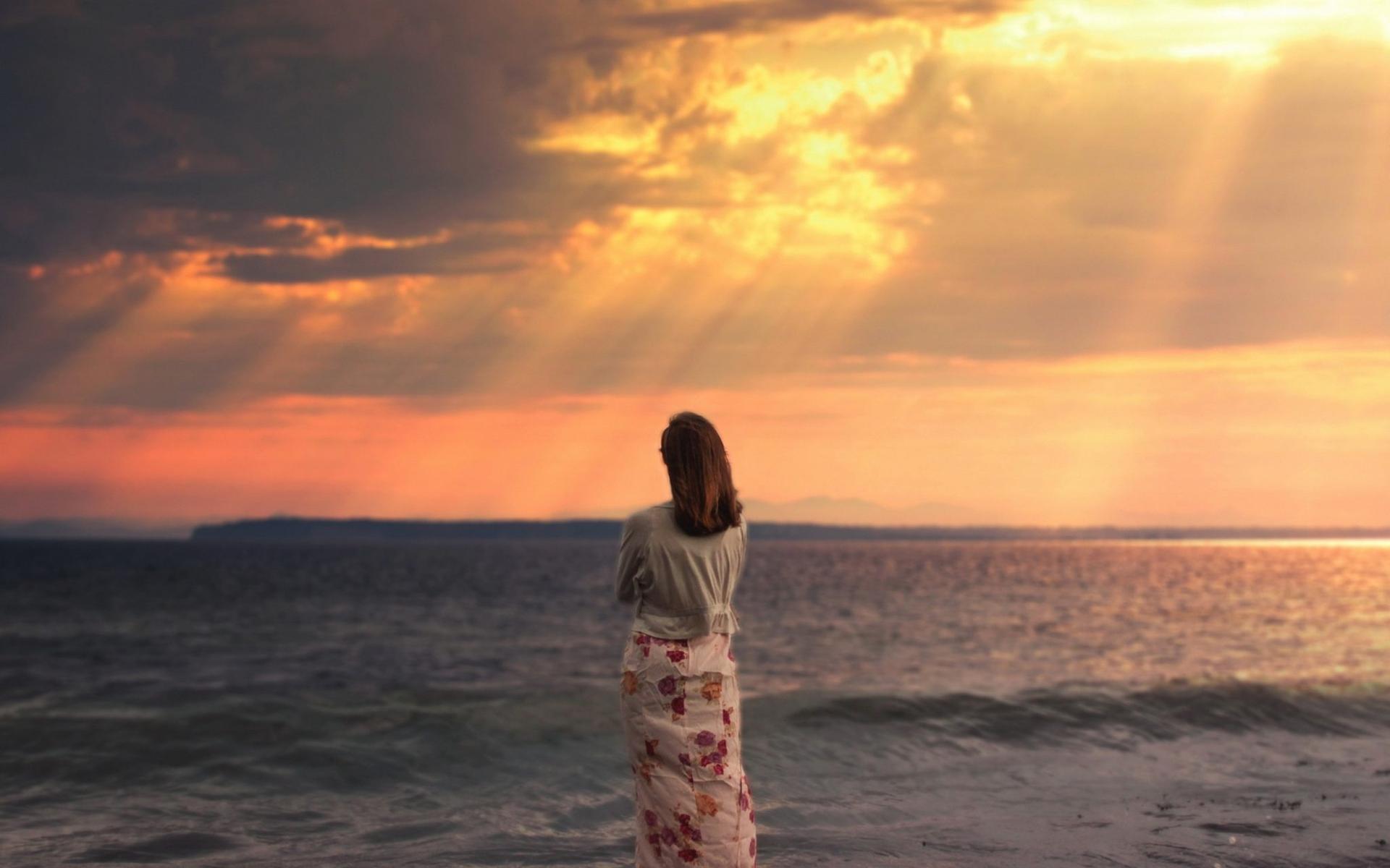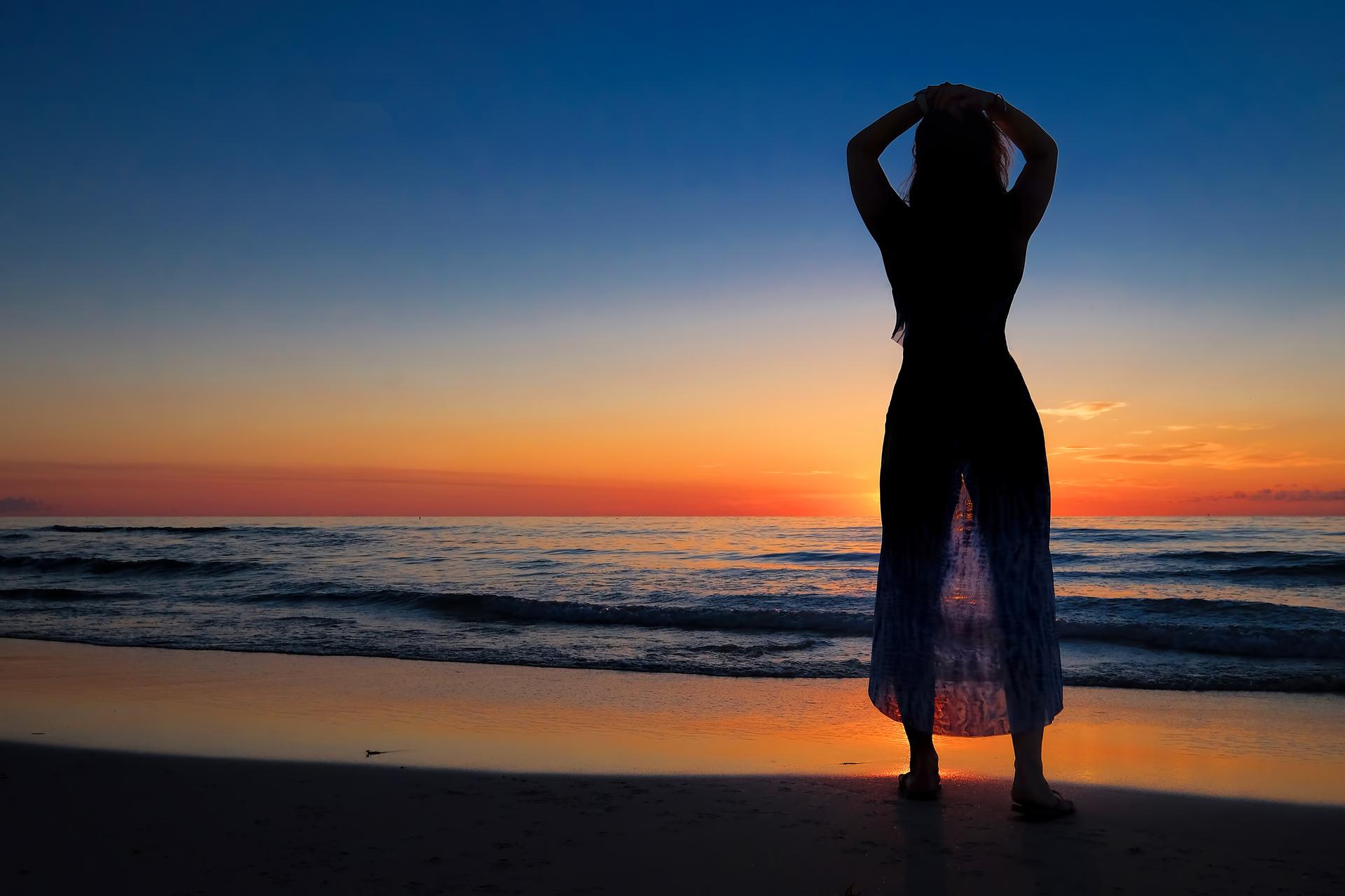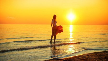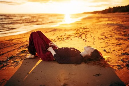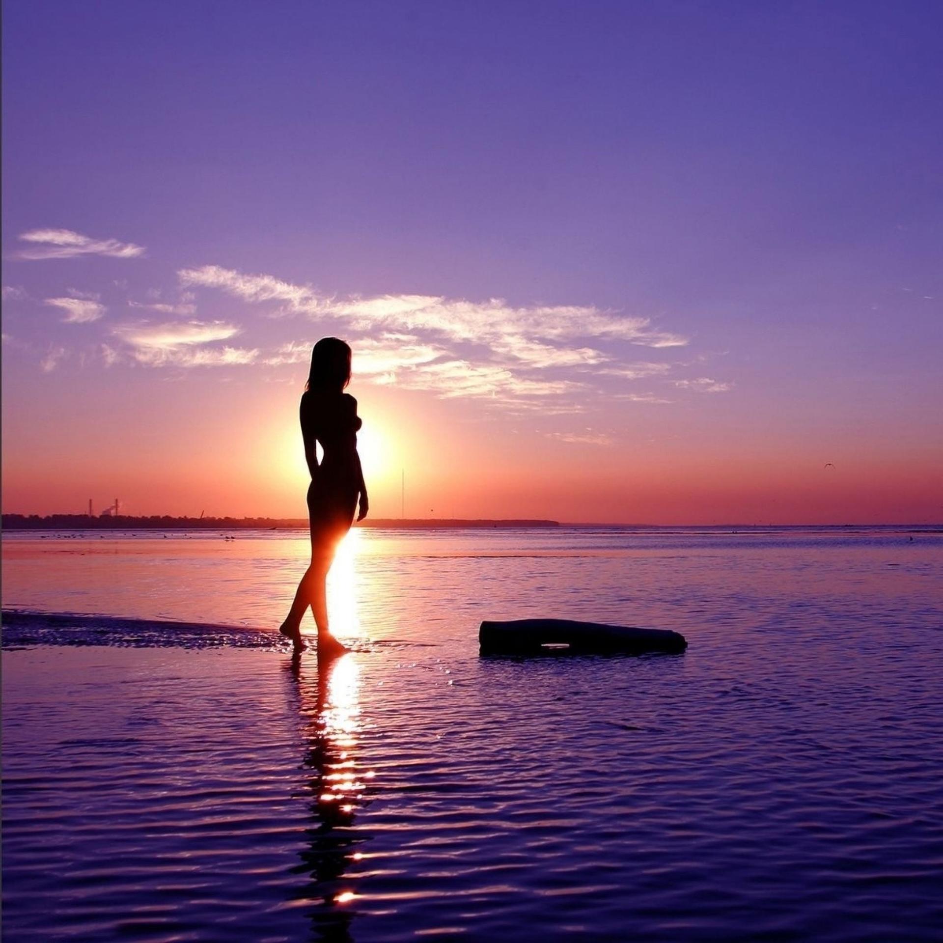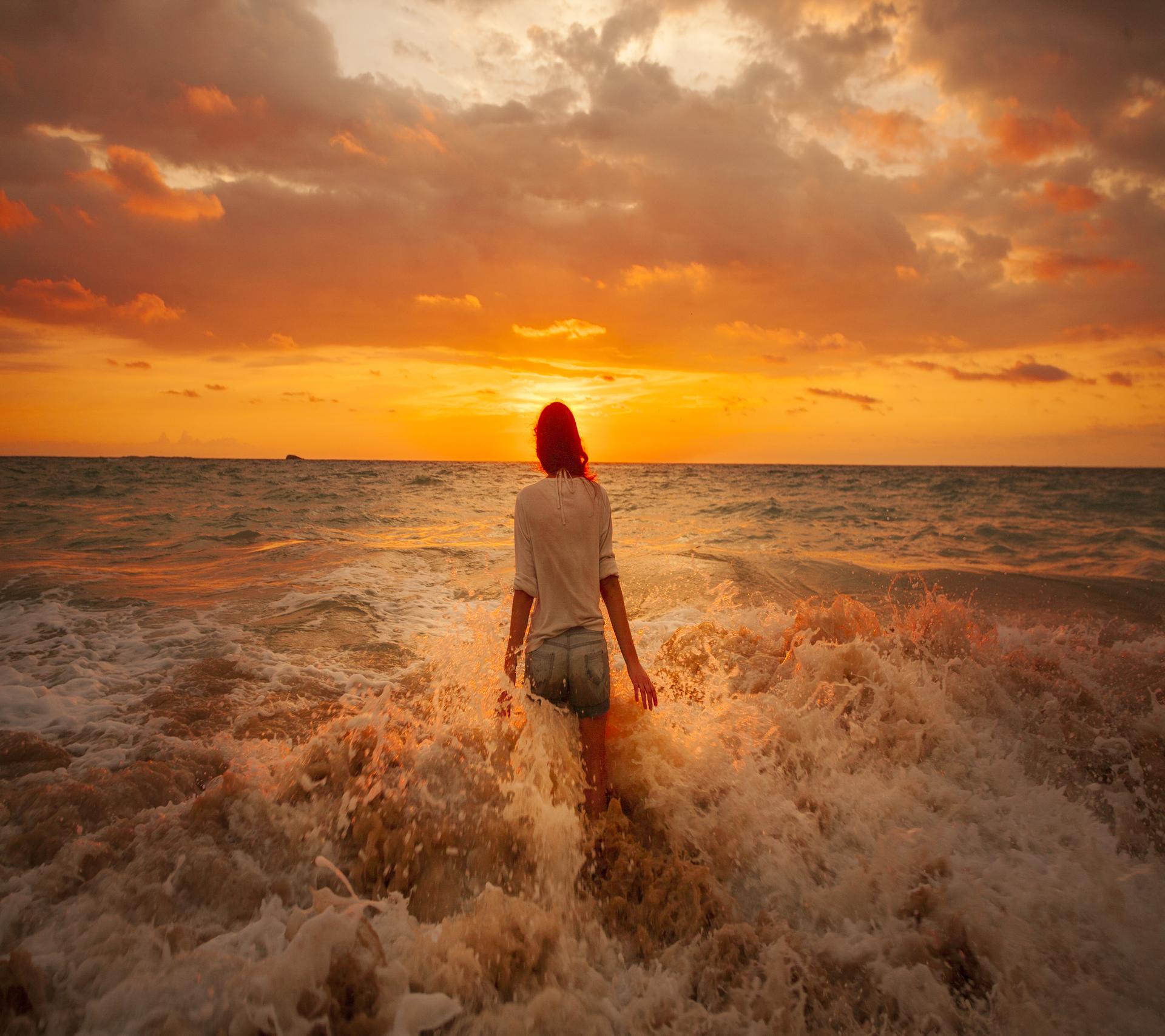 Девушка на море закат