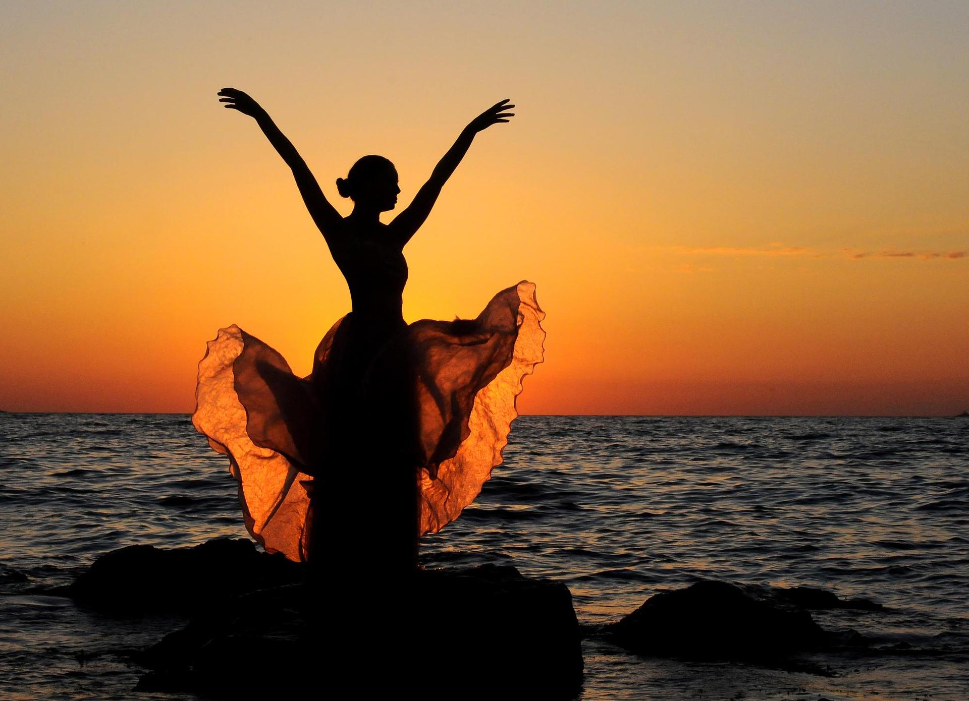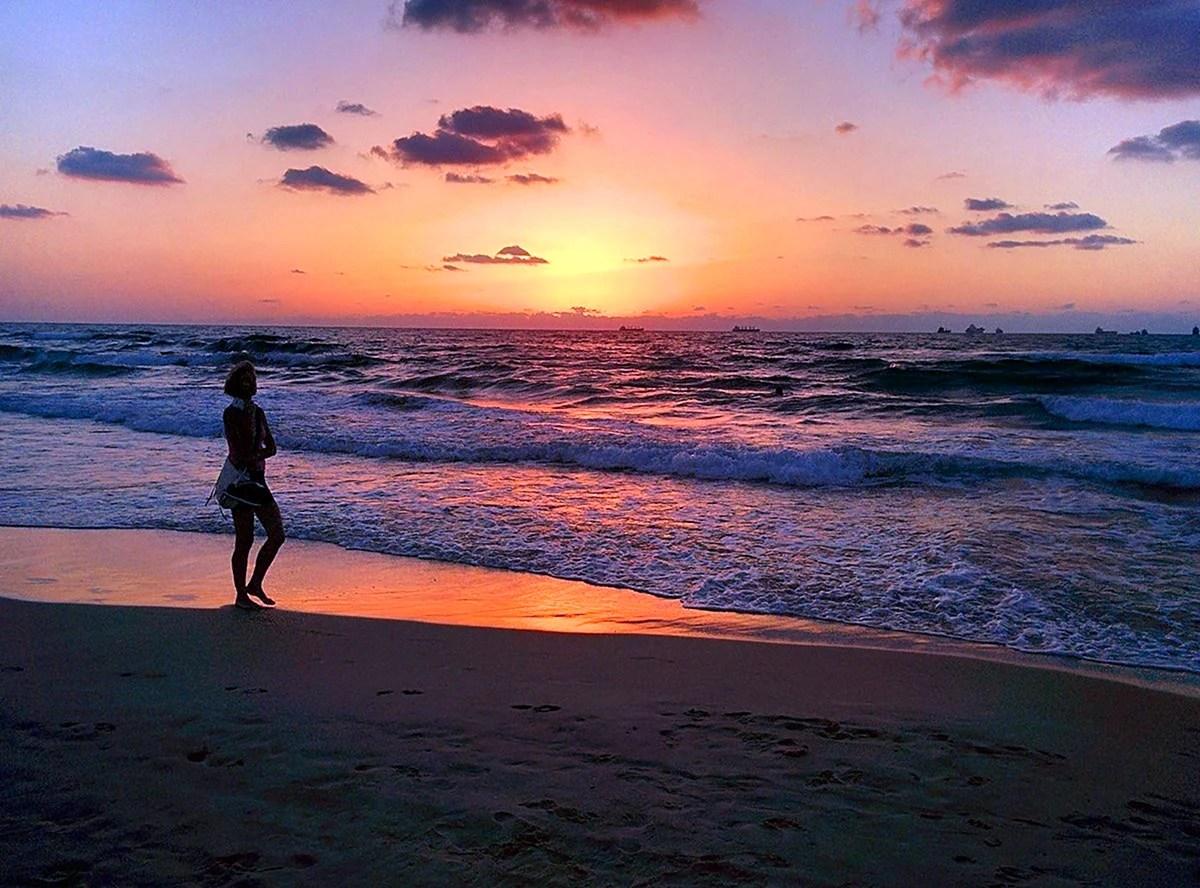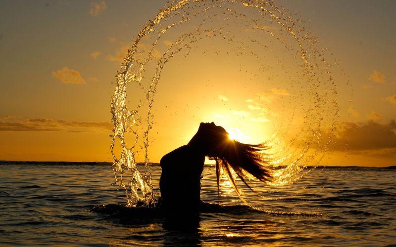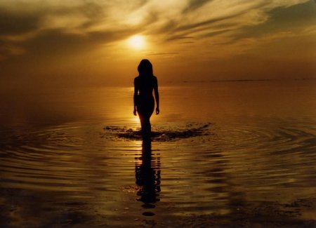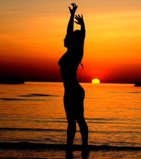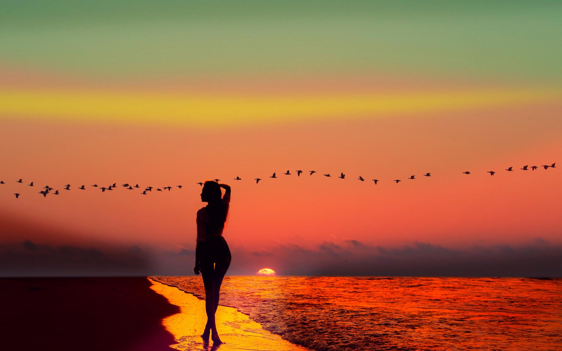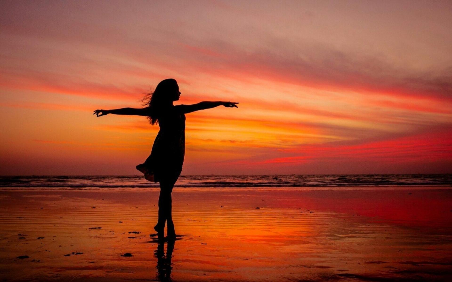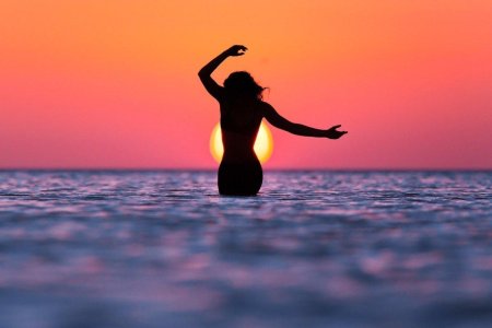 Девушка на море закат