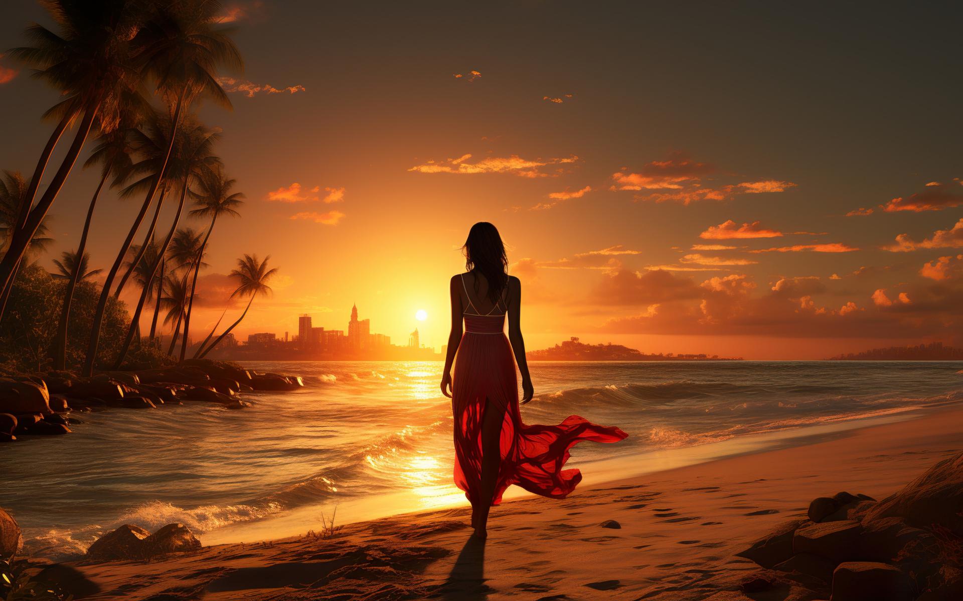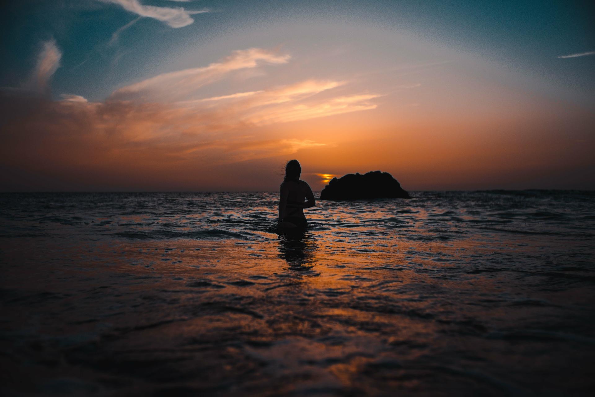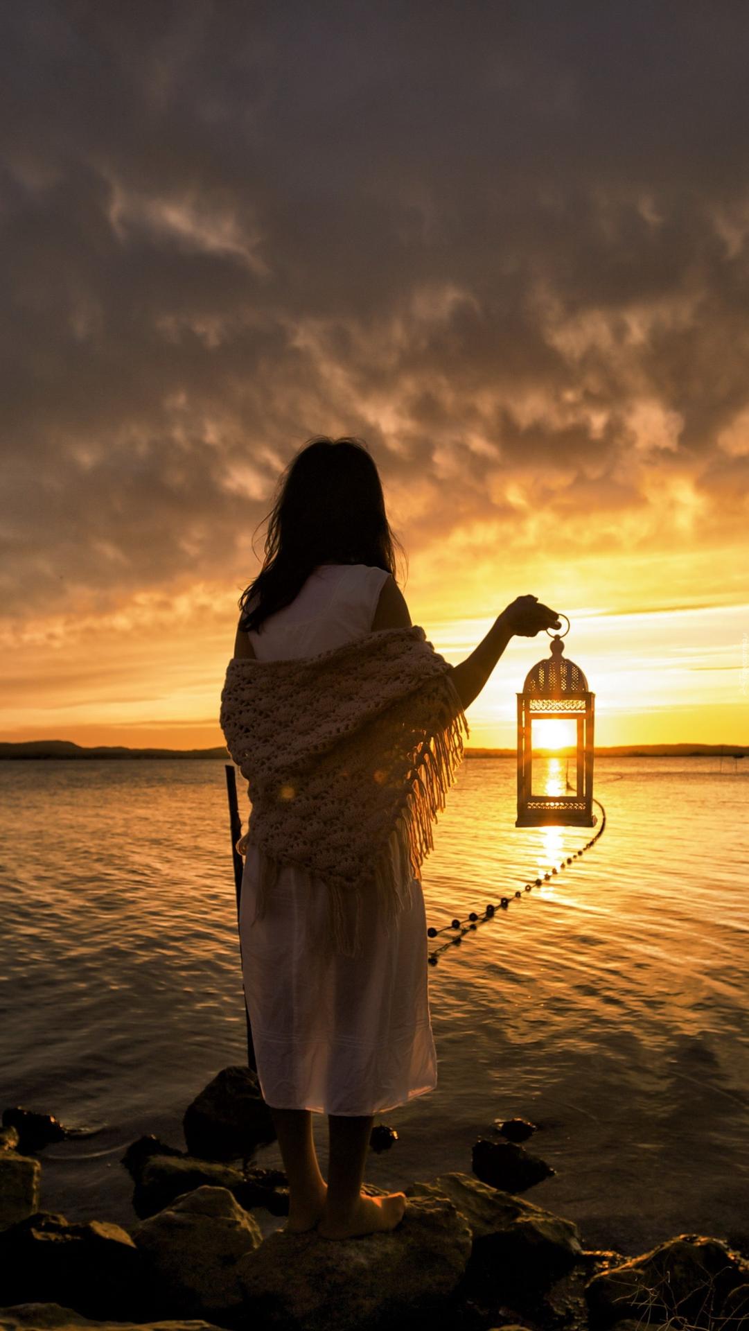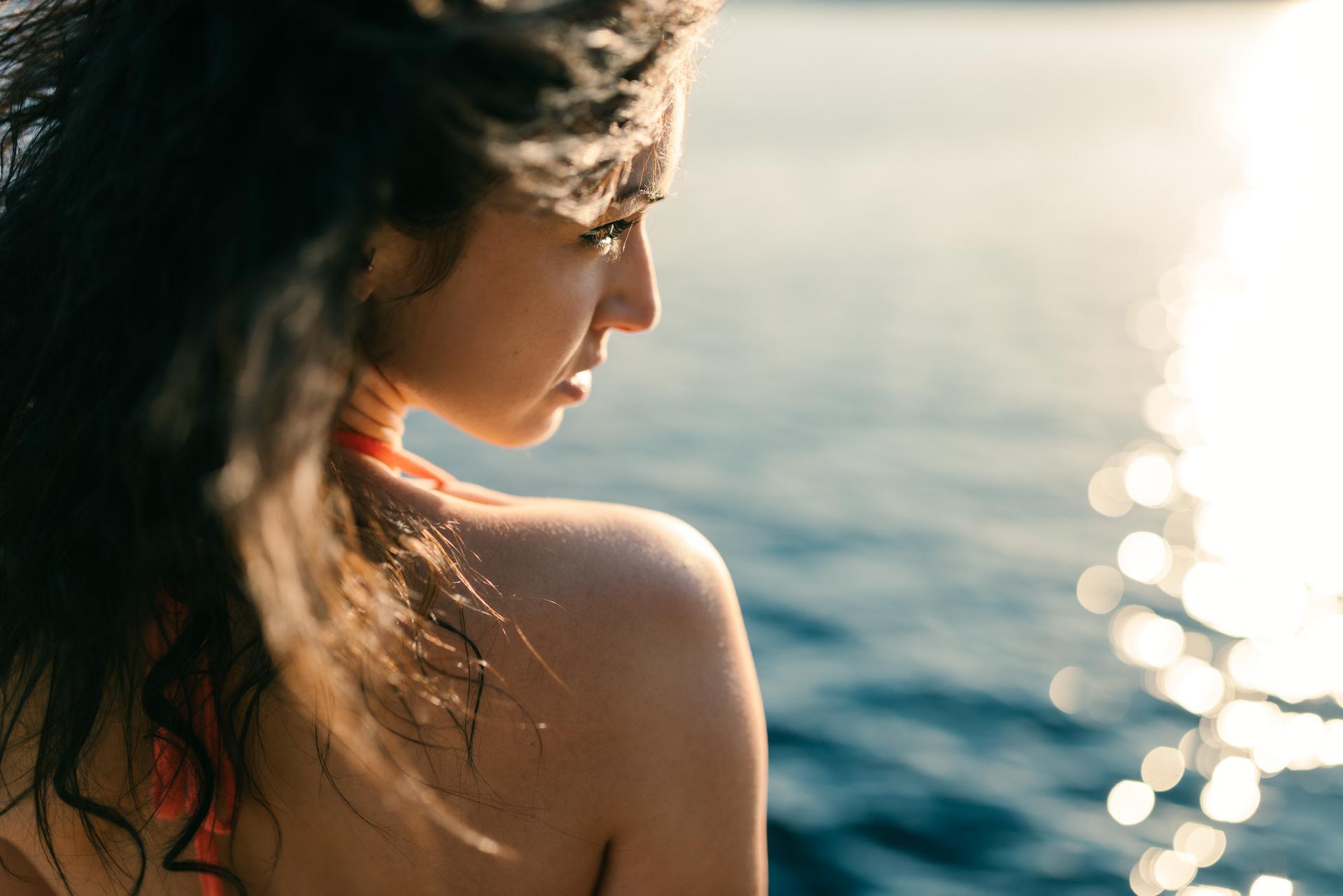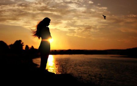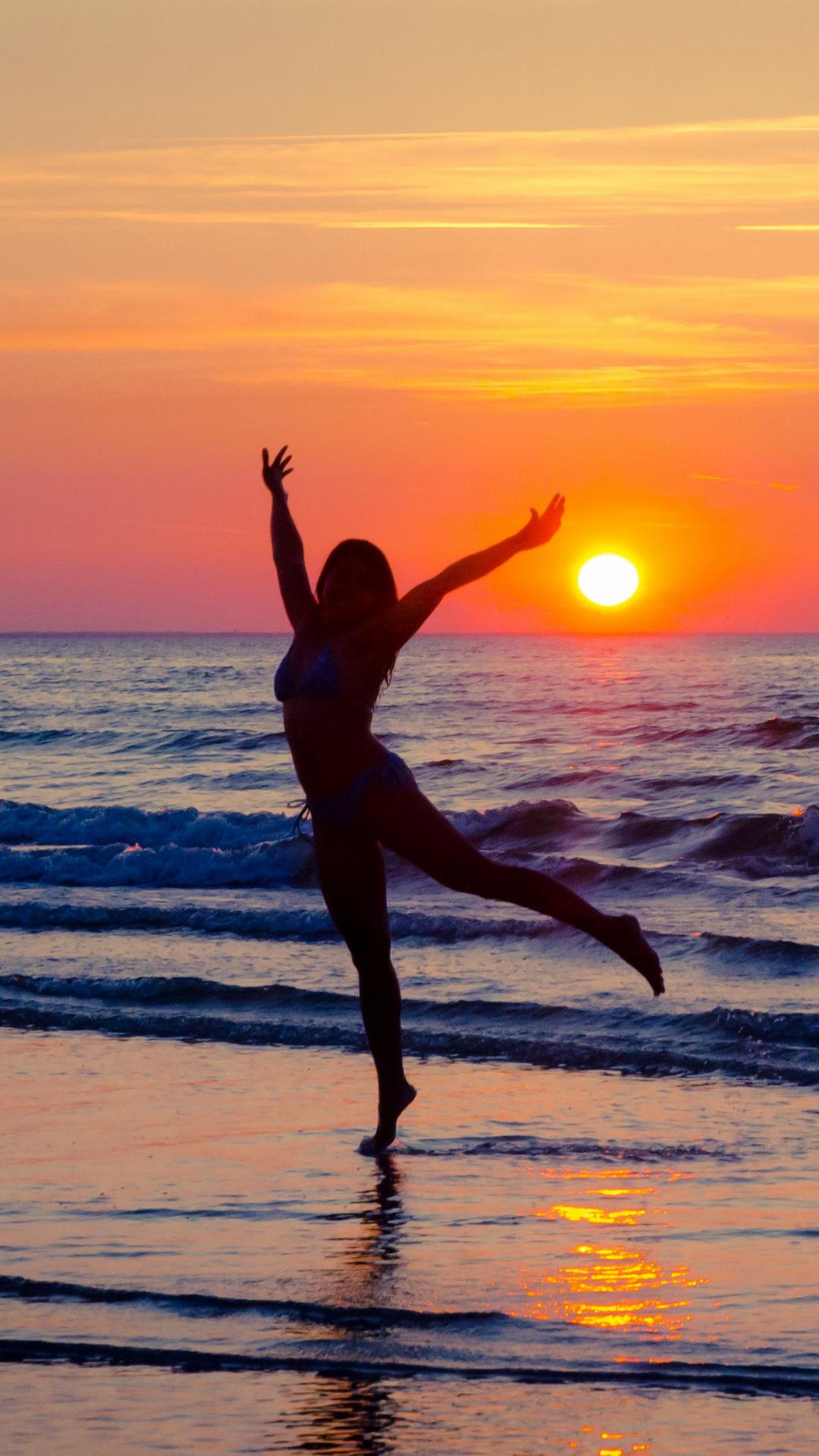 Девушка на море закат