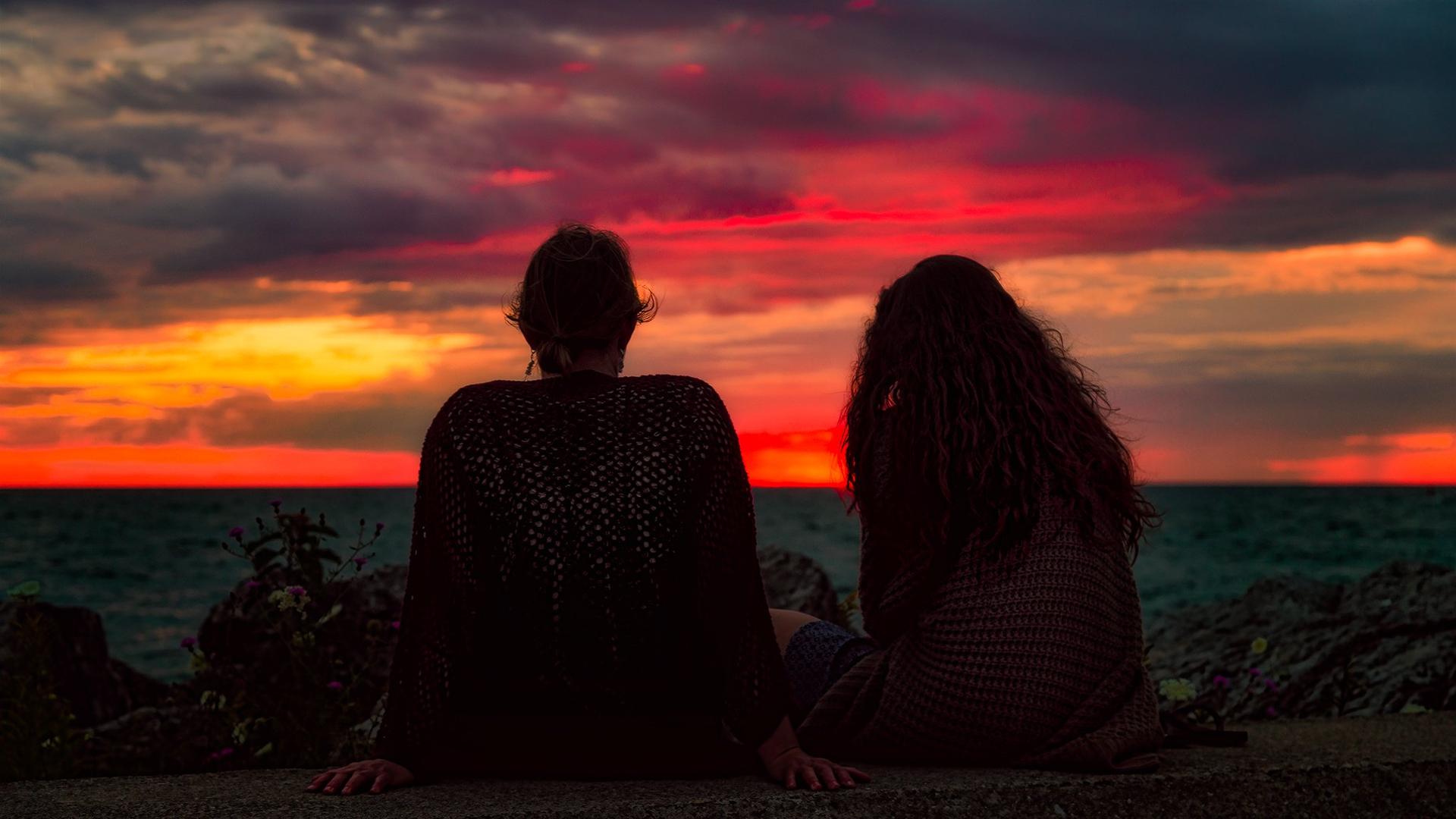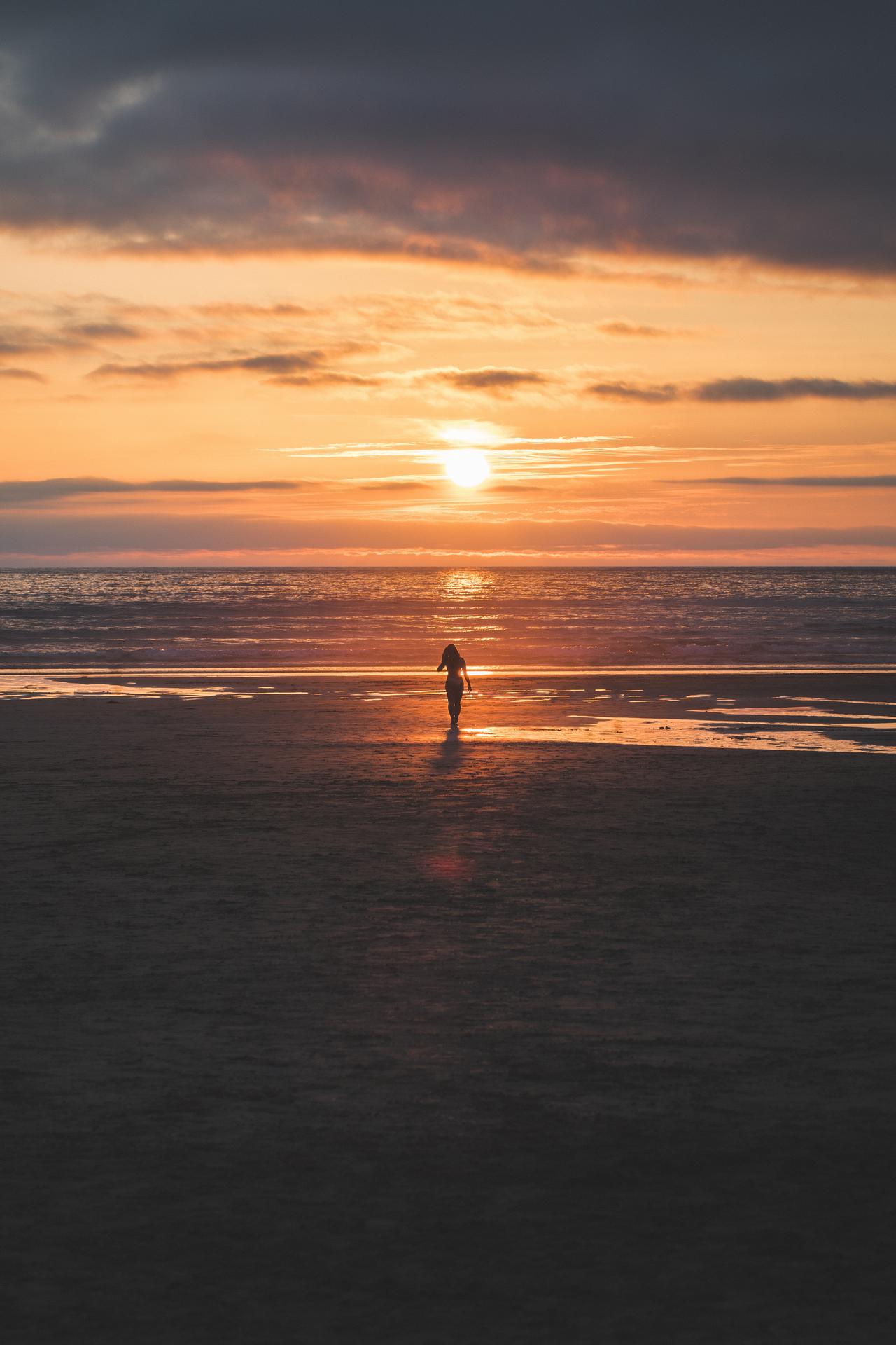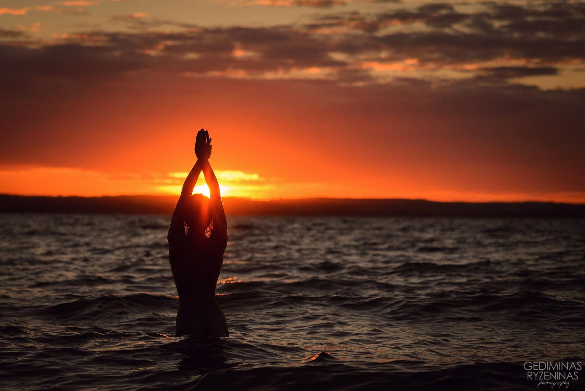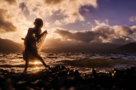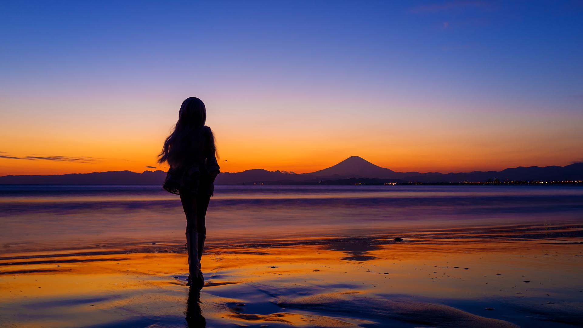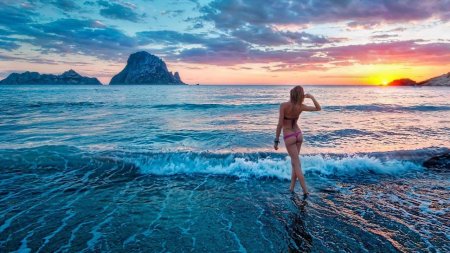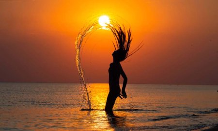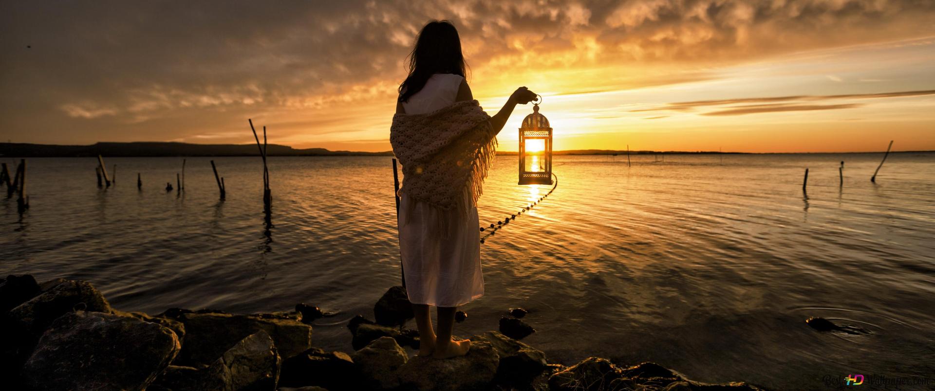 Девушка на море закат