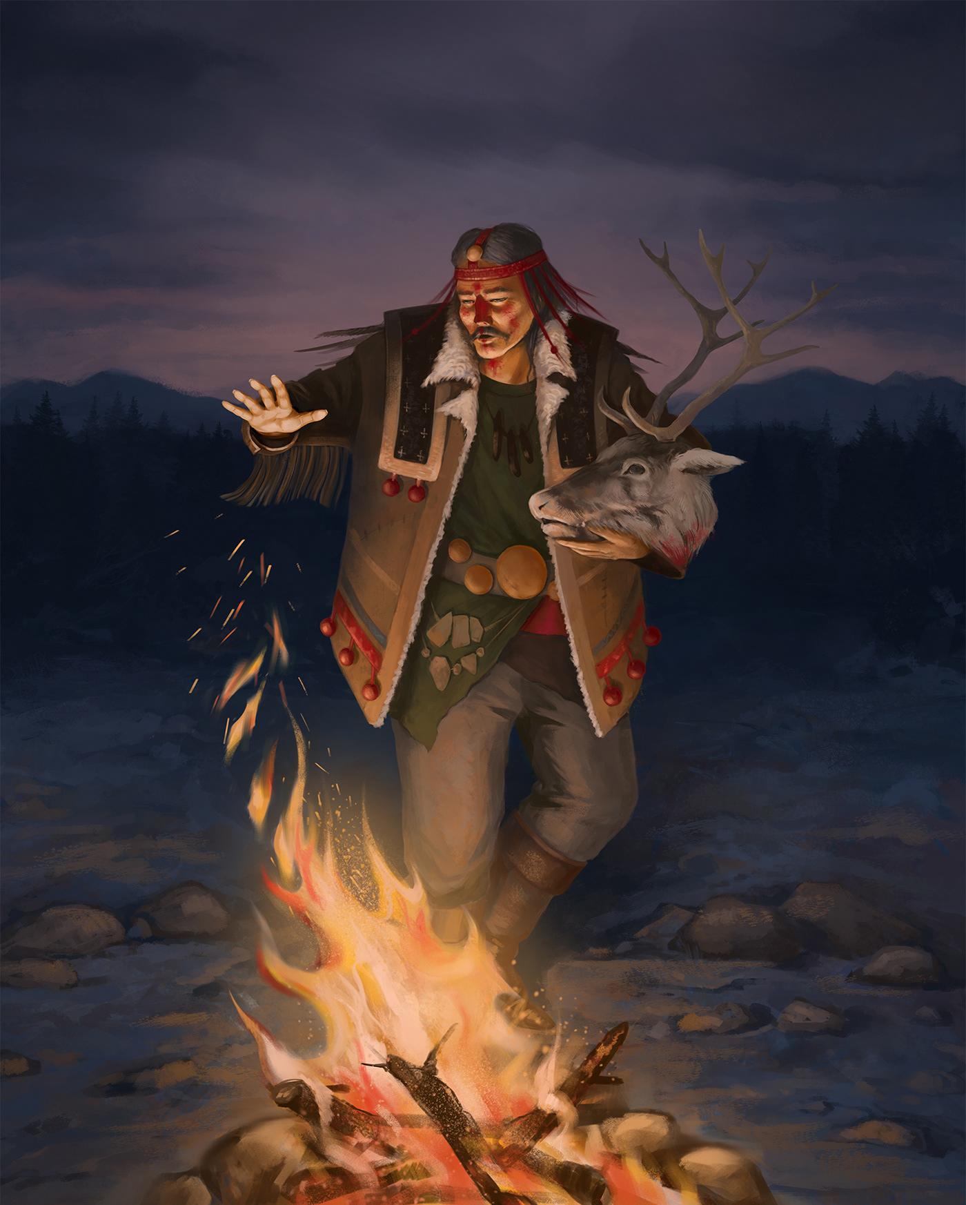 Тунгусский шаман предстает как хранитель древних традиций сибирских народов. Его образ сочетает духовную силу с культурным наследием. Эти иллюстрации показывают различные аспекты шаманизма: от ритуалов до повседневной жизни. Каждая композиция тщательно продумана - от традиционной одежды до атмосферы. Тематические мотивы включают этнографию, духовность, природу и элементы мистики. Художники использовали разнообразную палитру: от натуральных тонов до мистических эффектов. Коллекция демонстрирует различные ритуалы: от камланий до повседневных практик. Эти работы способствуют сохранению культурного наследия.