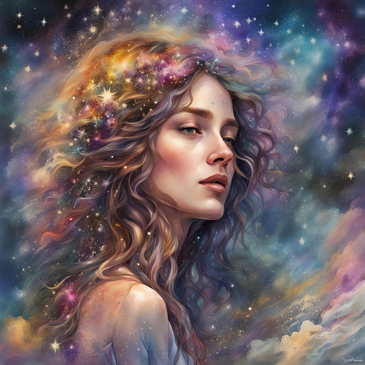 Космическая коллекция иллюстраций девушки вселенная переносит зрителей в мир философских размышлений о единстве человека и космоса. Художники мастерски сочетают элементы портретной живописи с космическими мотивами, создавая атмосферу величия и меланхолии. От изображений женской фигуры на фоне звездного неба до сцен слияния с галактиками - каждая работа раскрывает новые грани концепции человеческого в бесконечном. Коллекция привлекает любителей космической тематики и ценителей философского искусства.